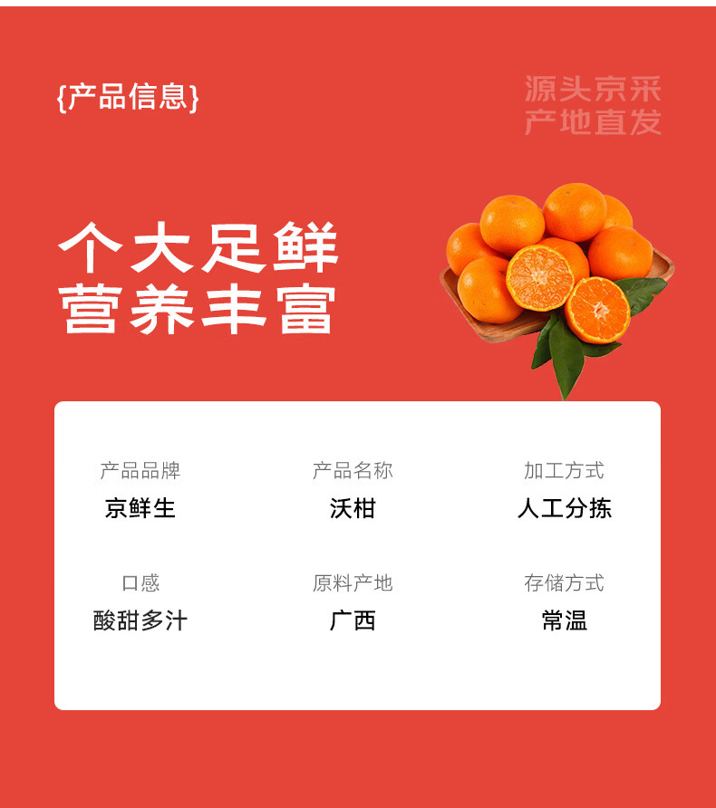 京鲜生 广西沃柑 净重4.5斤装 单果110g+ 新鲜水果源头直发包邮