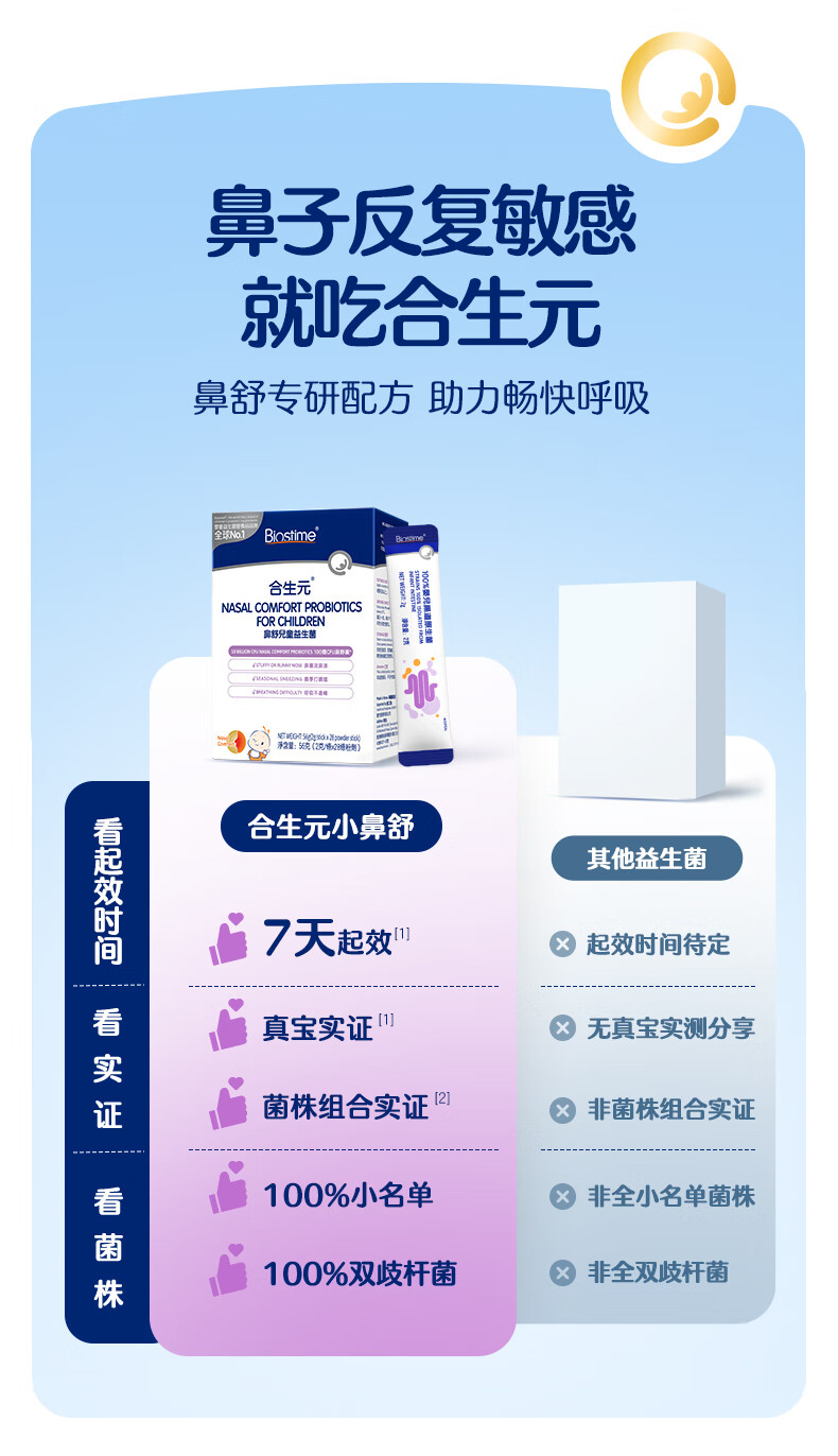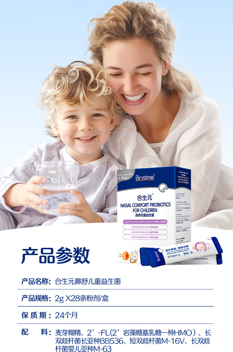 合生元(BIOSTIME)小鼻舒益生菌儿童舒敏好鼻子鼻炎益生菌28袋