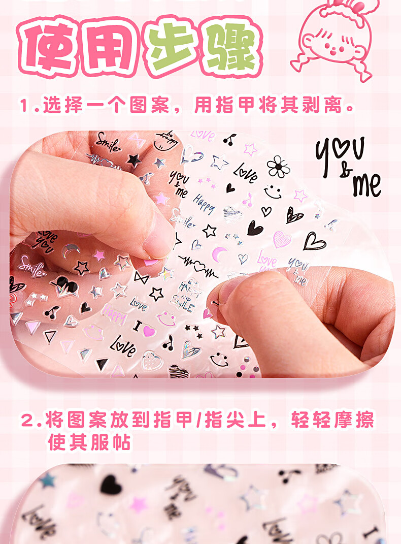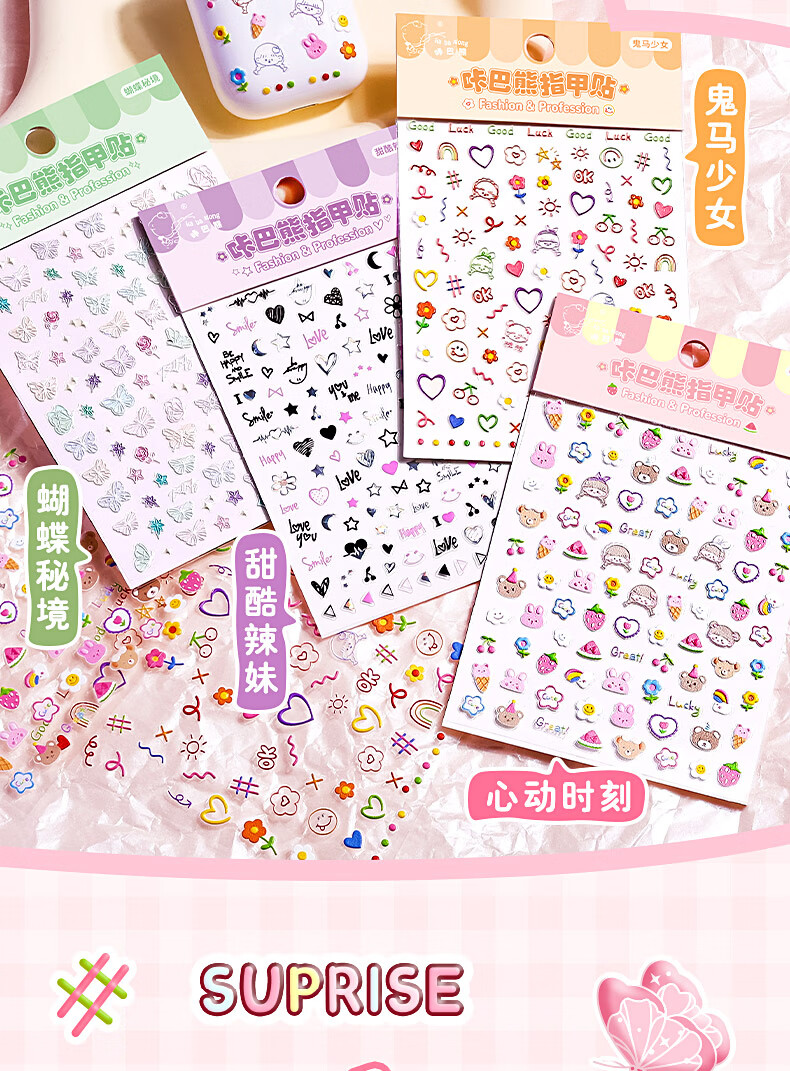 咔巴熊(Kabaxiong)儿童指甲贴纸 卡通小爱心浮雕装饰小图案 防水指甲贴片 蝴蝶秘境