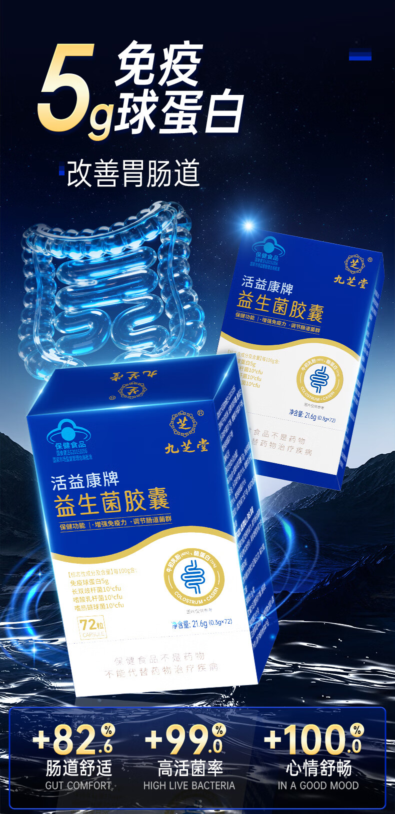 九芝堂益生菌胶囊72粒增强免疫力调节肠道菌群成人调理肠胃消化儿童自营