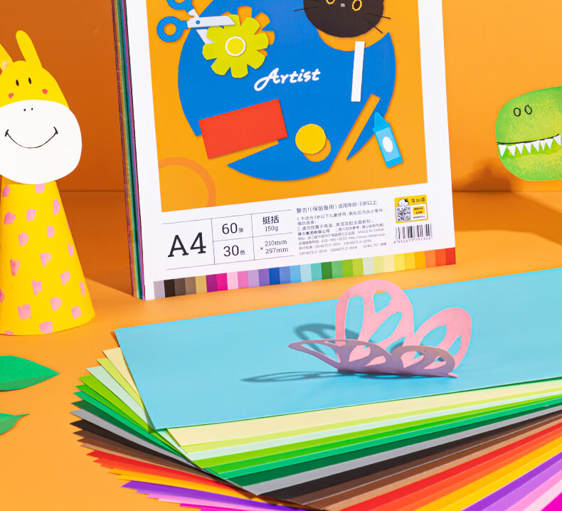 得力(deli)(deli)30色60张彩色A4硬卡纸加厚剪纸手工DIY折纸美术绘画涂鸦儿童学生幼儿园开学文具生日礼物