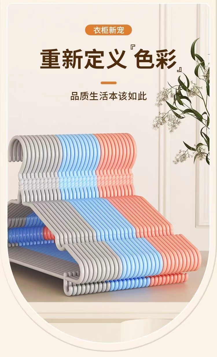 衣架成人加粗防滑加厚学生宿舍无痕挂衣架家用衣服晾衣架撑子衣挂 升级防滑无钩-40厘米 单色-10支