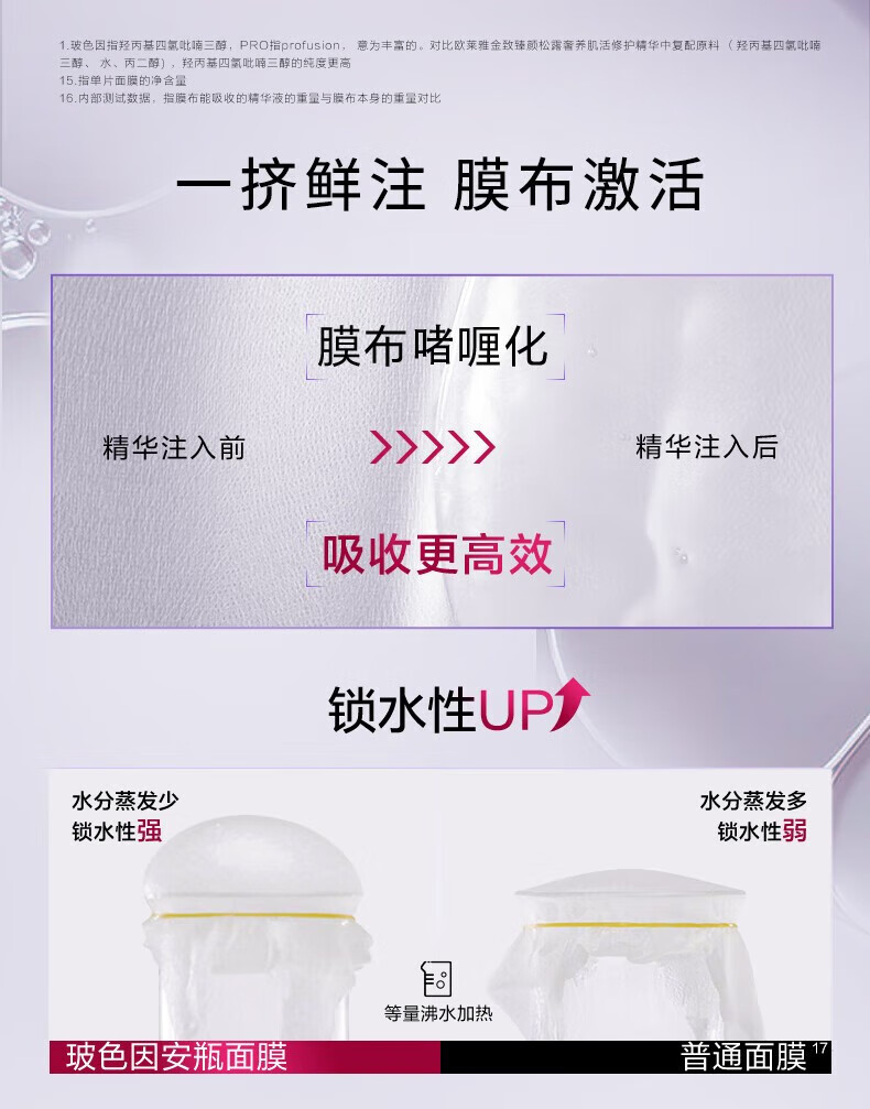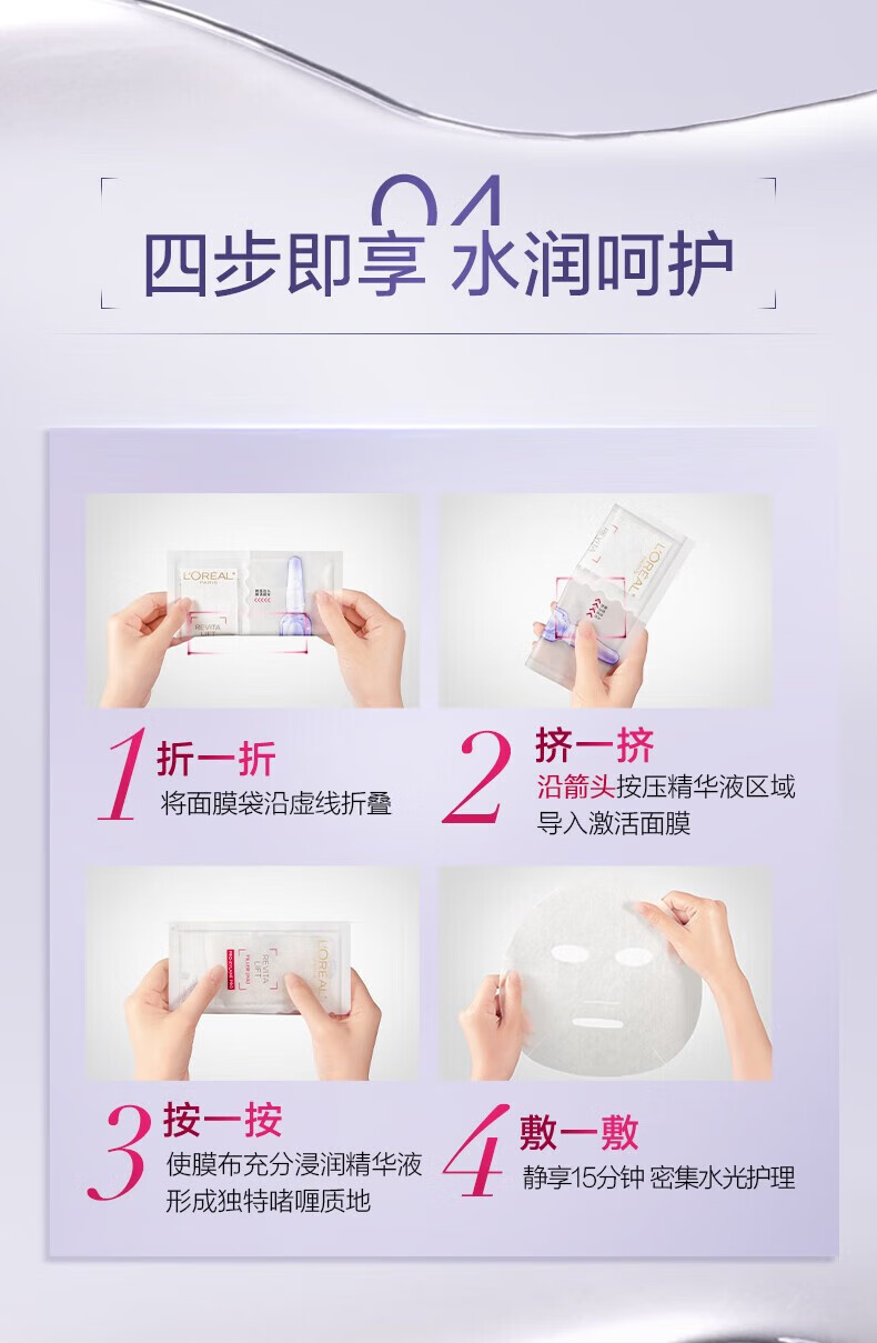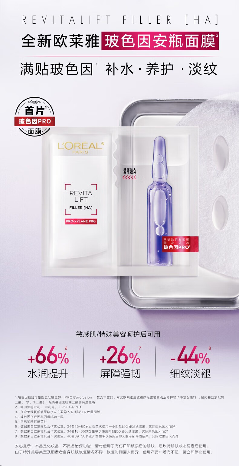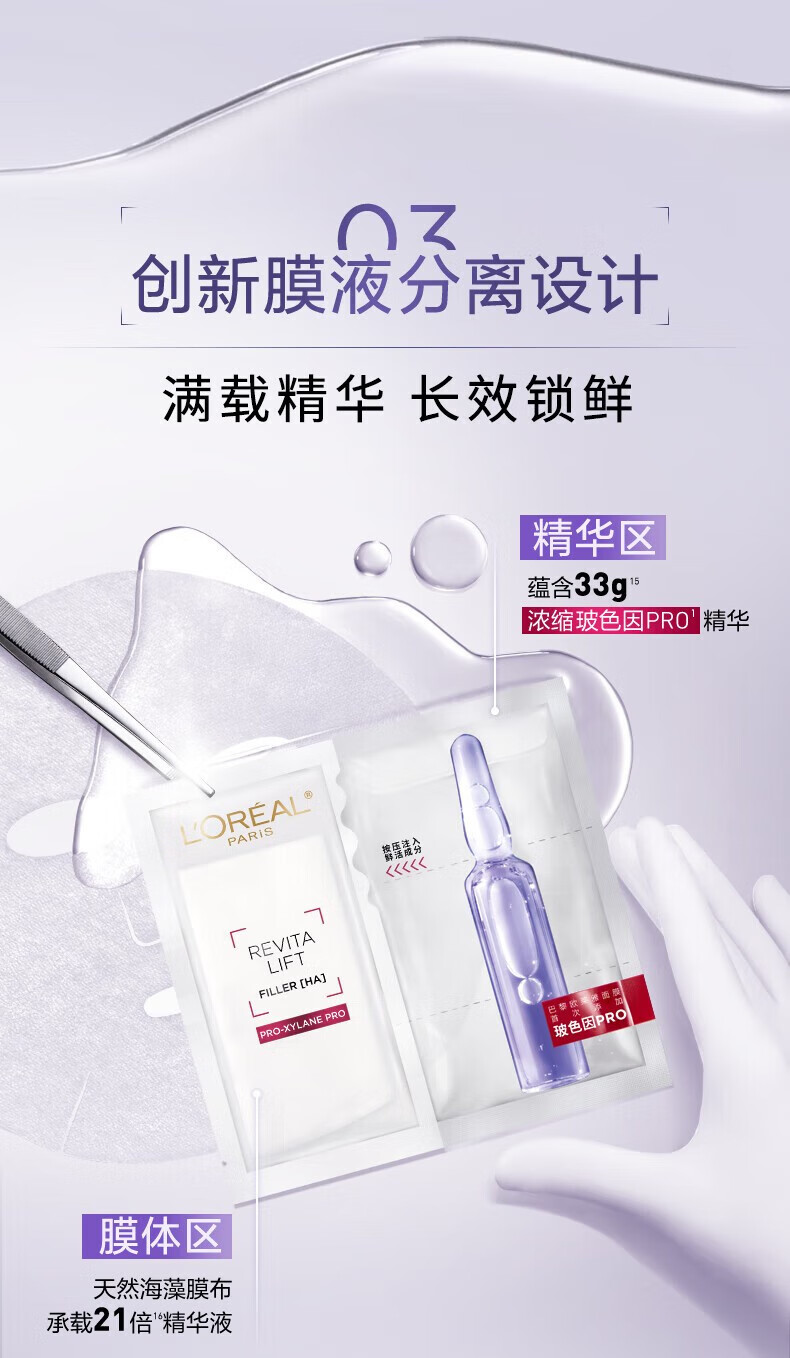 欧莱雅复颜玻尿酸安瓶面膜33g*15片 补水保湿玻色因热门商品【临期清仓