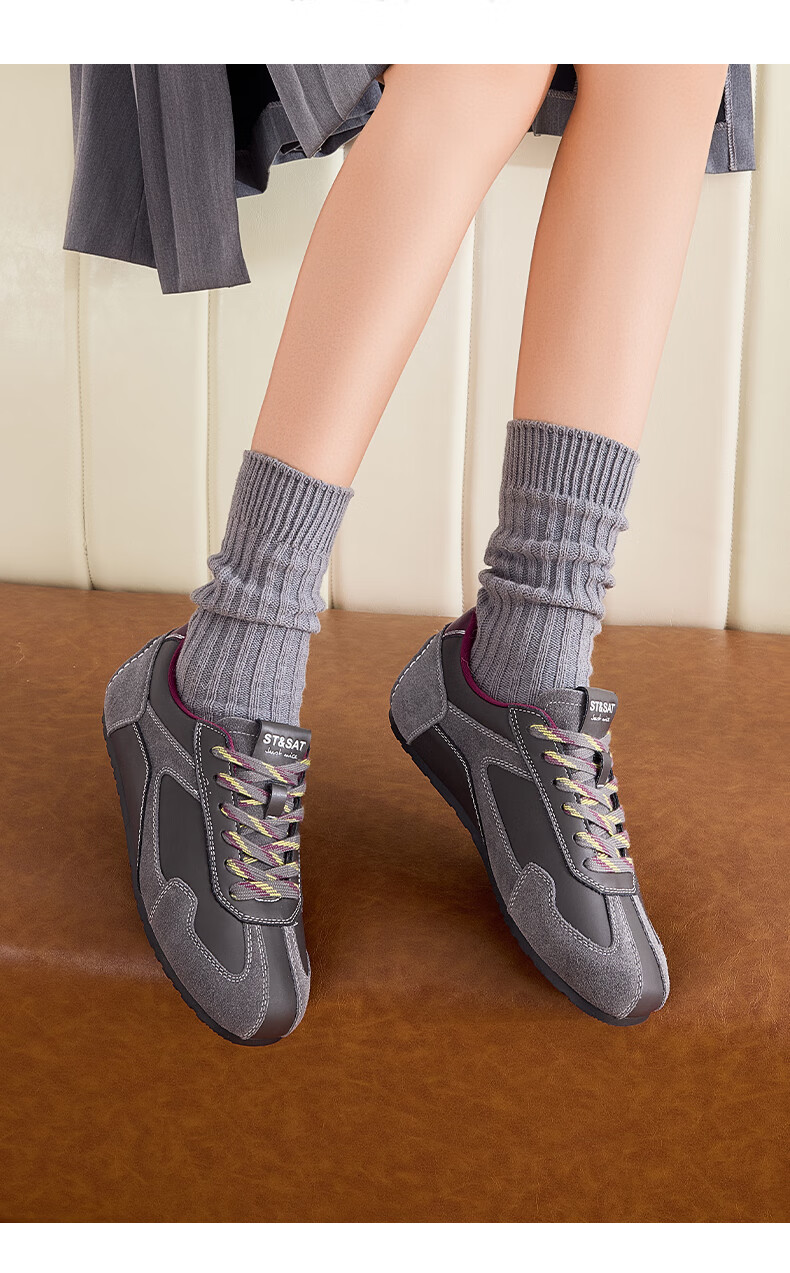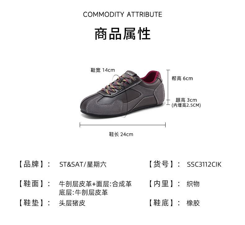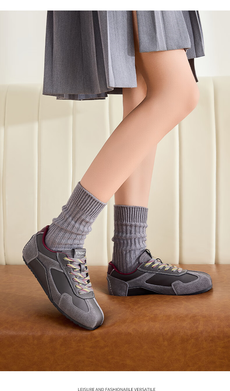 星期六厚底内增高德训鞋女款2025新款秋季女鞋经典百搭阿甘运动鞋 灰色 35