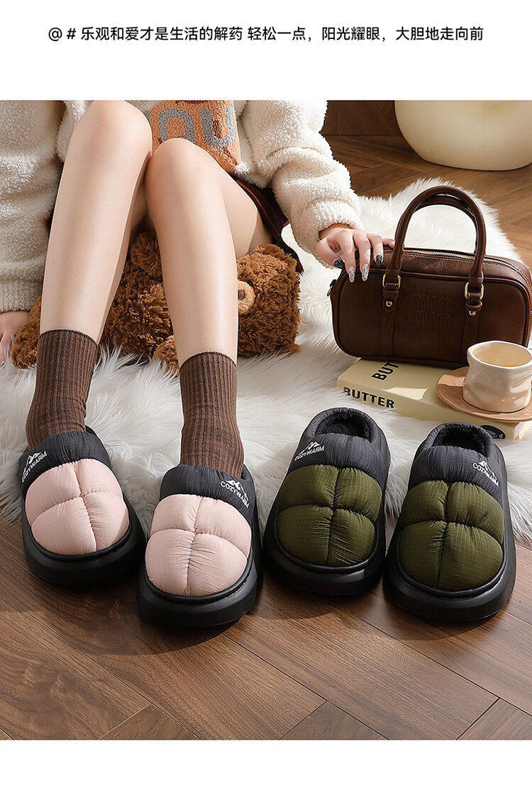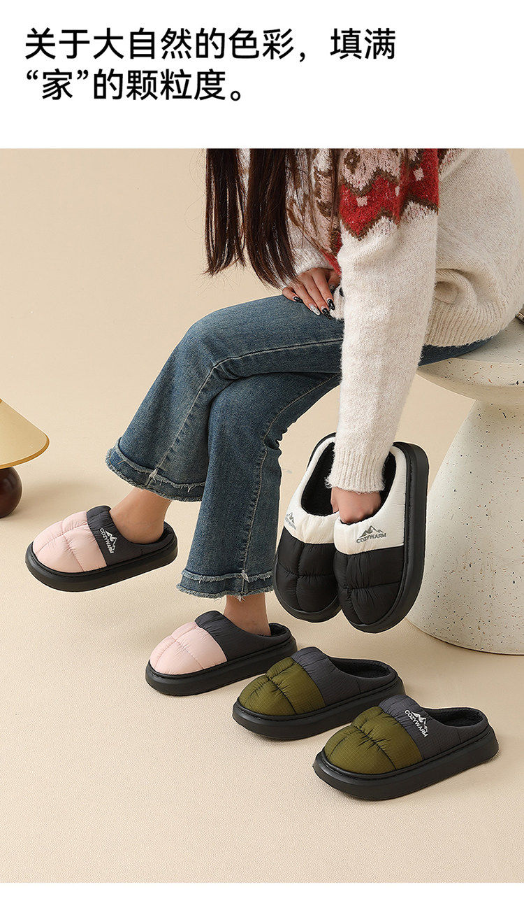 FZT羽绒布防水棉拖鞋女士2026新款春季厚底保暖情侣居家用大码棉拖男 黑绿 36-37 标准码【内长23cm】