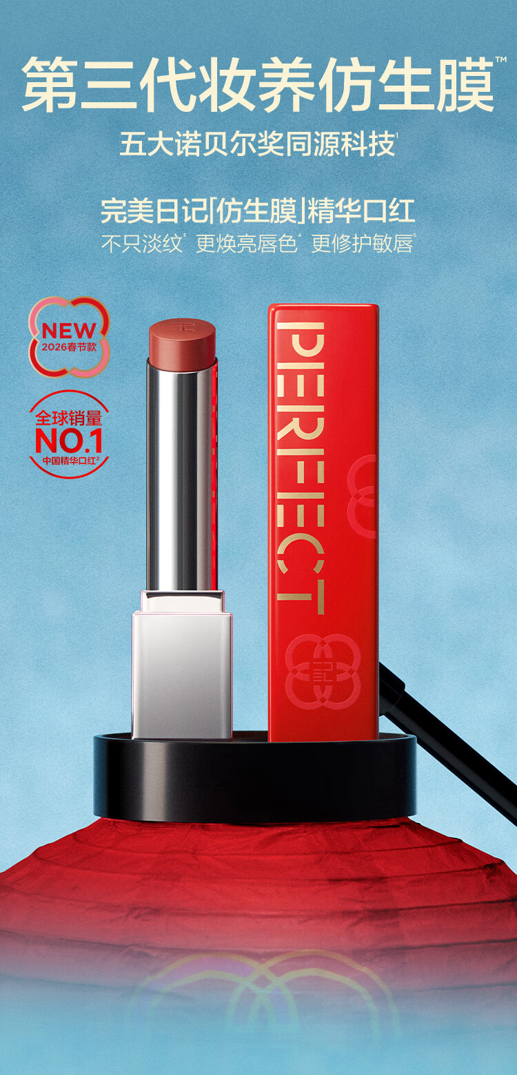 完美日记【好运限定】第三代仿生膜精华口红703淡唇纹亮唇色情人节礼物女
