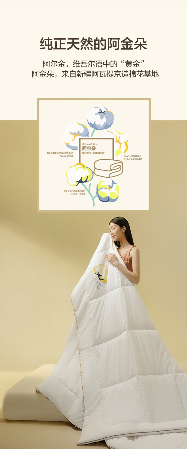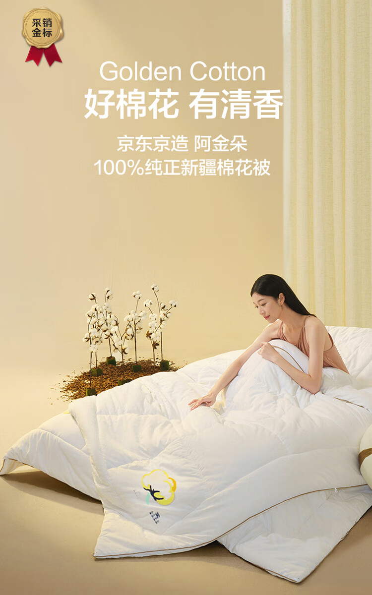 京东京造阿金朵100%天然新疆棉花被 纯棉被芯双人被冬季厚被8.6斤2x2.3m