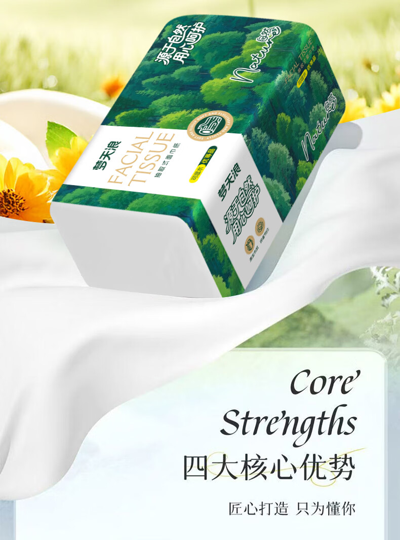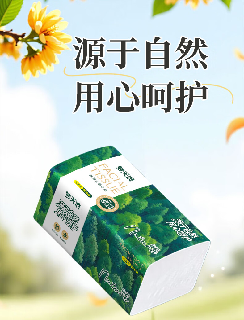 天微【厂家直发】加量家用面巾纸原木便携抽取式纸巾抽纸卫生纸 4层32抽1包