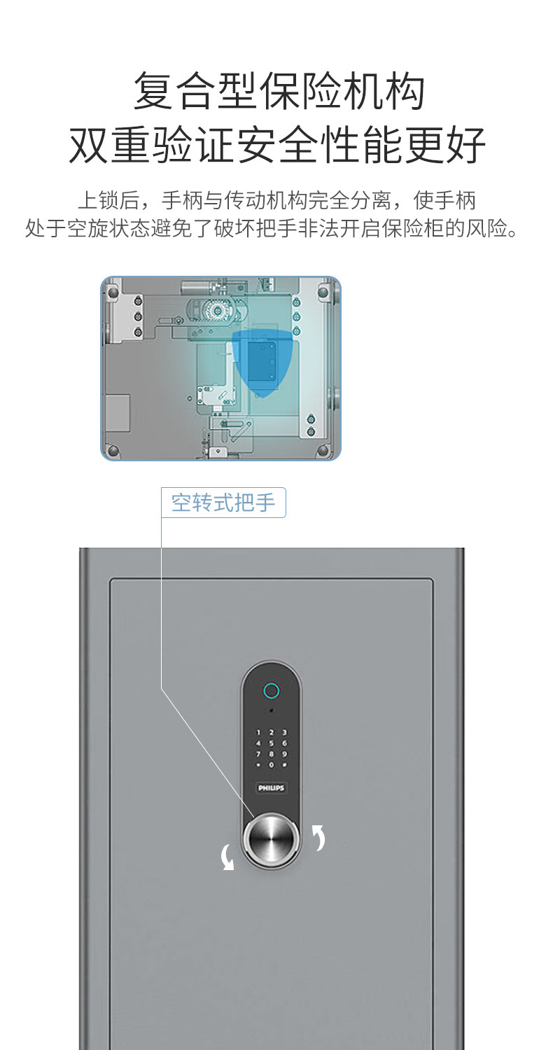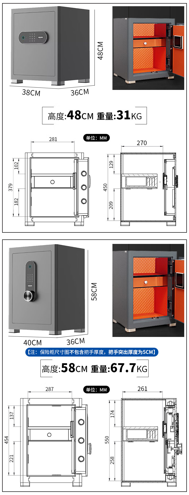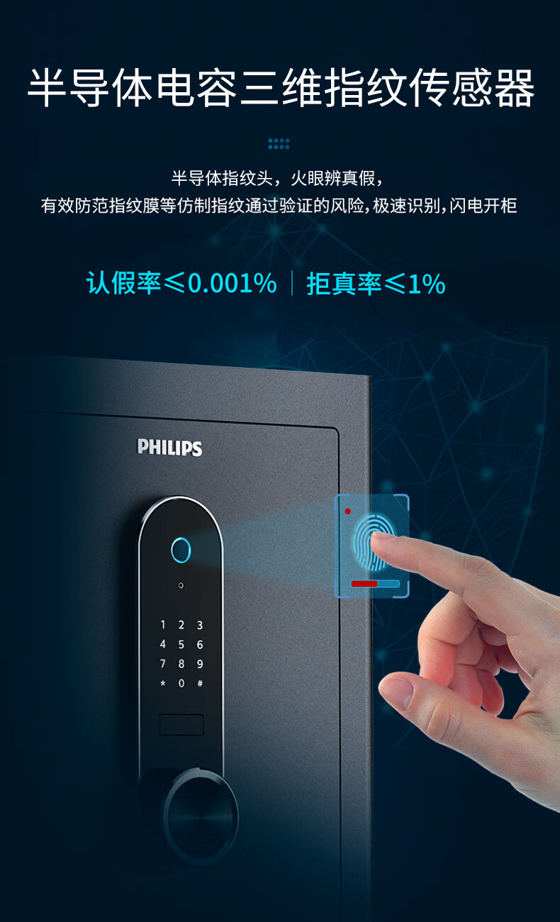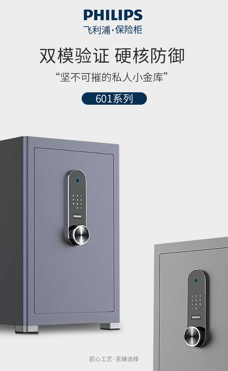 飞利浦保险柜601小型高端家用防搬走防盗入衣柜隐藏式一体成型重型首饰存钱密码指纹办公室财务保险箱 星空灰67.7公斤【高58宽40深36】
