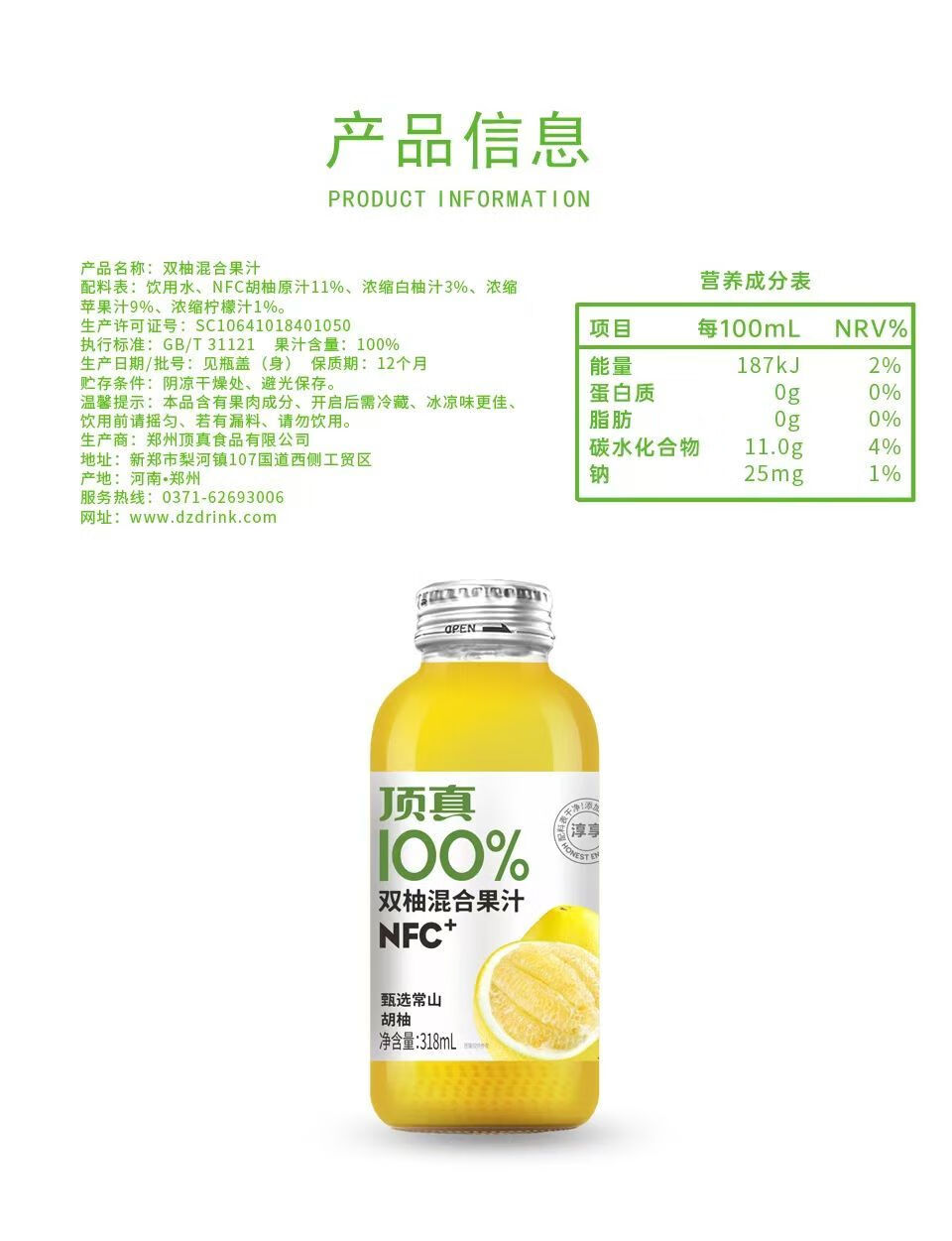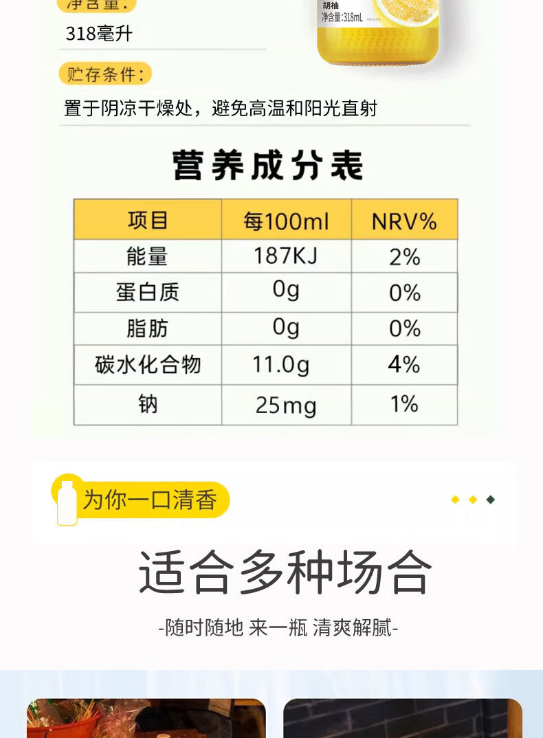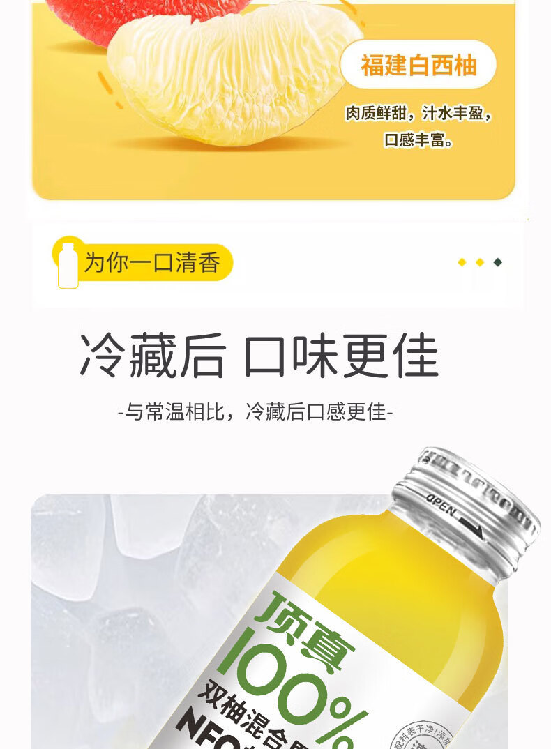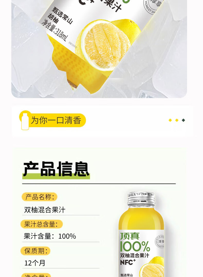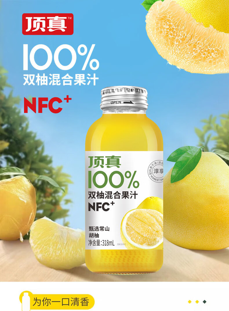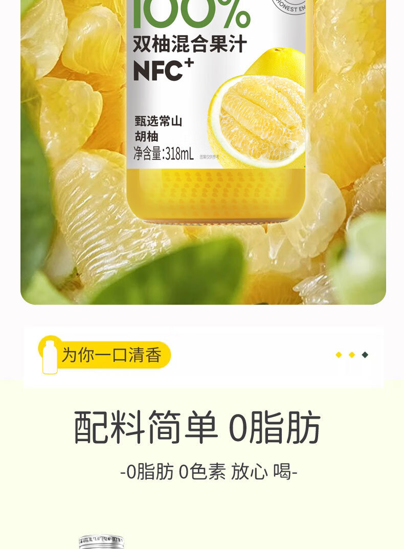 可局双柚混合果汁自然清爽解腻常山胡柚颜值网红nfc玻璃瓶装饮品318ml 配料干净的双柚汁318ml*1瓶