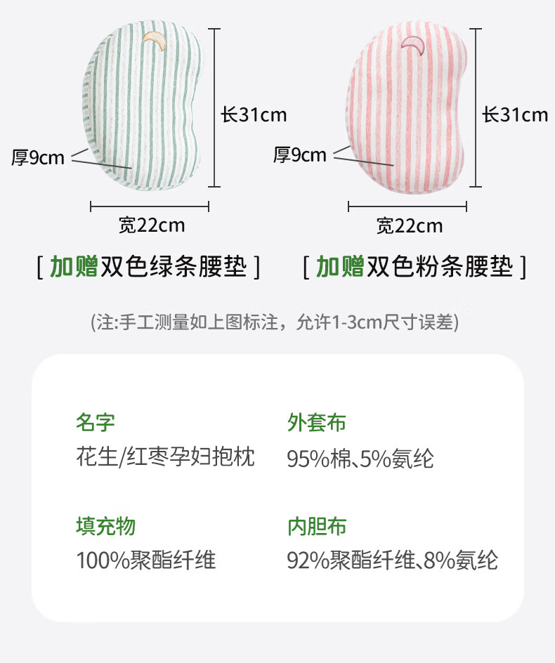 乐瓜 孕妇枕红枣花生睡觉大抱枕抱枕护腰侧睡卧拖腹U形长条枕可拆洗 大号花生孕妇枕