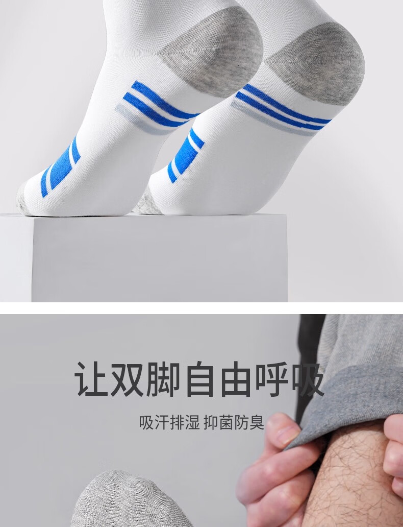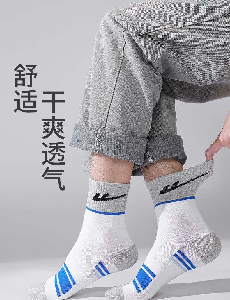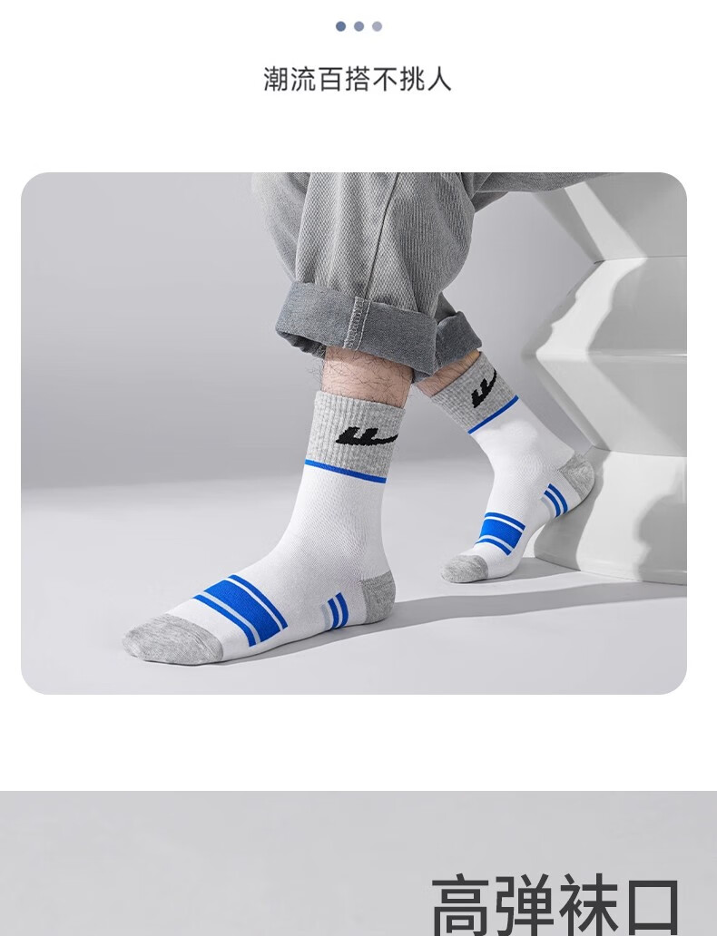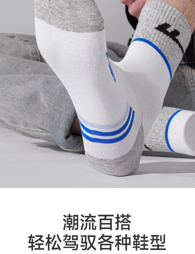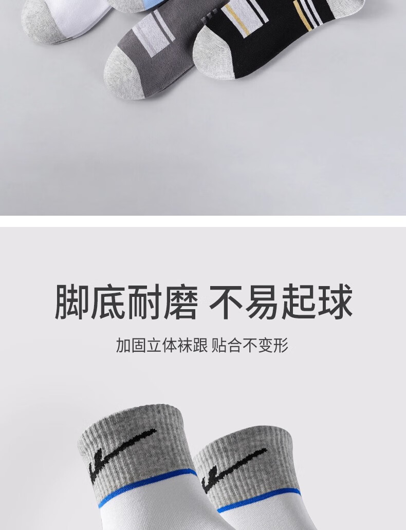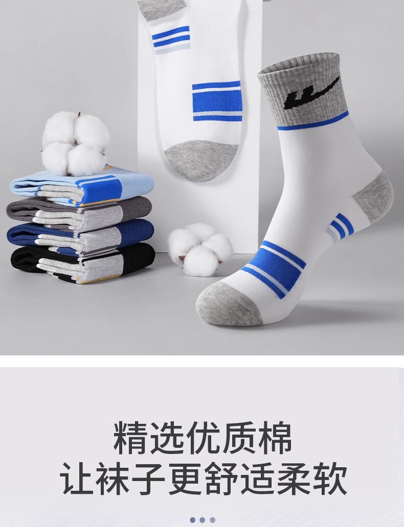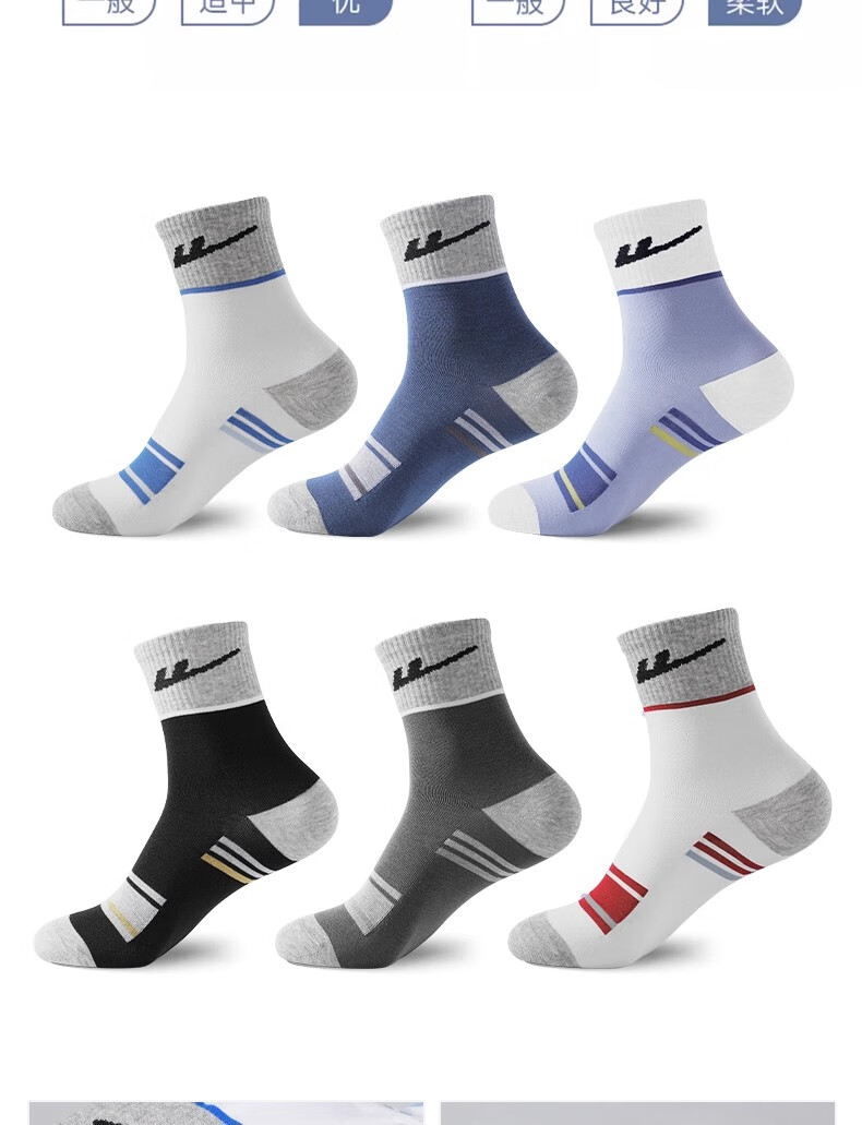 回力袜子男士中筒袜秋冬季新疆棉袜吸汗防臭透气运动袜秋冬加厚 混色 精梳棉 5双