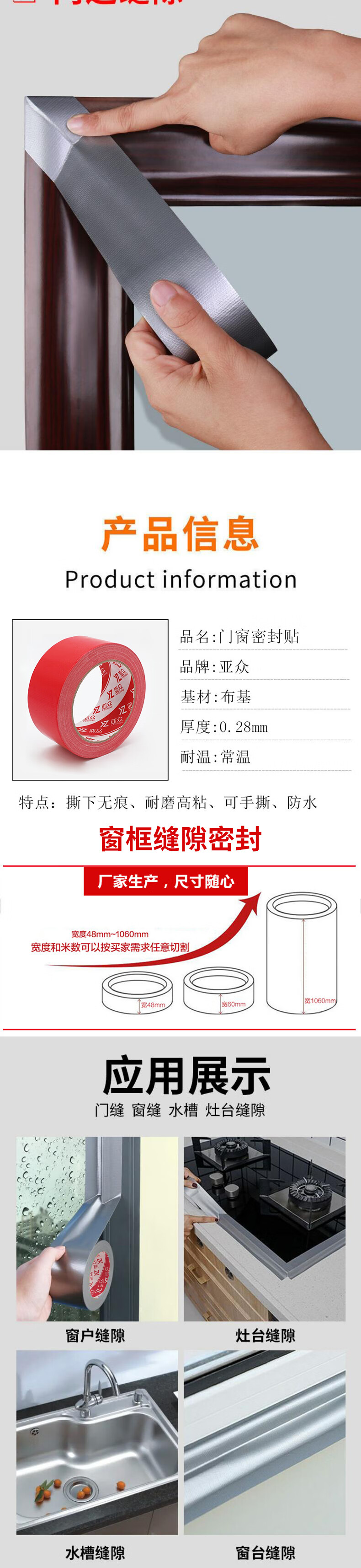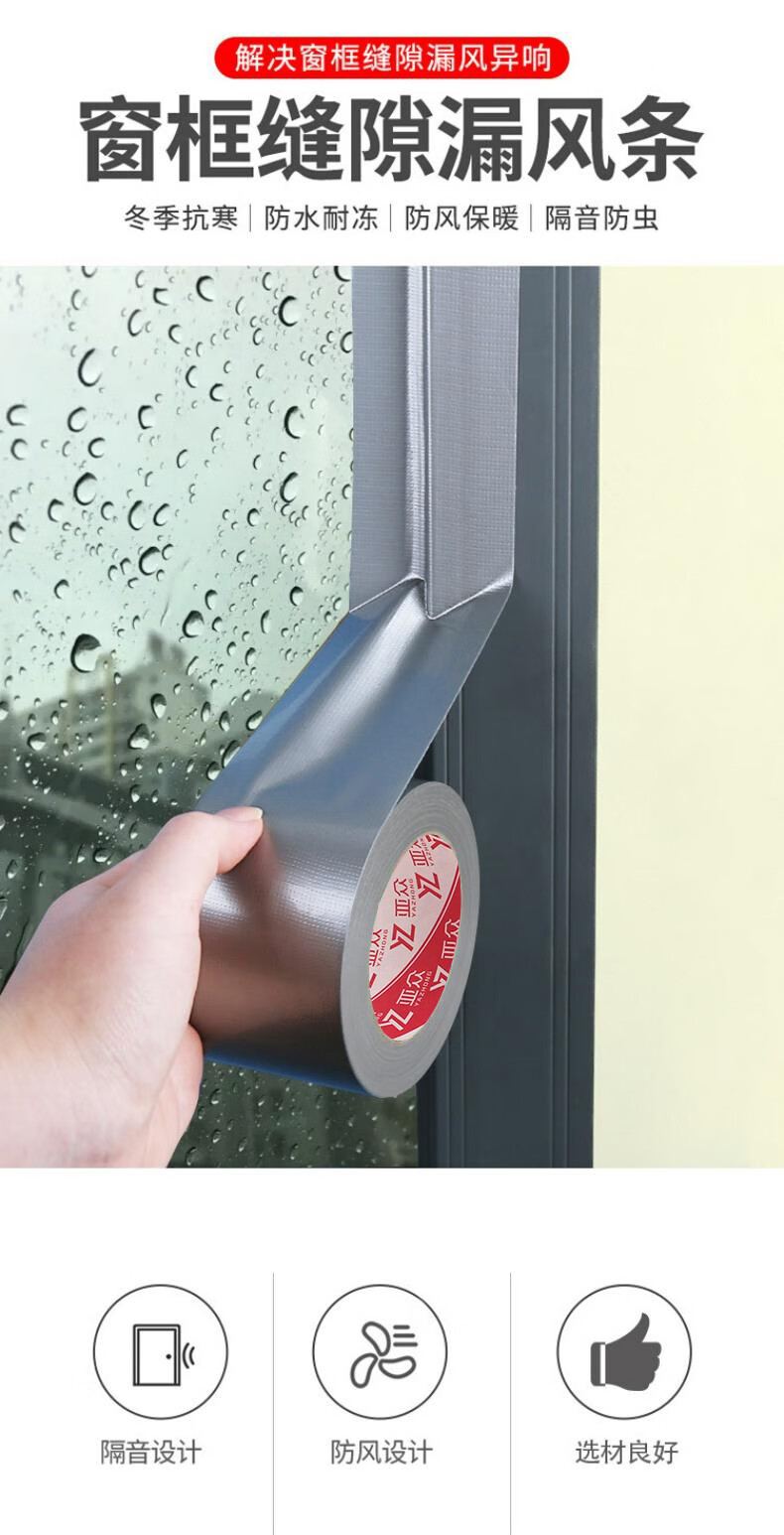亚众 封窗防风抗风保暖胶带加固门窗 缝隙密封神器防强风胶条塑钢窗框防漏风封窗户胶带 银色60mm宽*18m长