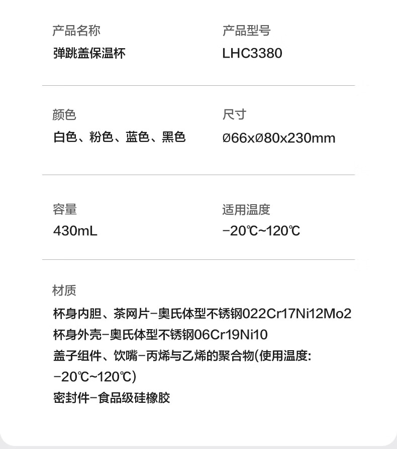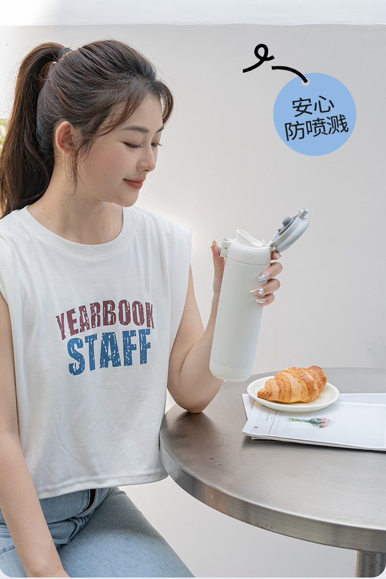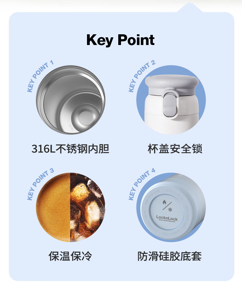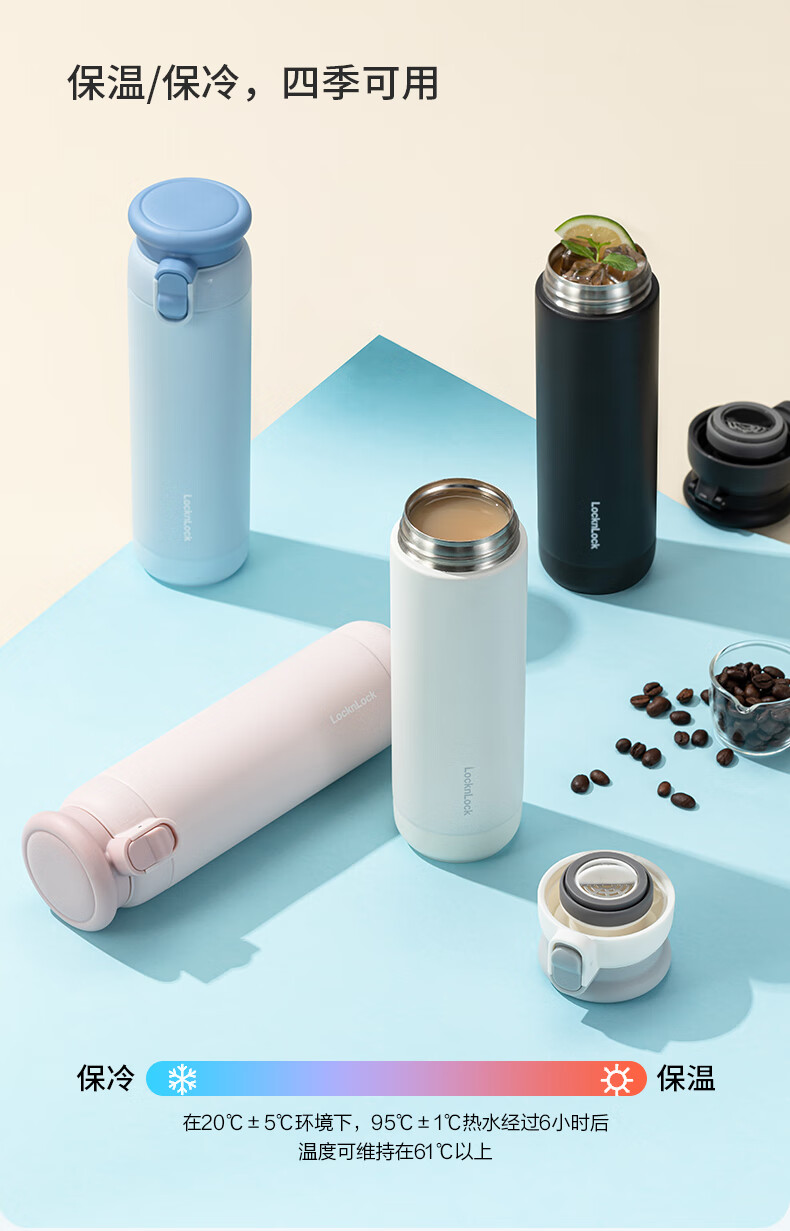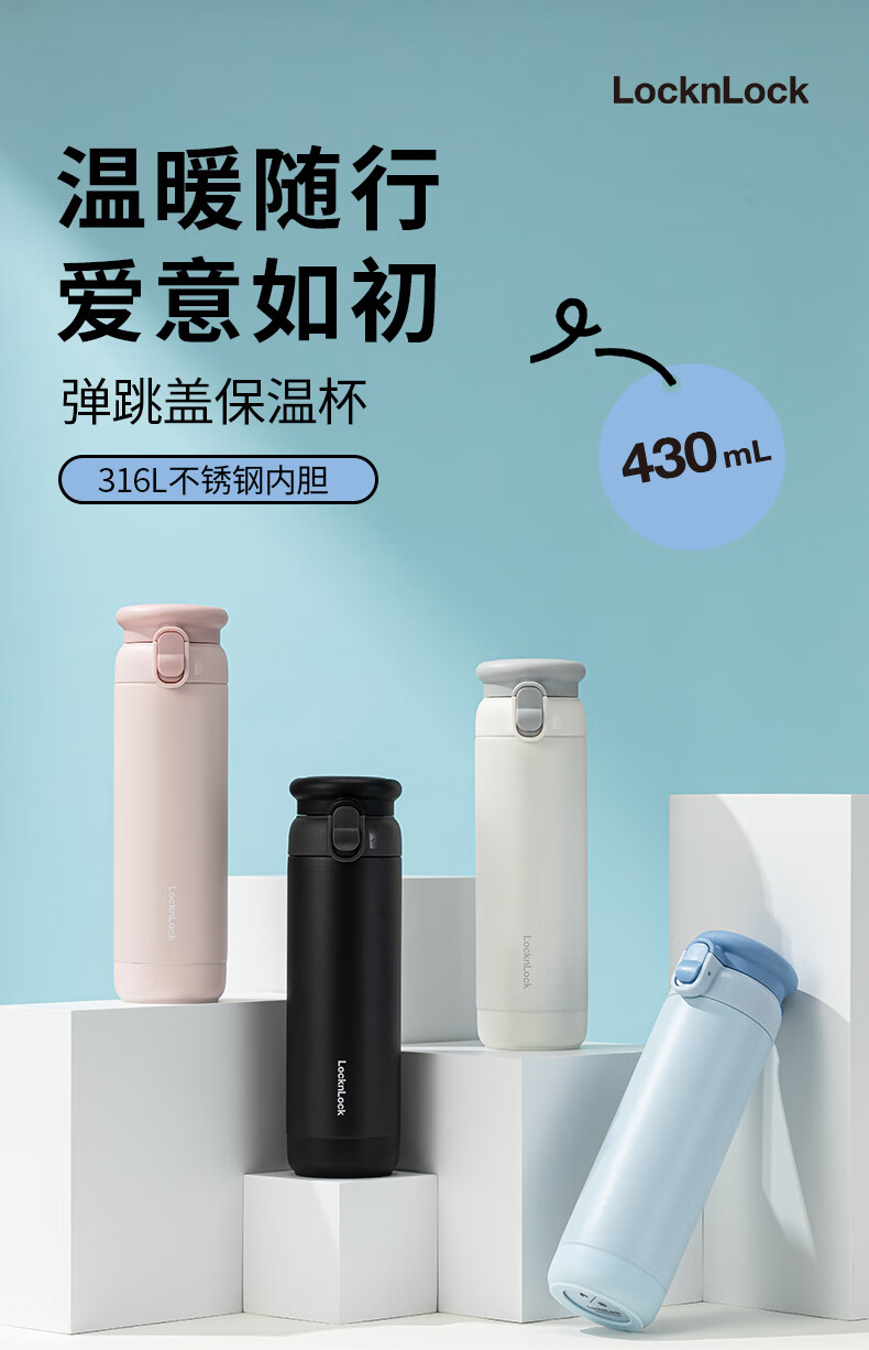 乐扣乐扣(LOCK&LOCK)弹跳盖保温杯男女杯子316L不锈钢大容量便携学生保冷【年会福利】 白色 430ml