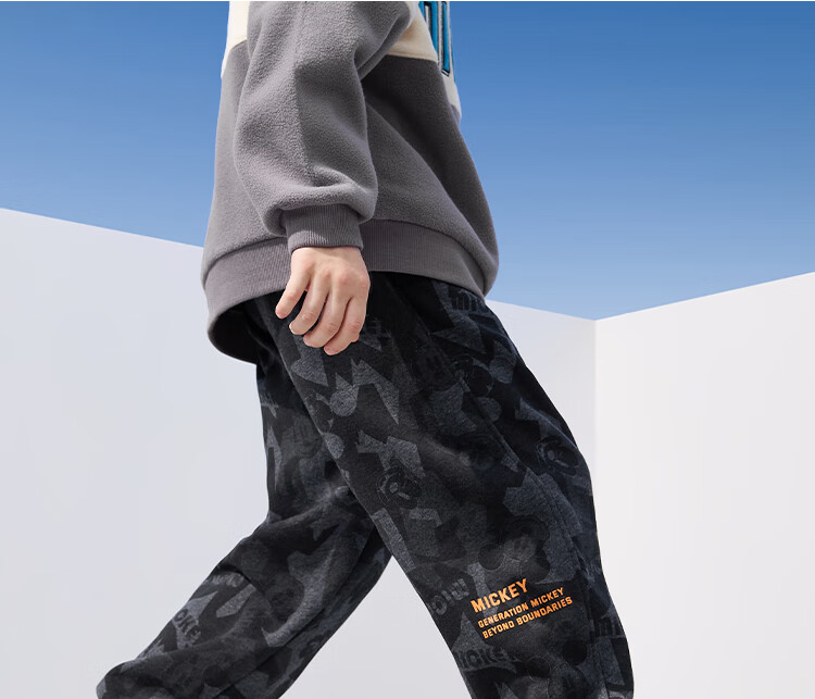 迪士尼(DISNEY)童装儿童男童加绒运动长裤宝宝时尚帅气裤子24冬DB331ME04花130