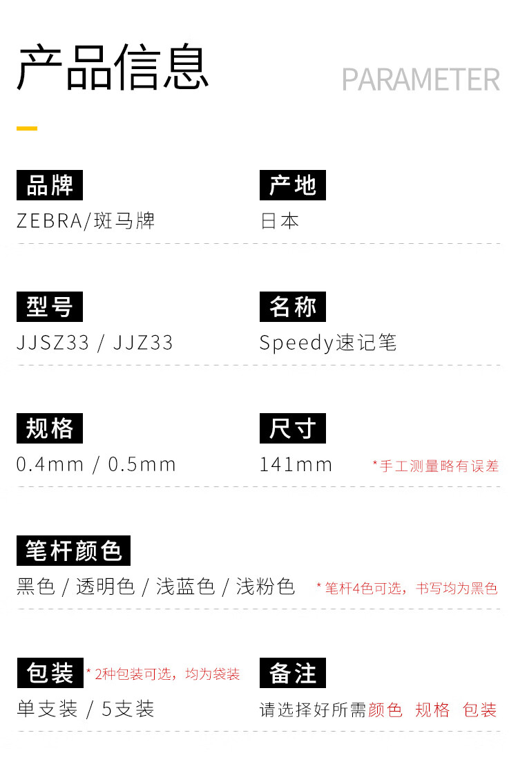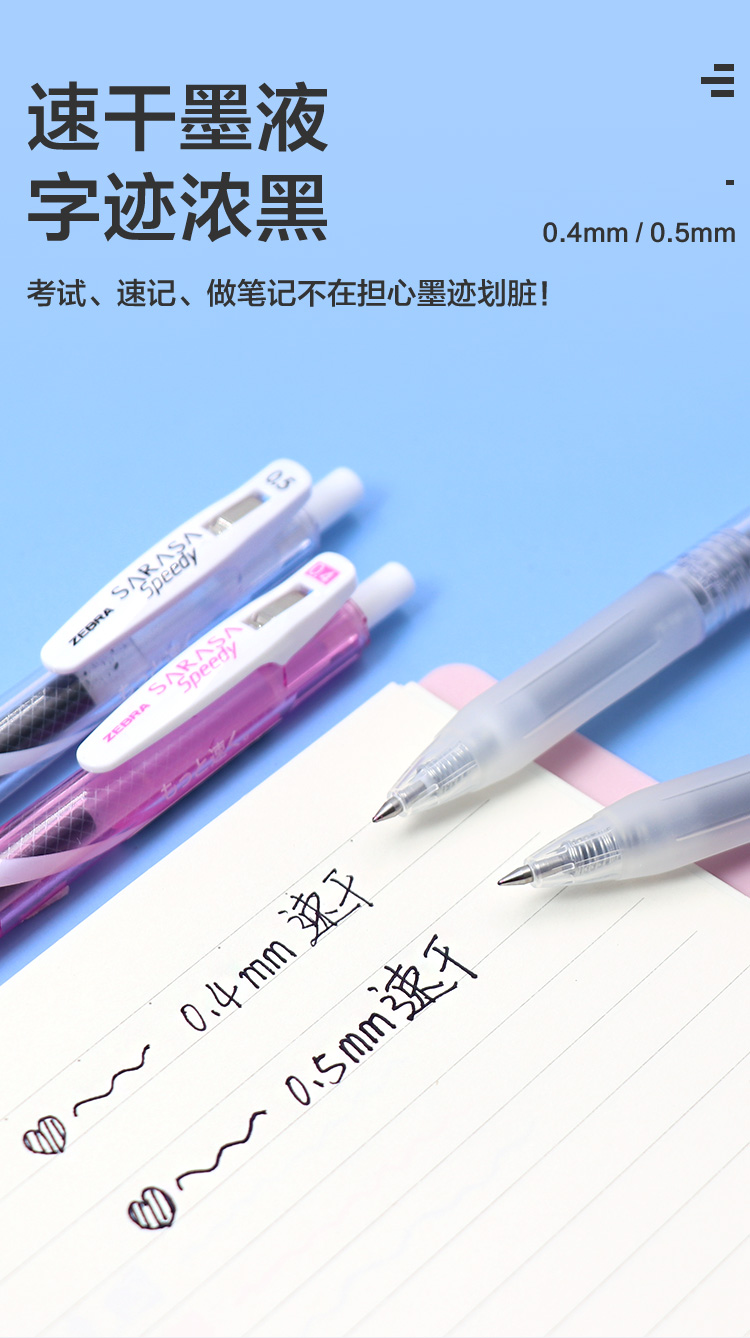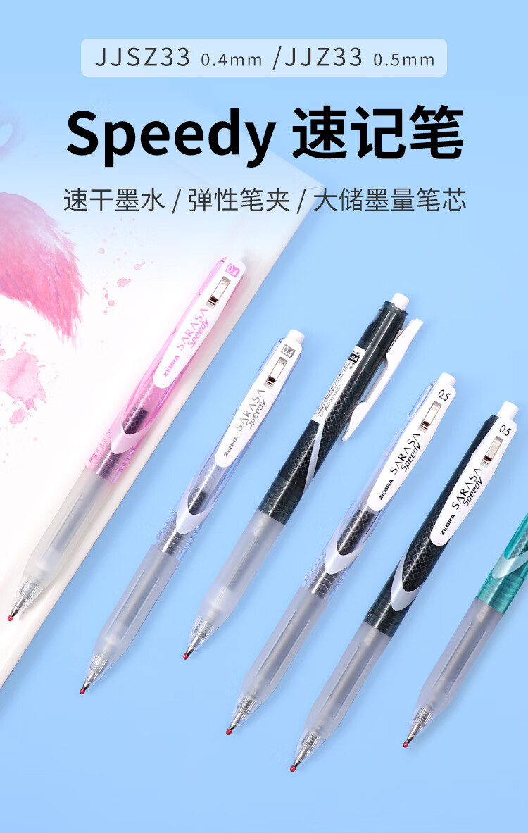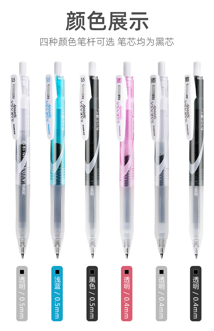 斑马牌(ZEBRA)【热门商品】中性墨水中性笔 Speedy速记学霸笔 0.5mm子弹头大容量手账笔水性笔 JJZ33 透明杆黑色