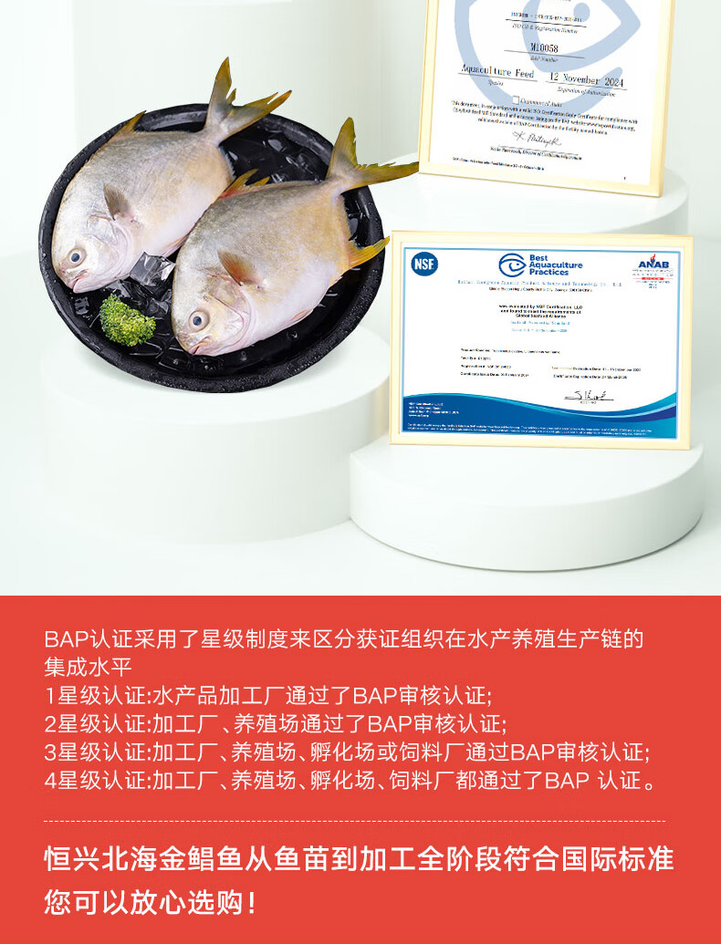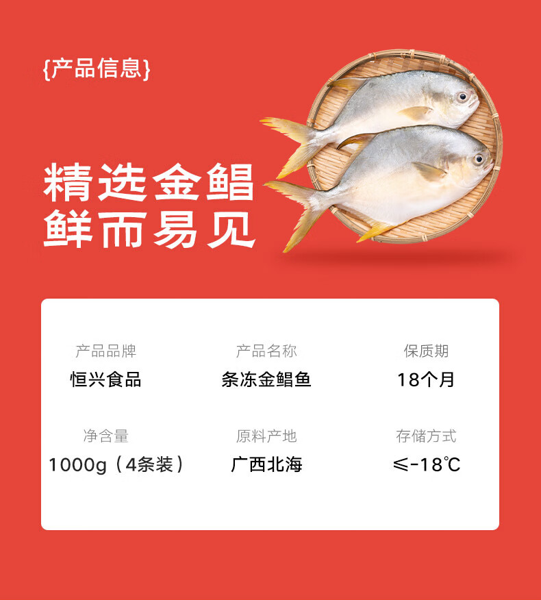 恒兴食品原条金鲳鱼净重2斤/4条装 BAP认证海鲜生鲜深海鱼食材送礼年货节