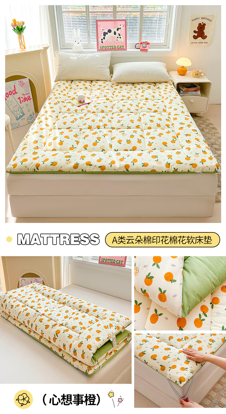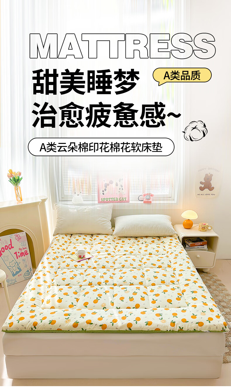 新疆棉花床垫软垫家用卧室榻榻米垫子床褥子加厚睡垫宿舍单人垫被 比利小熊【A类 新疆棉花填充】床垫 双人床 180x200cm【约7斤】