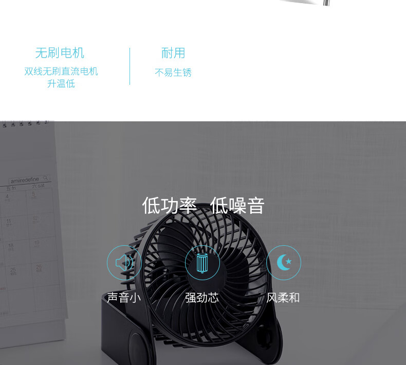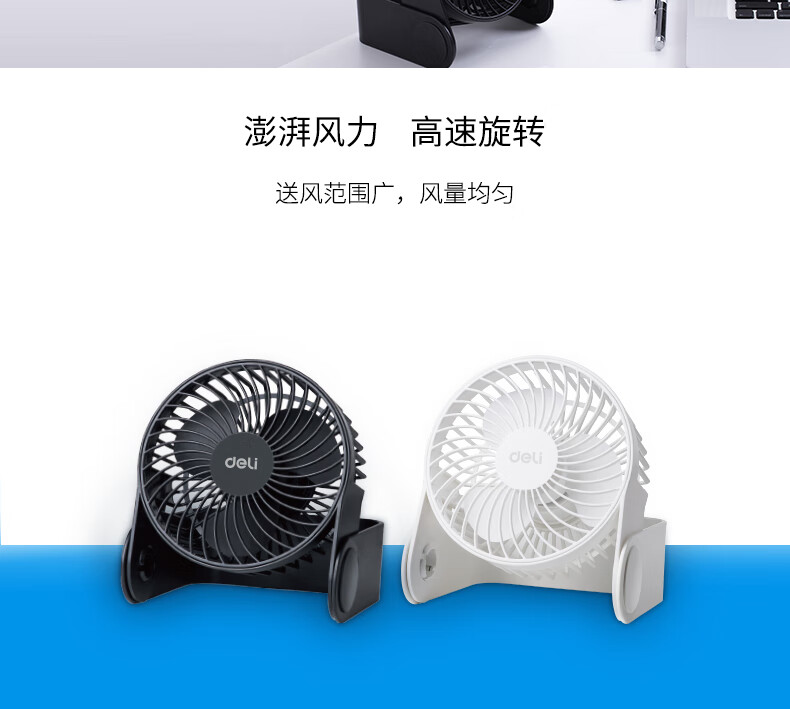 得力USB桌面风扇 两档风速迷你轻音家用卧室办公室台式桌面扇学生宿舍小风扇 U型底座小台扇/电风扇 黑