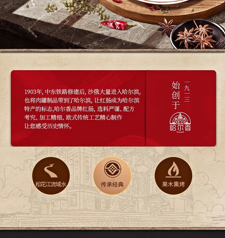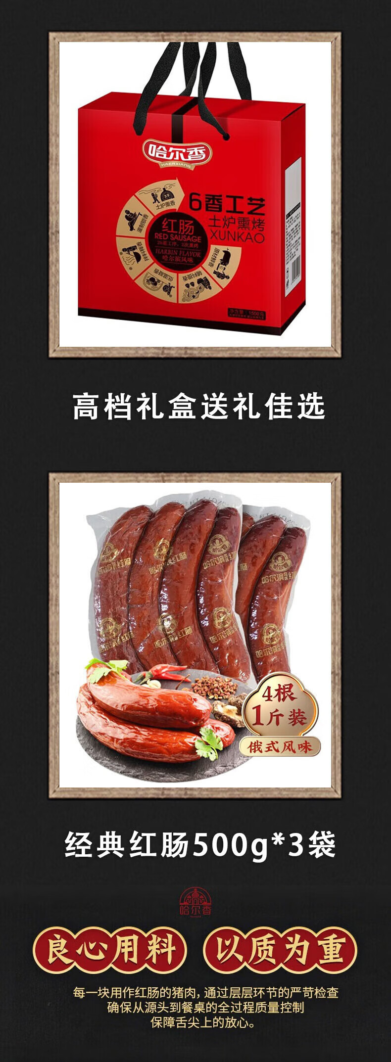 哈尔香哈尔滨风味红肠熟食腊味果木熏制俄罗斯香肠 开袋即食独立包装 精选礼盒1500g