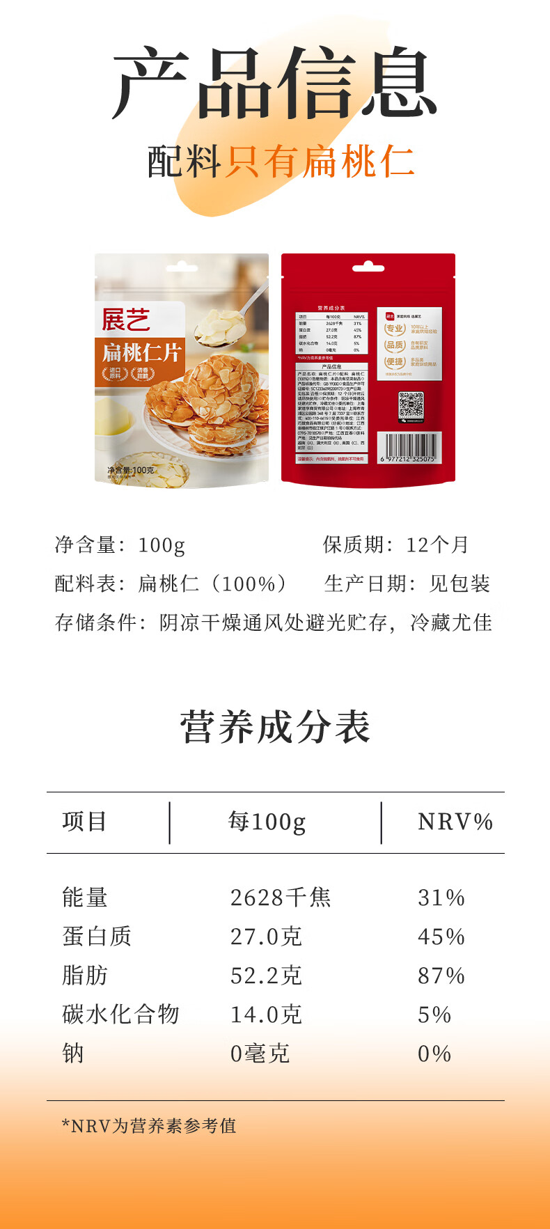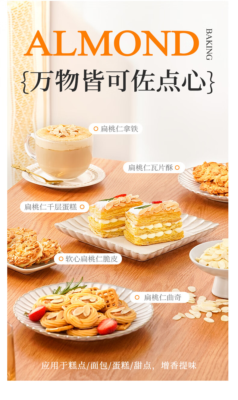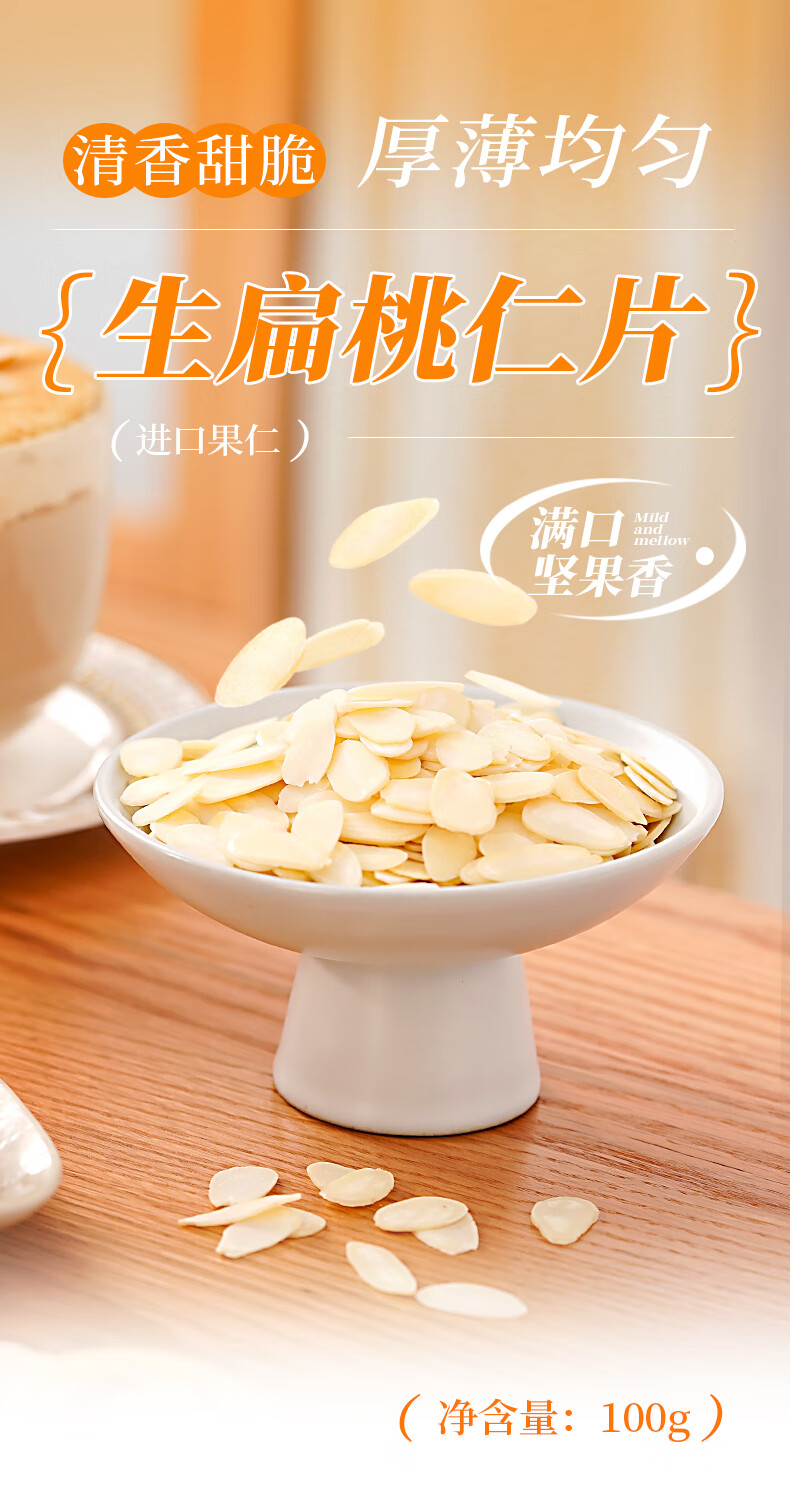 展艺 扁桃仁片 大杏仁木仁片曲奇饼干牛轧糖糯米船太妃糖花生片 100g