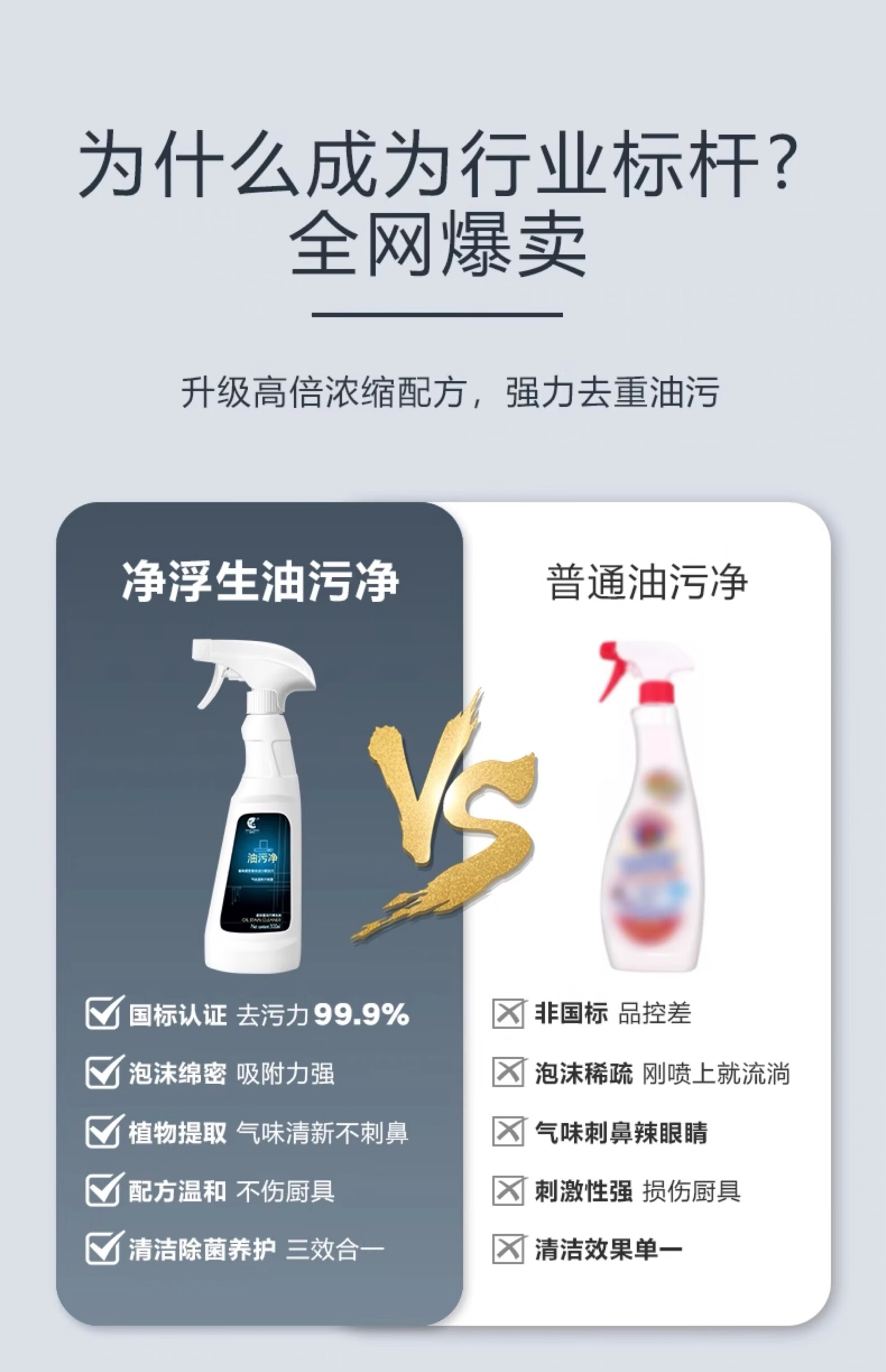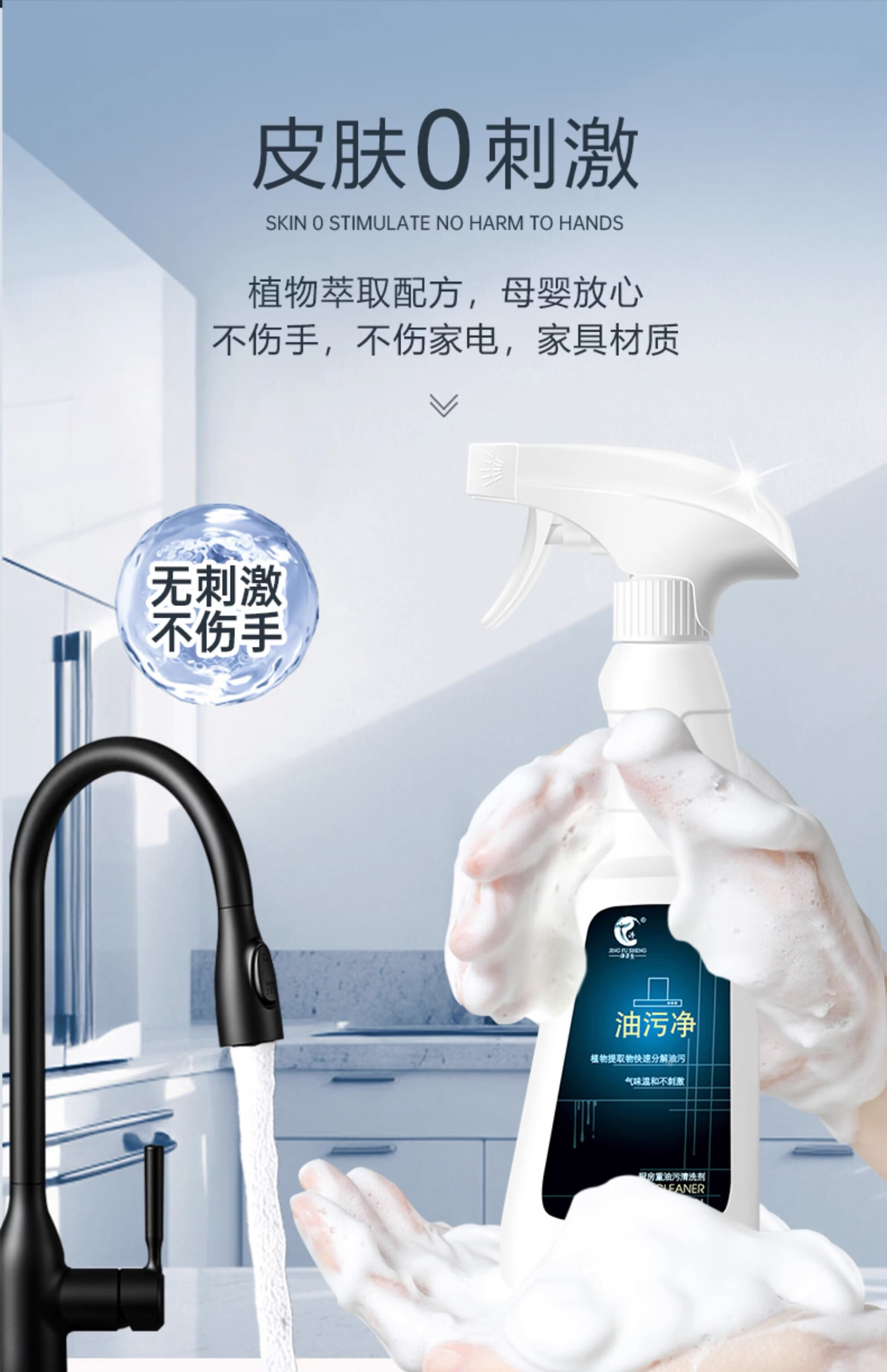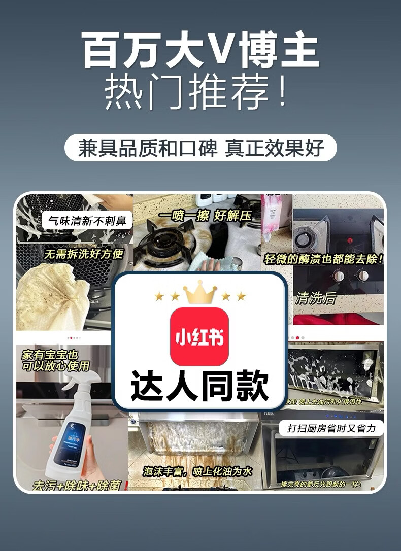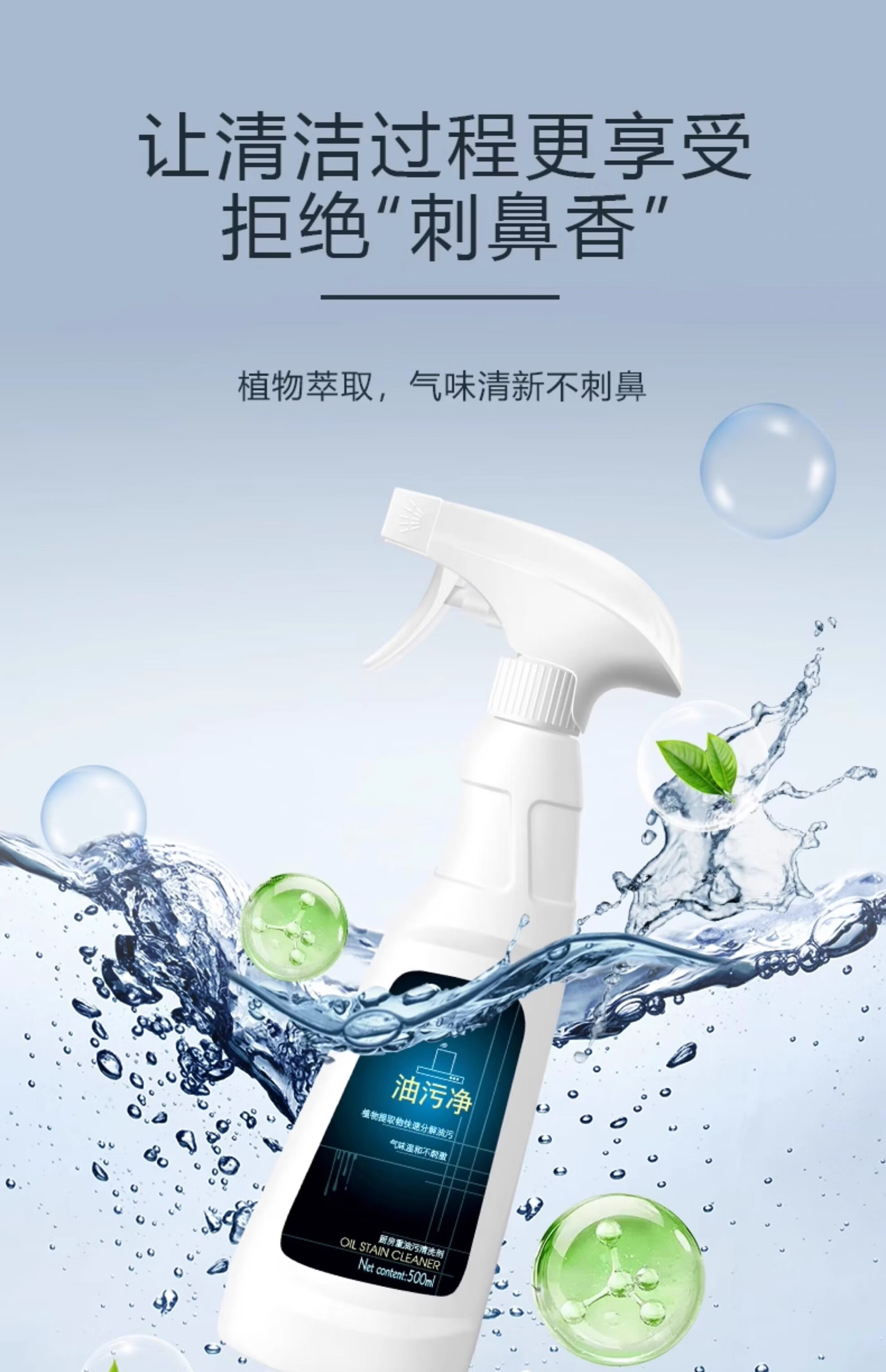 净浮生500ml油污净强力去油污清洗剂清洁剂油烟机锅底净重油污灶台神器 5瓶2喷头