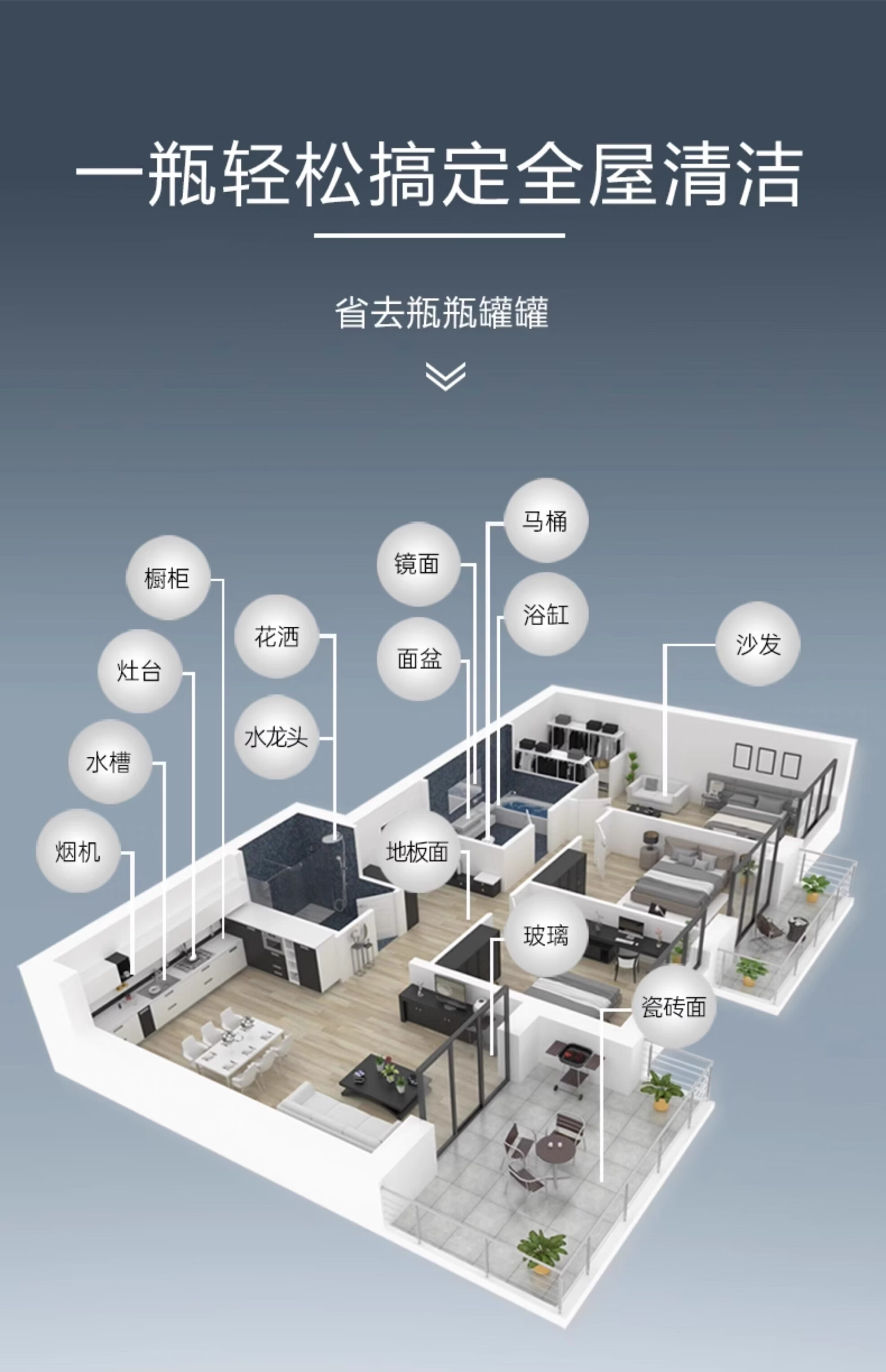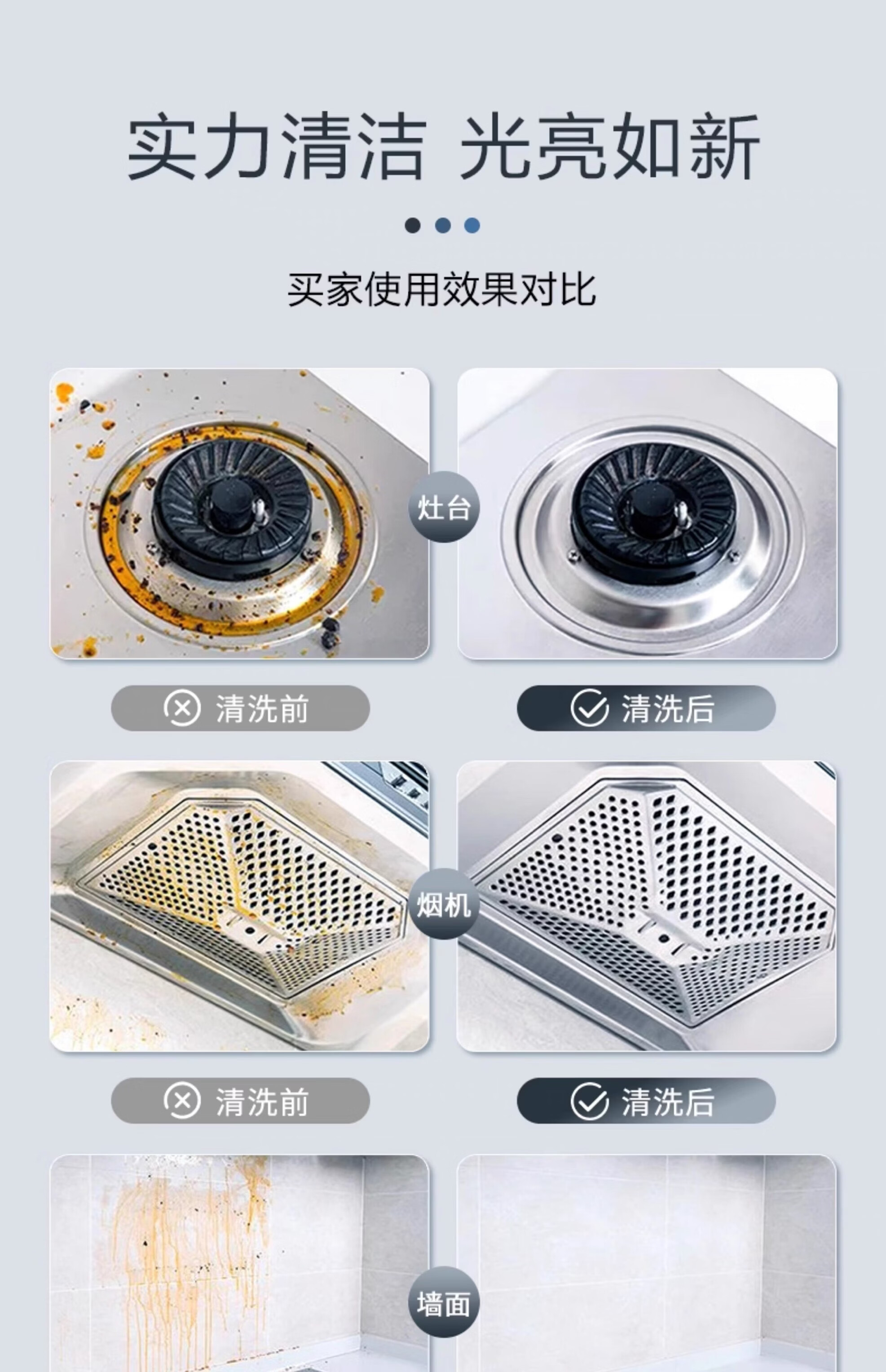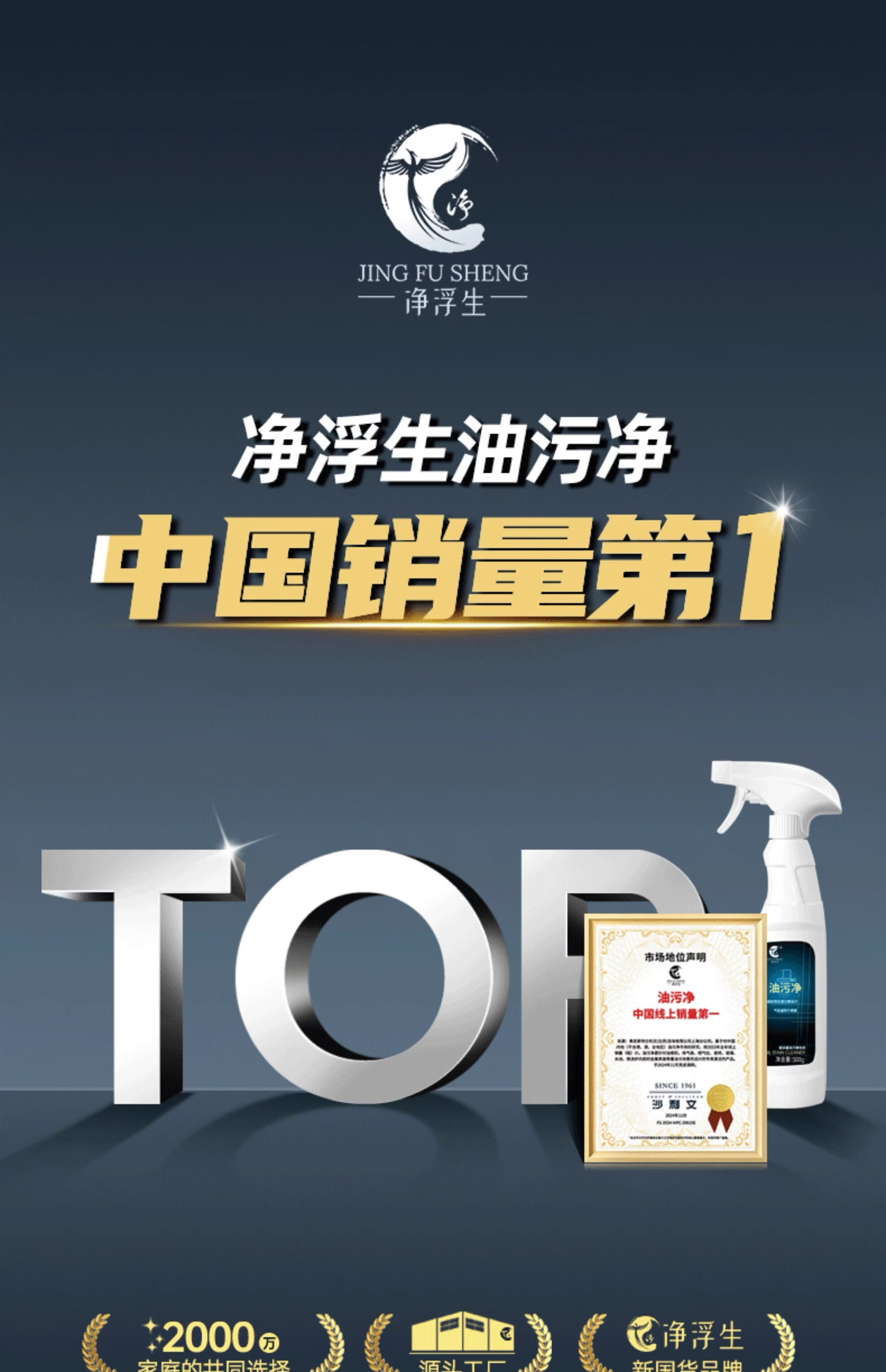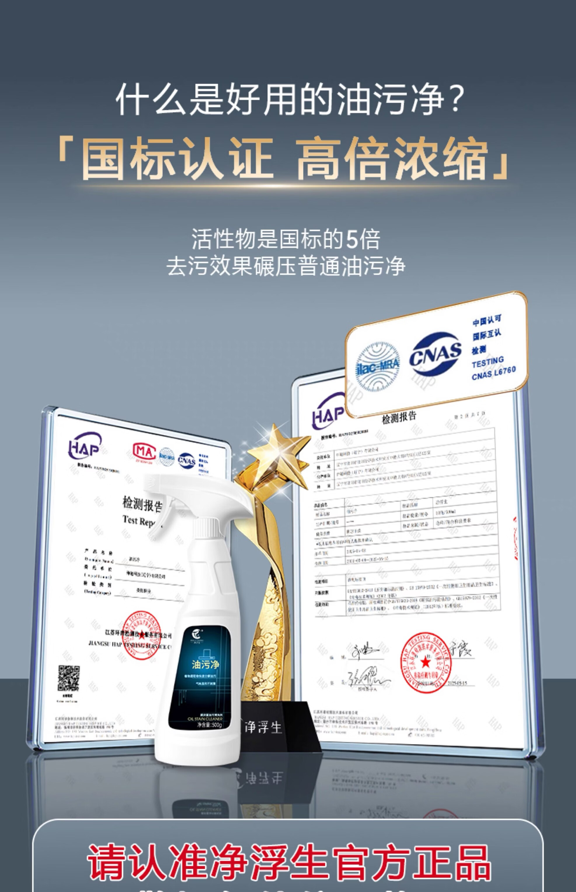 净浮生500ml油污净强力去油污清洗剂清洁剂油烟机锅底净重油污灶台神器 5瓶2喷头