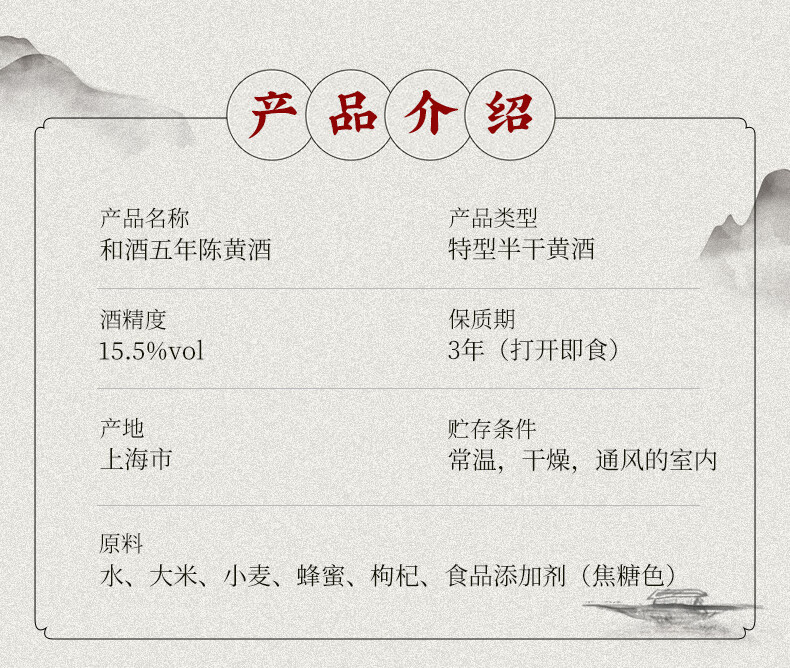 和酒五年陈黄酒 500ml*12瓶装特型半干型黄酒上海老酒 礼盒送礼 500mL 12瓶 整箱装