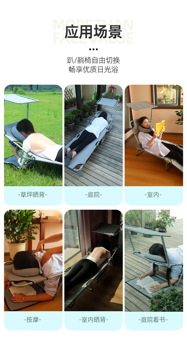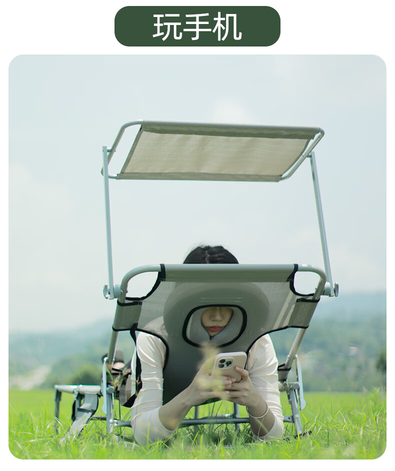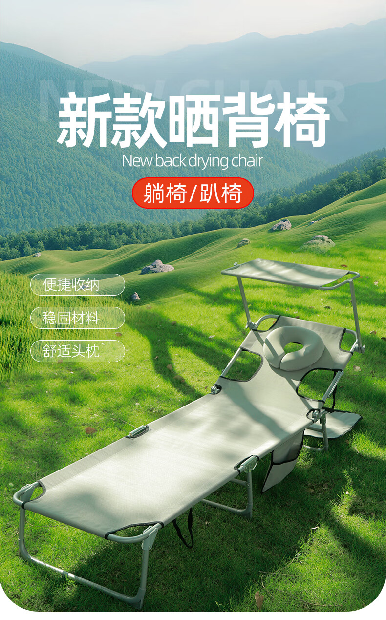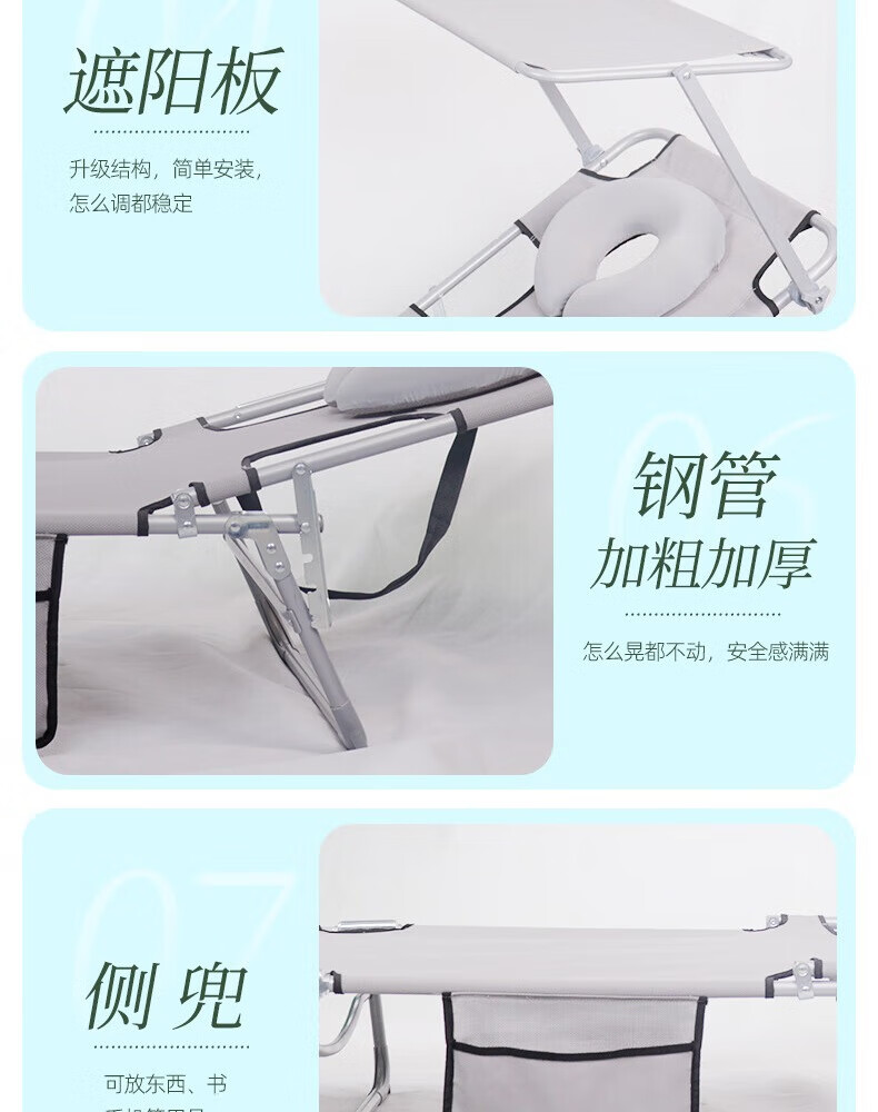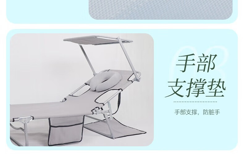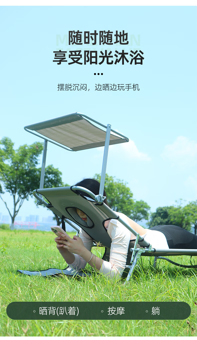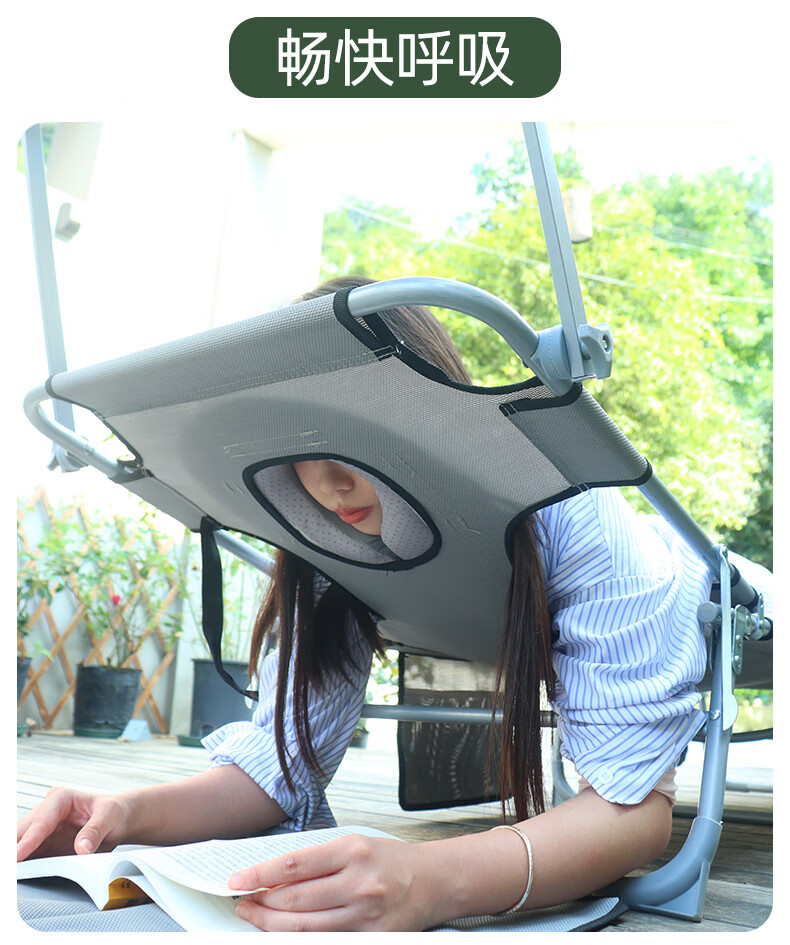 新款晒背趴椅躺椅可伸手玩手机特斯林面料按摩椅趴椅折叠椅躺椅 灰色+遮阳板(赠送手部支撑垫)