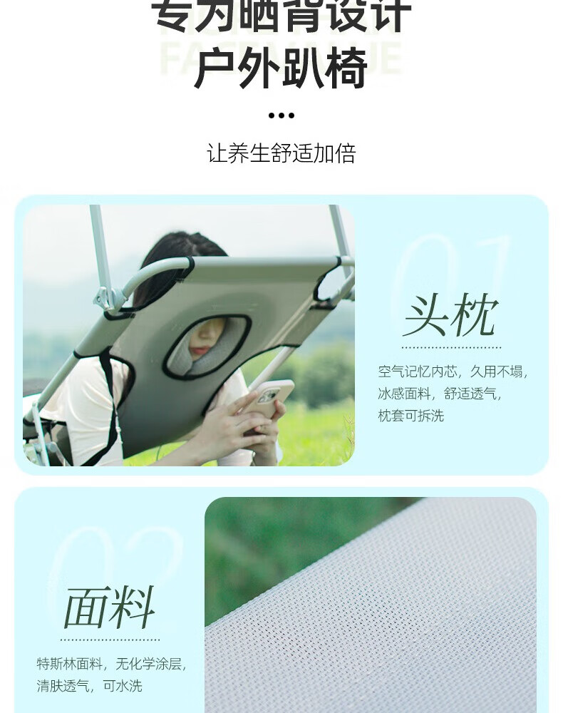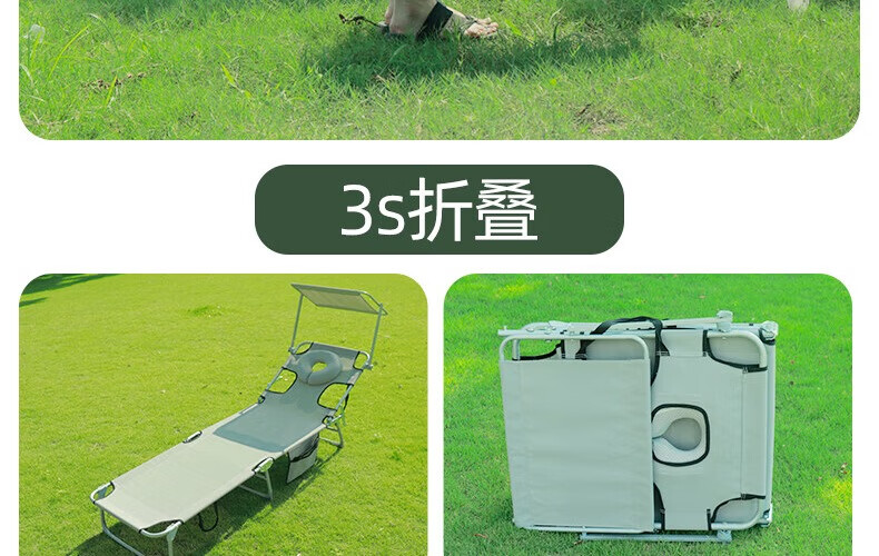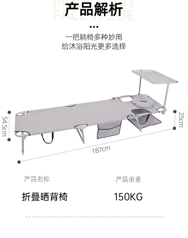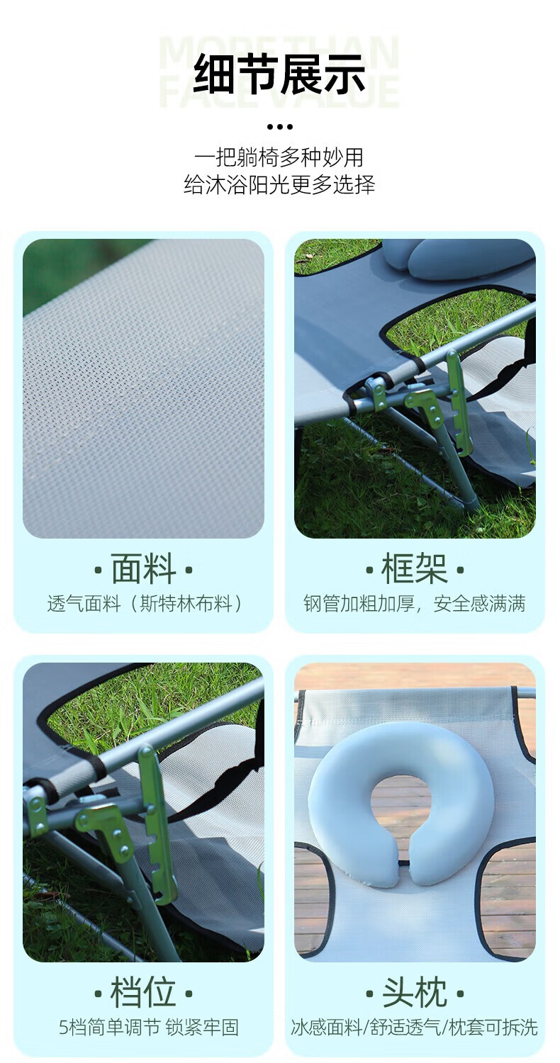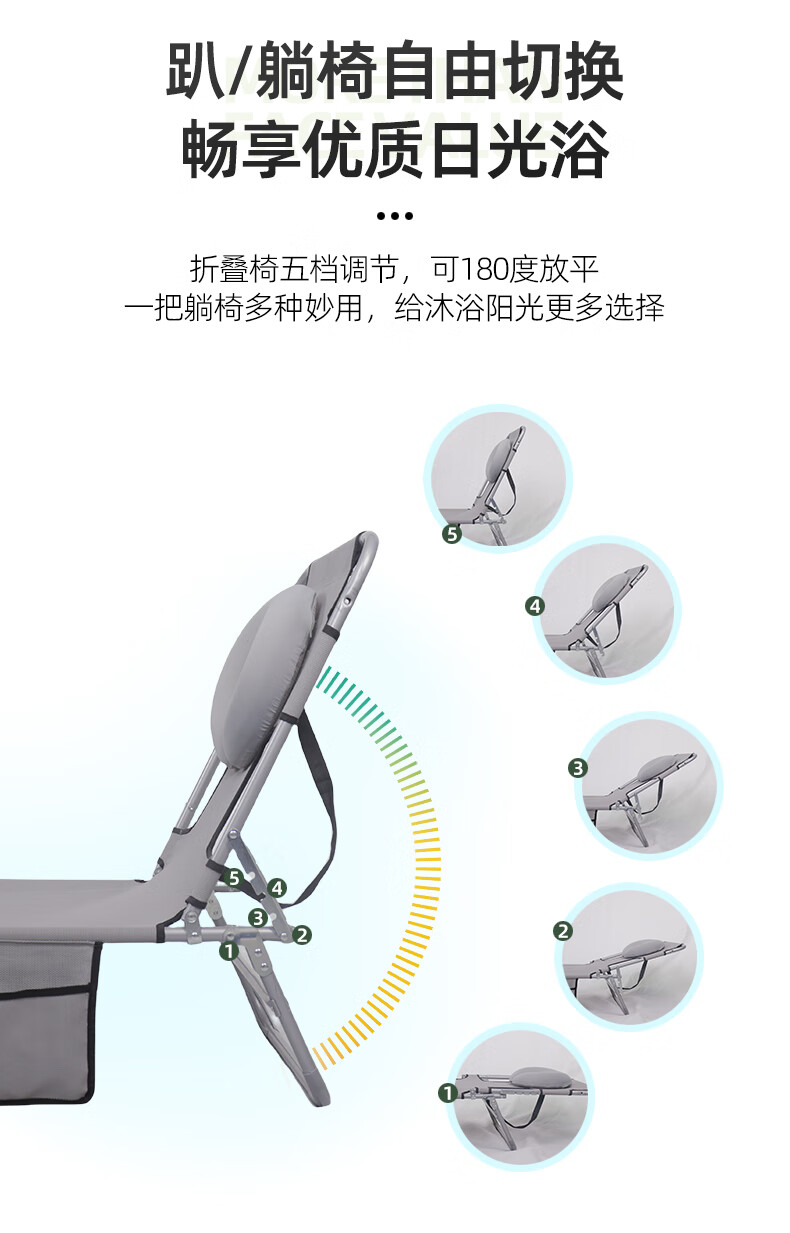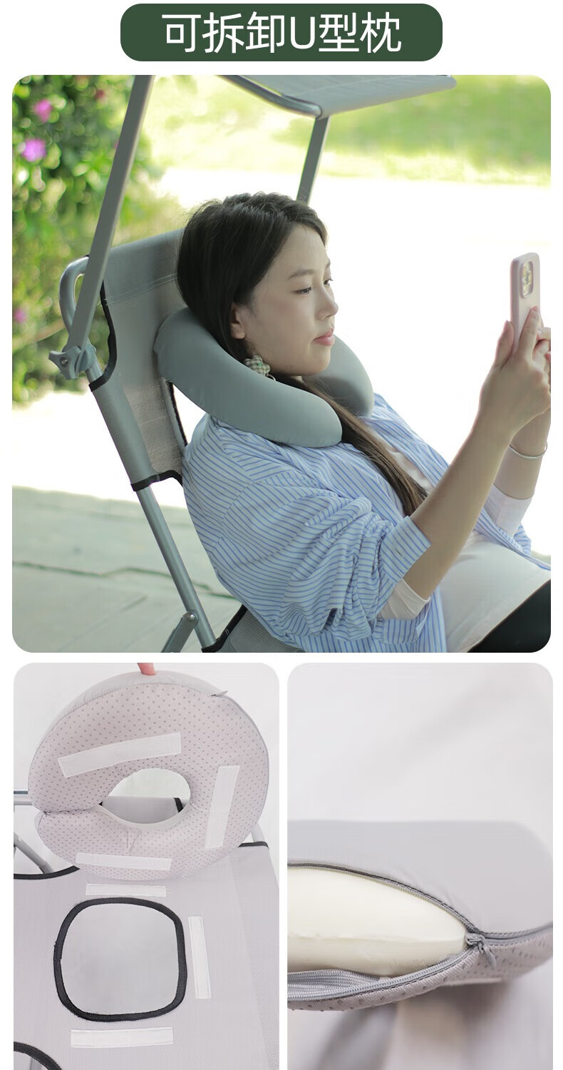 新款晒背趴椅躺椅可伸手玩手机特斯林面料按摩椅趴椅折叠椅躺椅 灰色+遮阳板(赠送手部支撑垫)