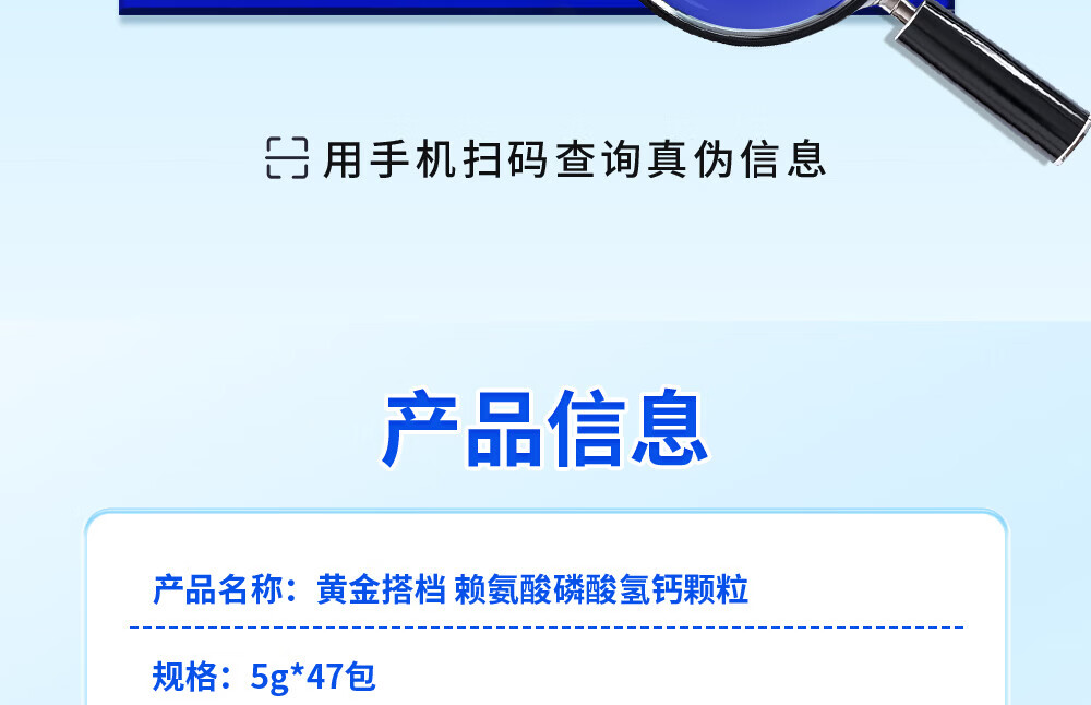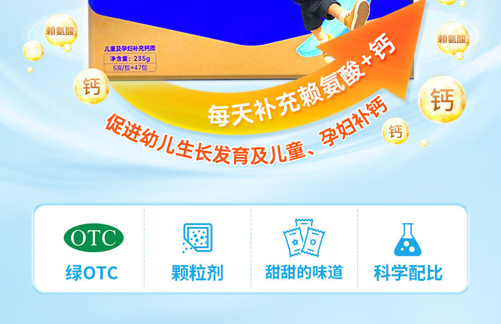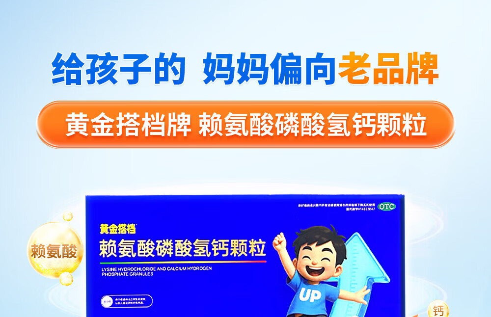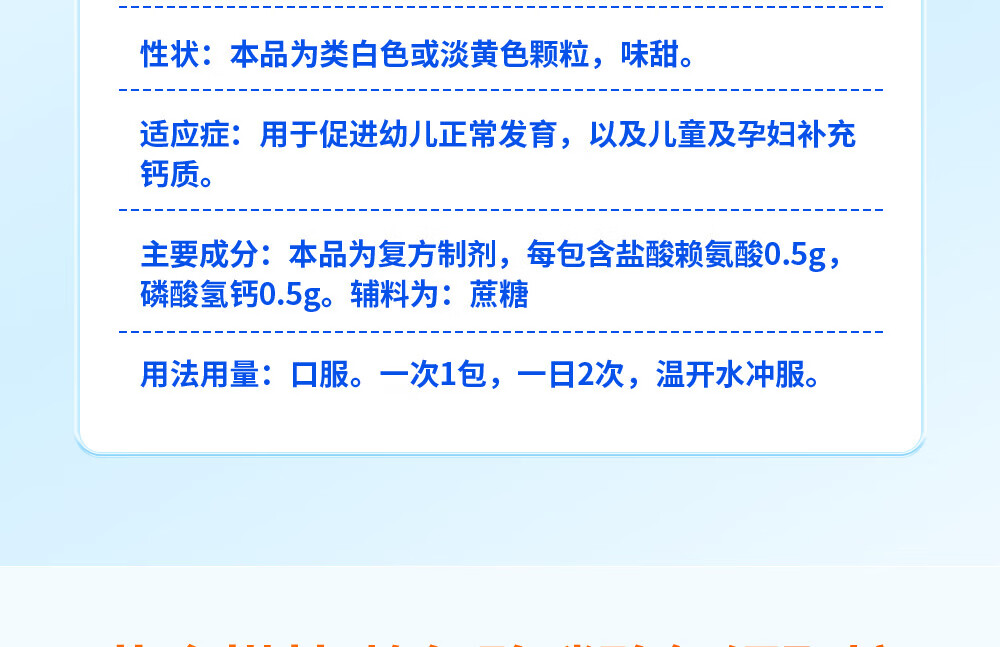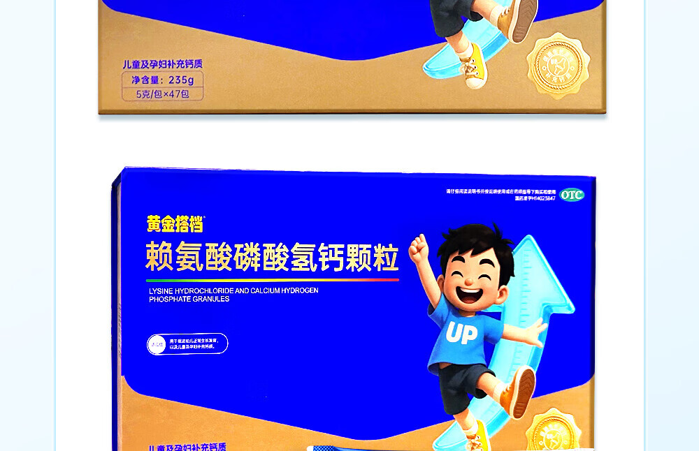 [黄金搭档]赖氨酸磷酸氢钙颗粒 5g*47袋 1盒装 孕妇儿童补钙赖氨酸助长高生长 OTC国药准字