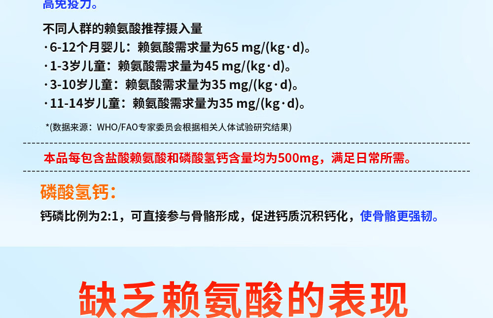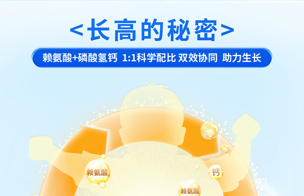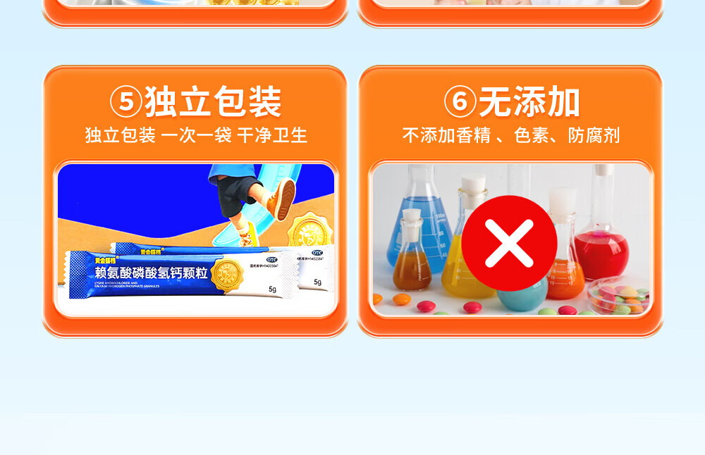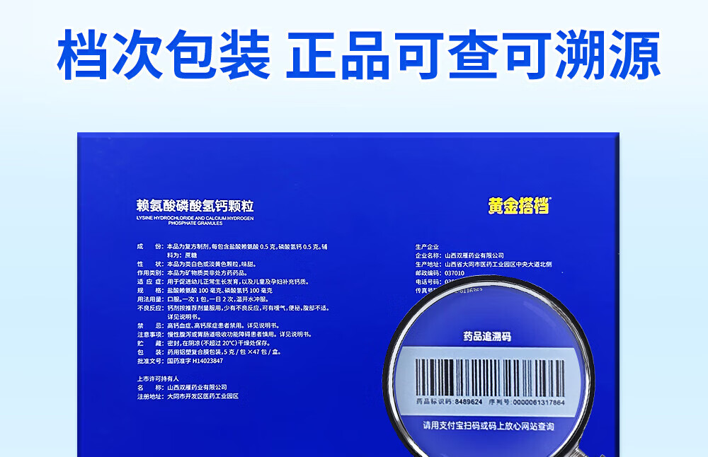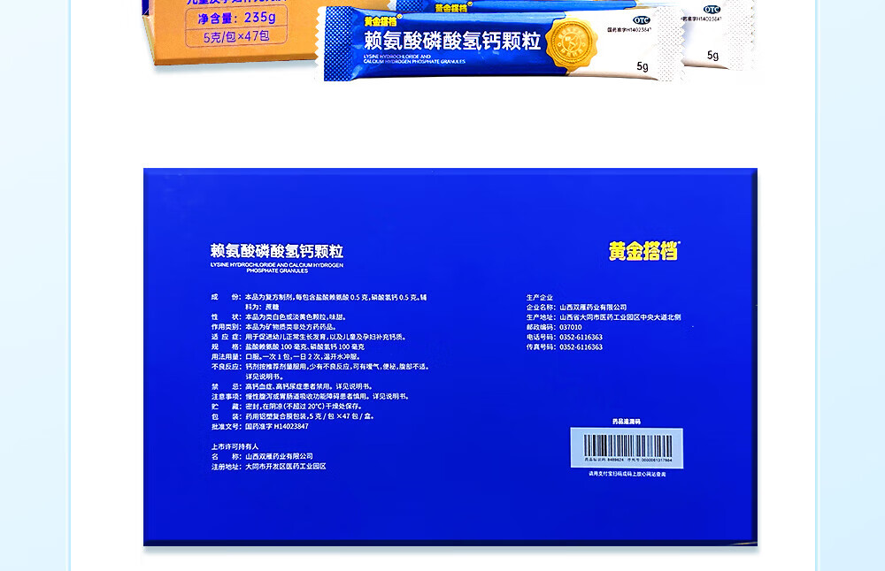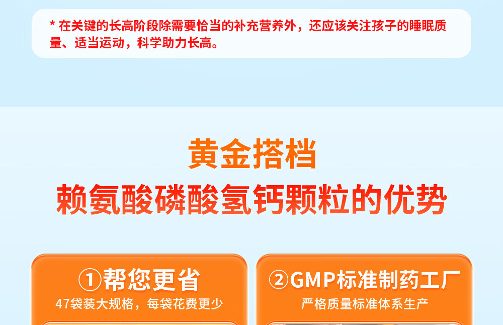 [黄金搭档]赖氨酸磷酸氢钙颗粒 5g*47袋 1盒装 孕妇儿童补钙赖氨酸助长高生长 OTC国药准字