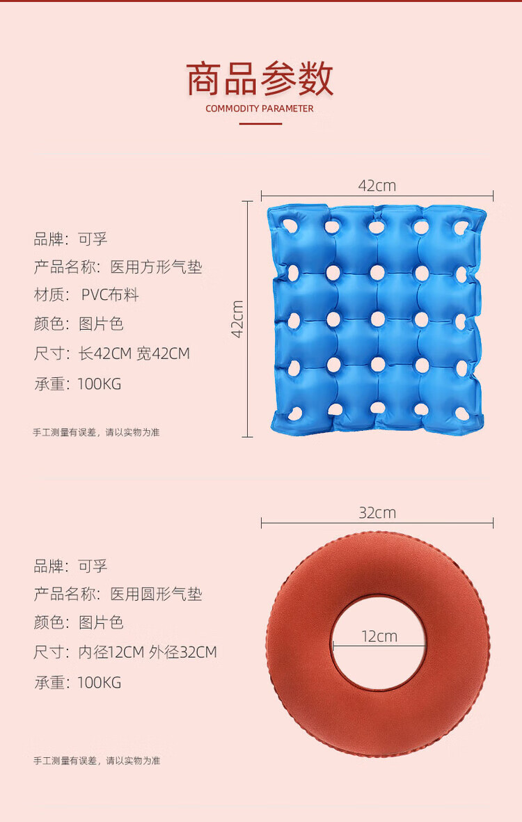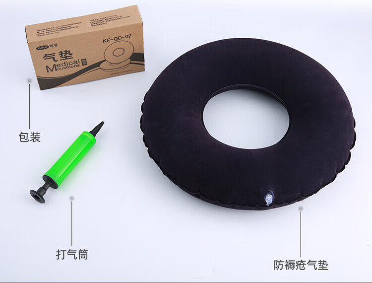 可孚防褥疮垫防褥疮气垫圈痔疮充气坐垫医用卧床老人专用屁垫压疮病人 圆形坐垫1个+方形坐垫1个+打气筒【2件省5元】