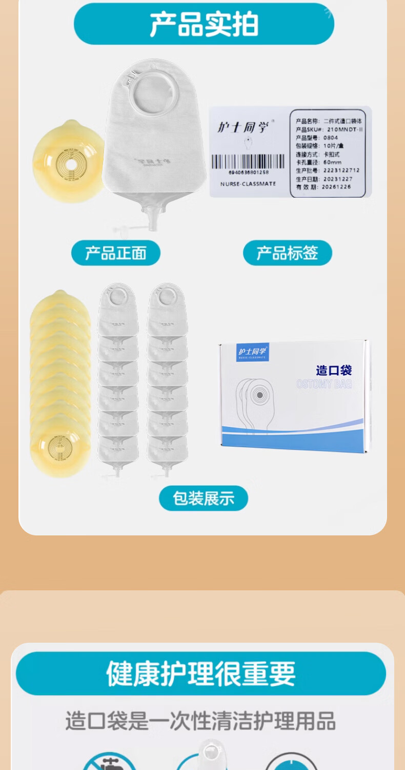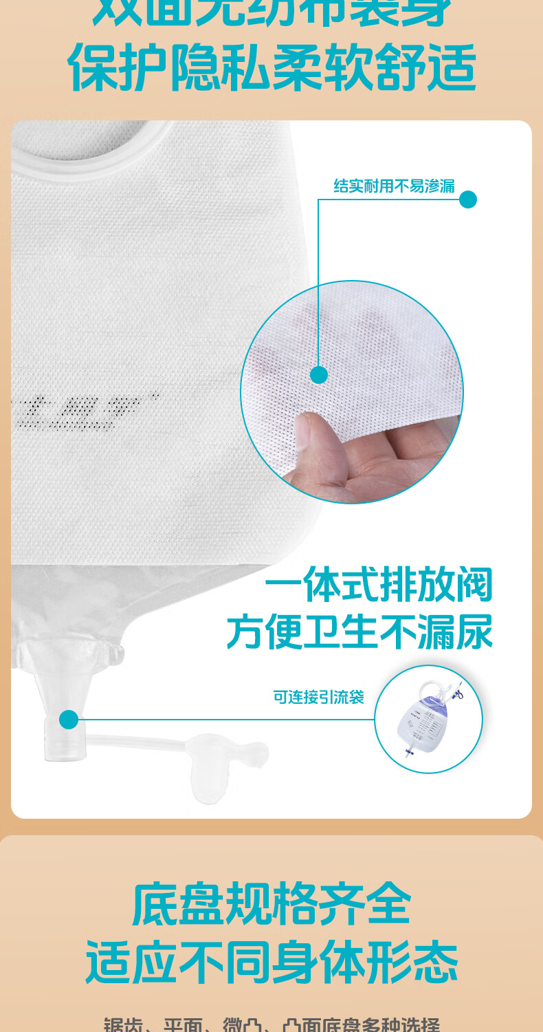 护士同学1759 二件式尿路造口袋两件式造瘘袋抗返流泌尿袋造口护理小便袋 凸面底盘(10个)+尿袋(10个)+送剥离剂1瓶