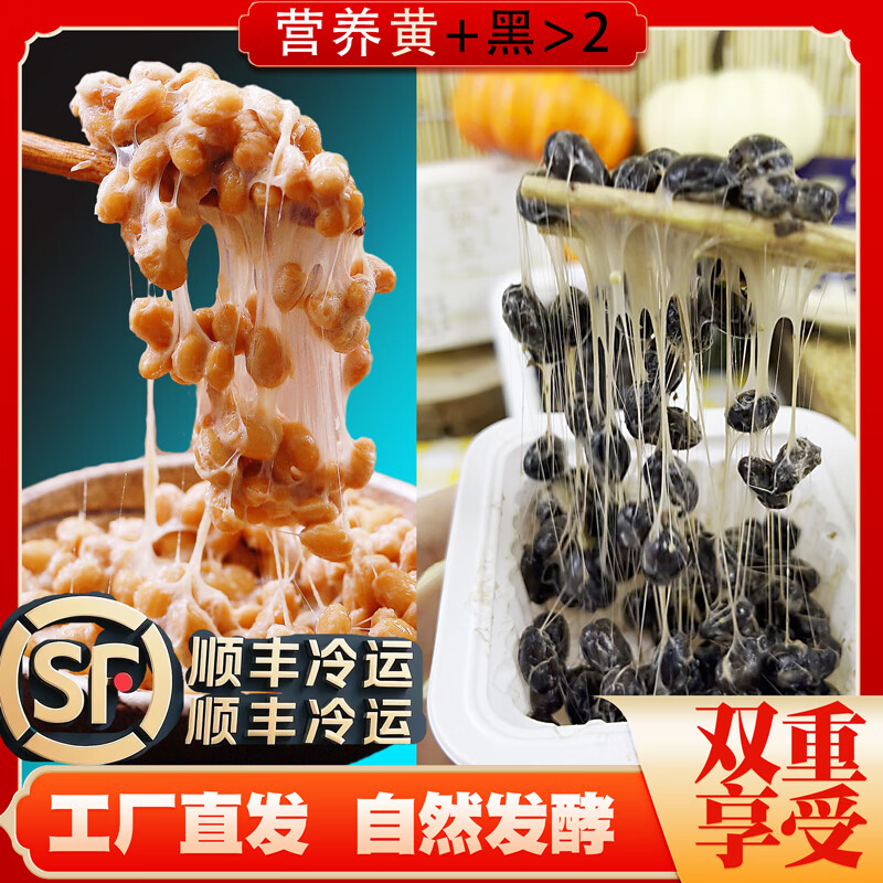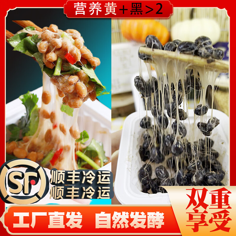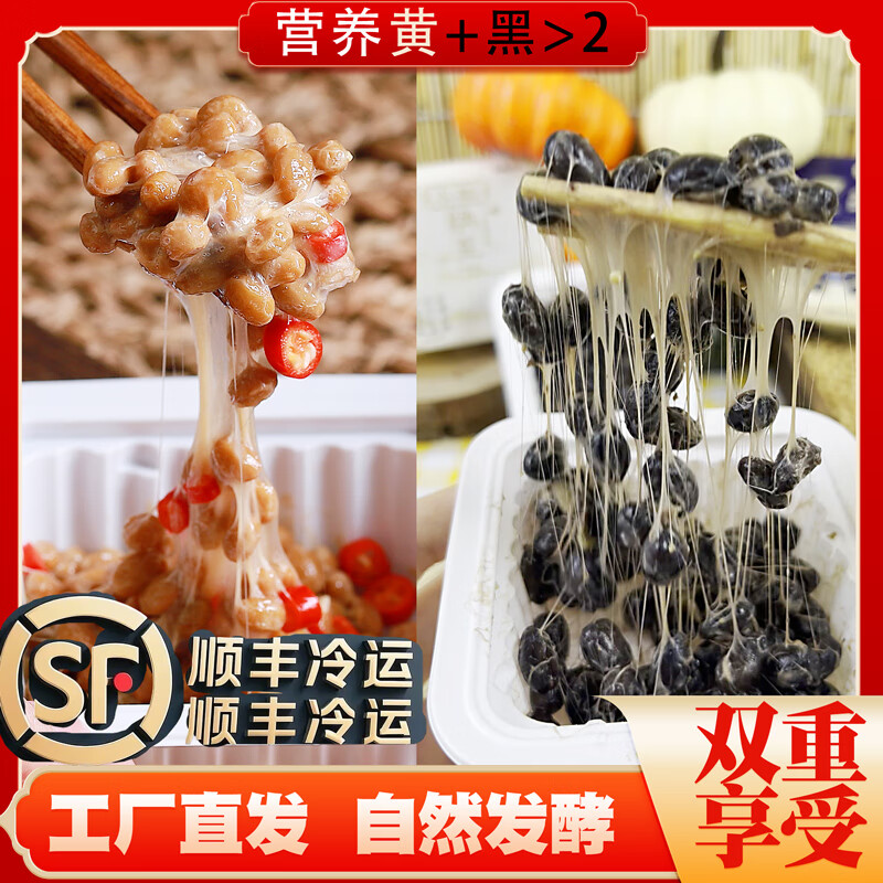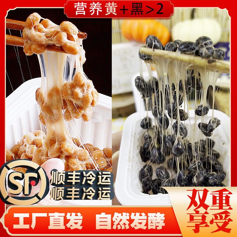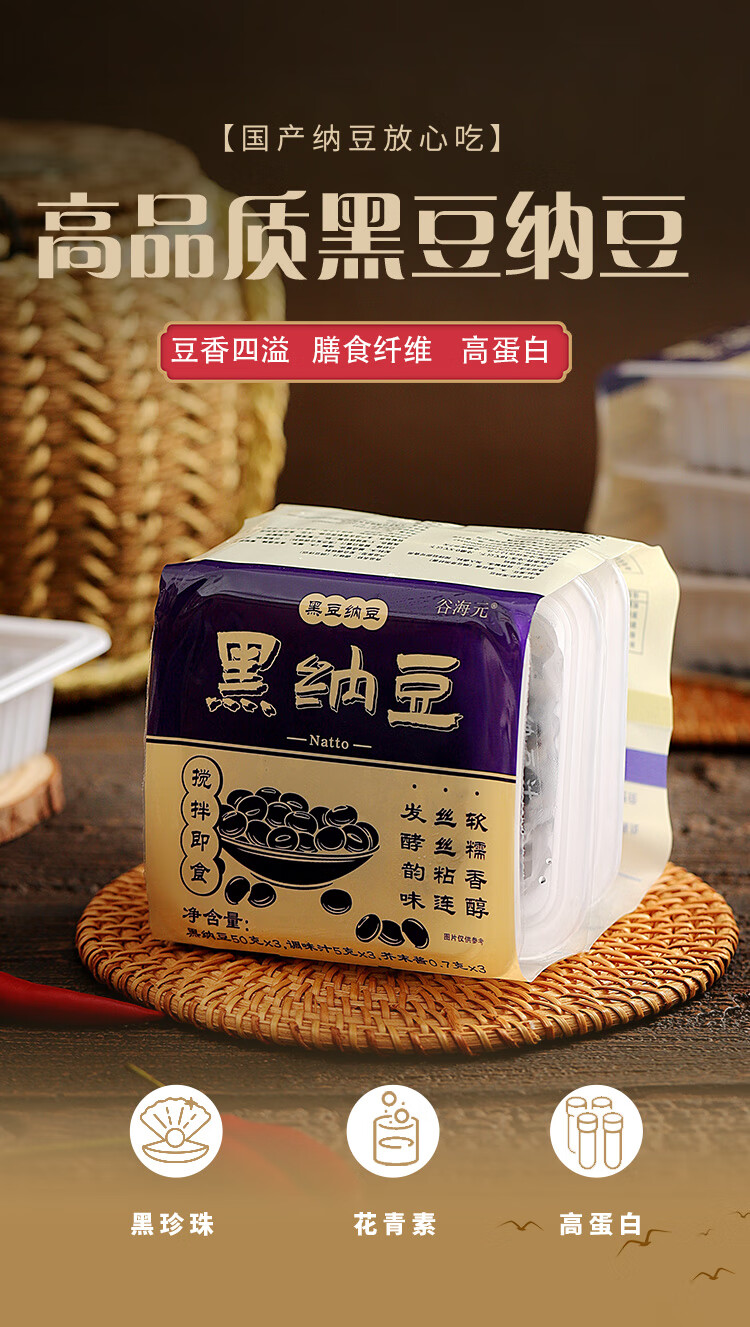谷海元即食纳豆国产非转基因黄纳豆加黑豆纳豆健康食品日式料理原味拉丝 3盒原味黄豆+3盒原味黑纳豆