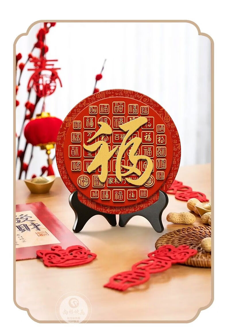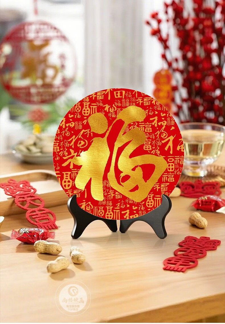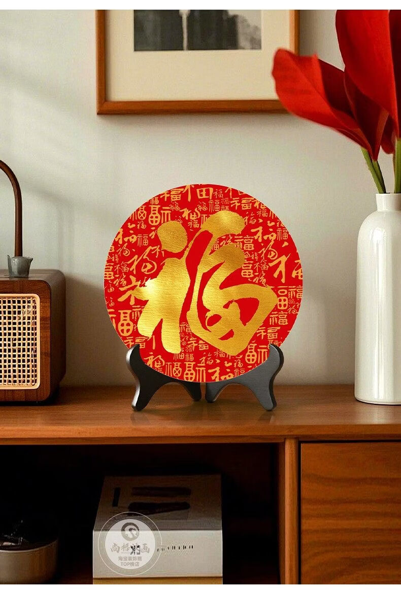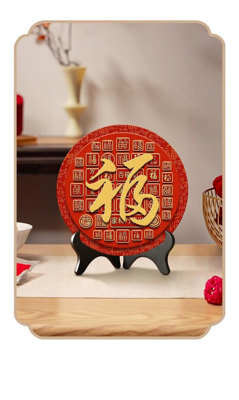 猫九酱福字摆件入宅乔迁百福图装饰品摆饰客厅茶几桌面摆台寓意好小摆画 百福图20*20无框 水晶画面+送支架