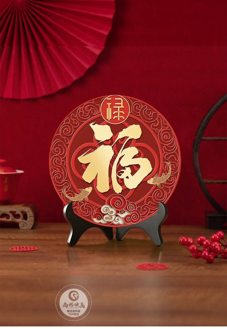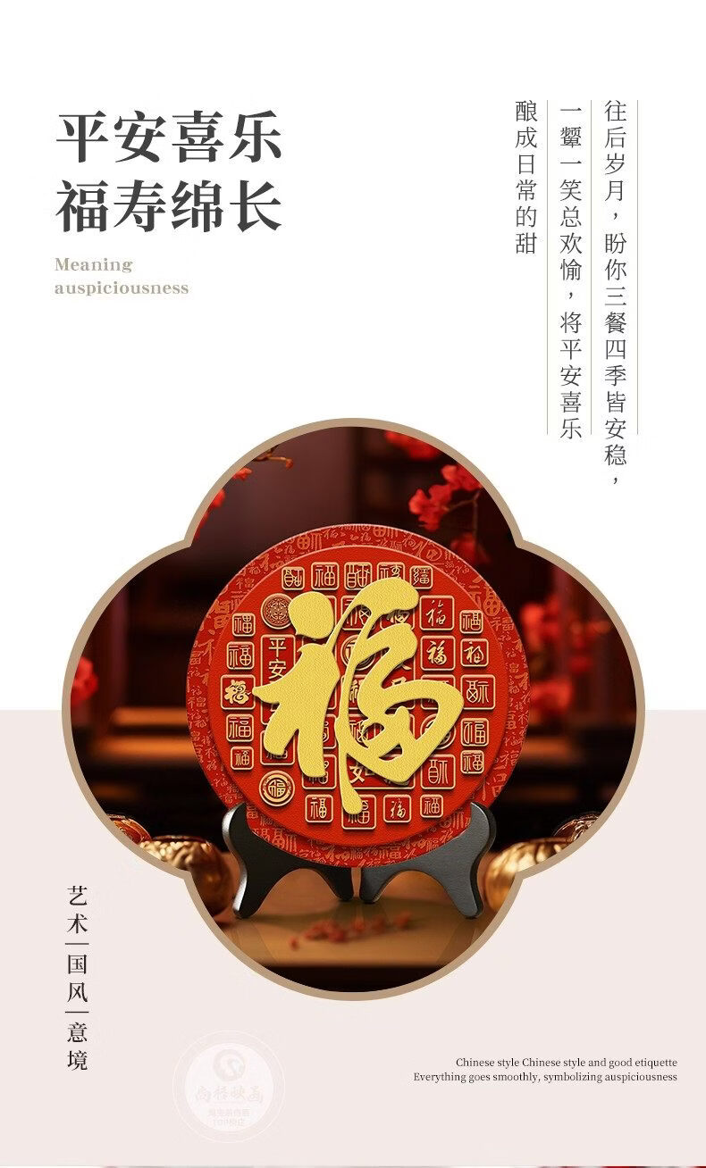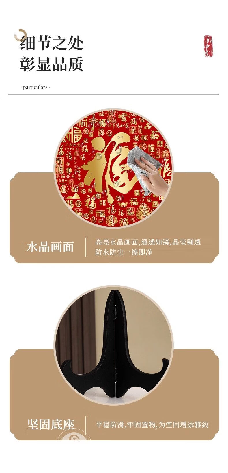猫九酱福字摆件入宅乔迁百福图装饰品摆饰客厅茶几桌面摆台寓意好小摆画 百福图20*20无框 水晶画面+送支架