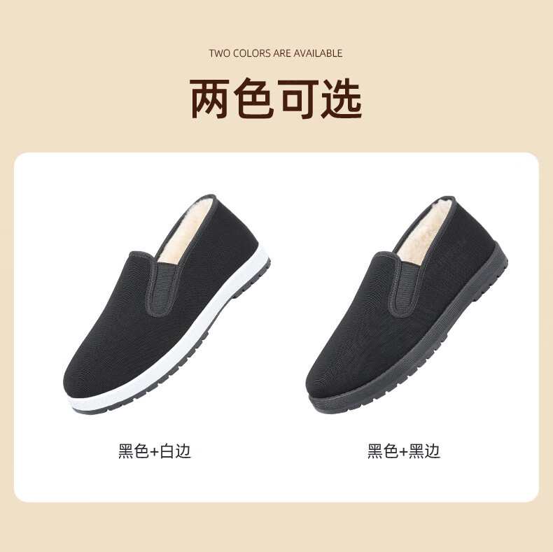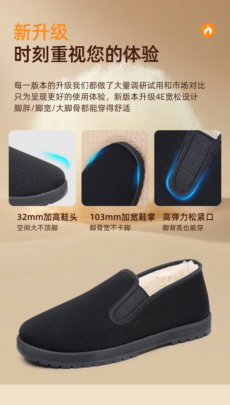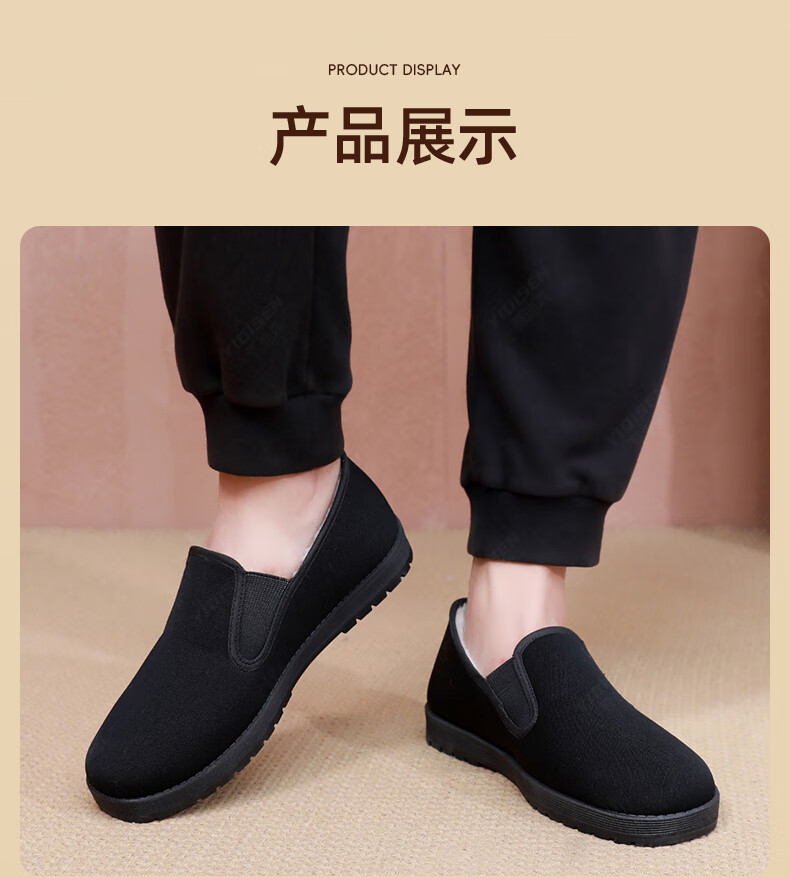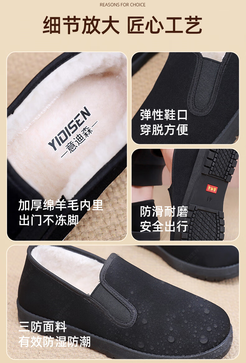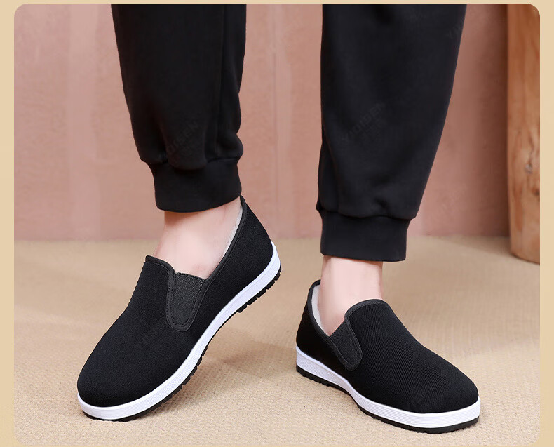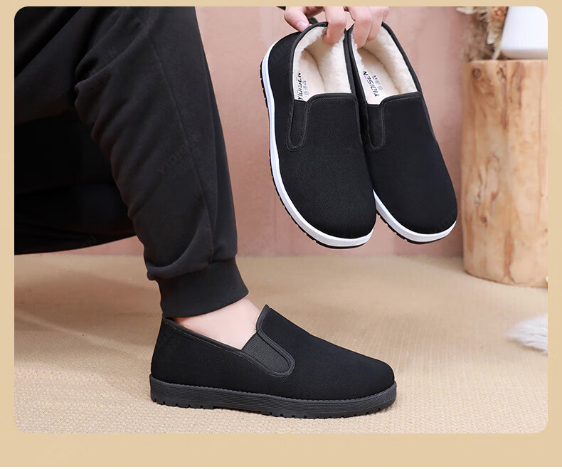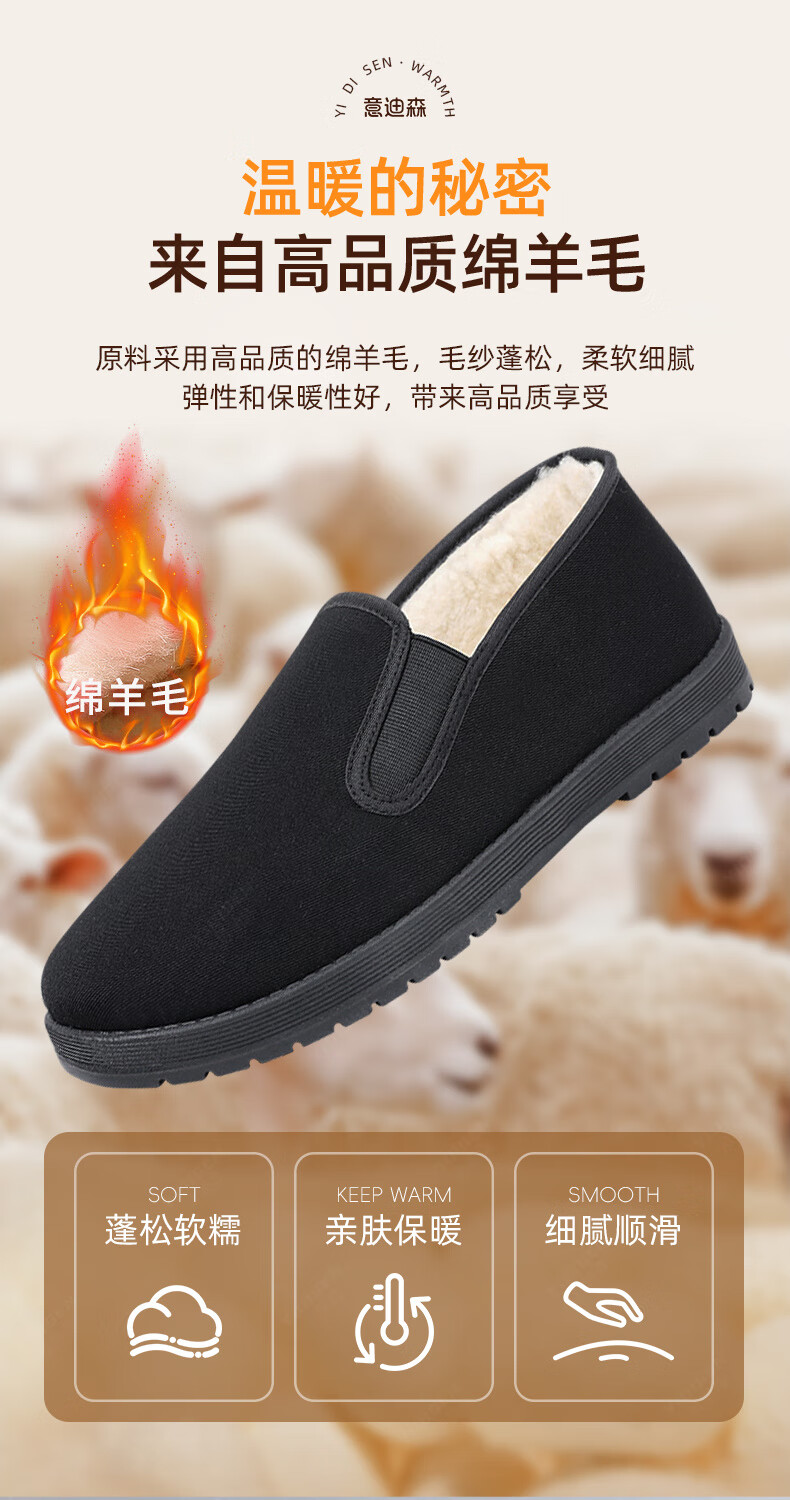 意迪森冬季绵羊毛男士棉靴老北京布鞋保暖防滑新款加绒加厚黑布鞋开车鞋 暗夜黑 加绒 黑边 45 (275mm)