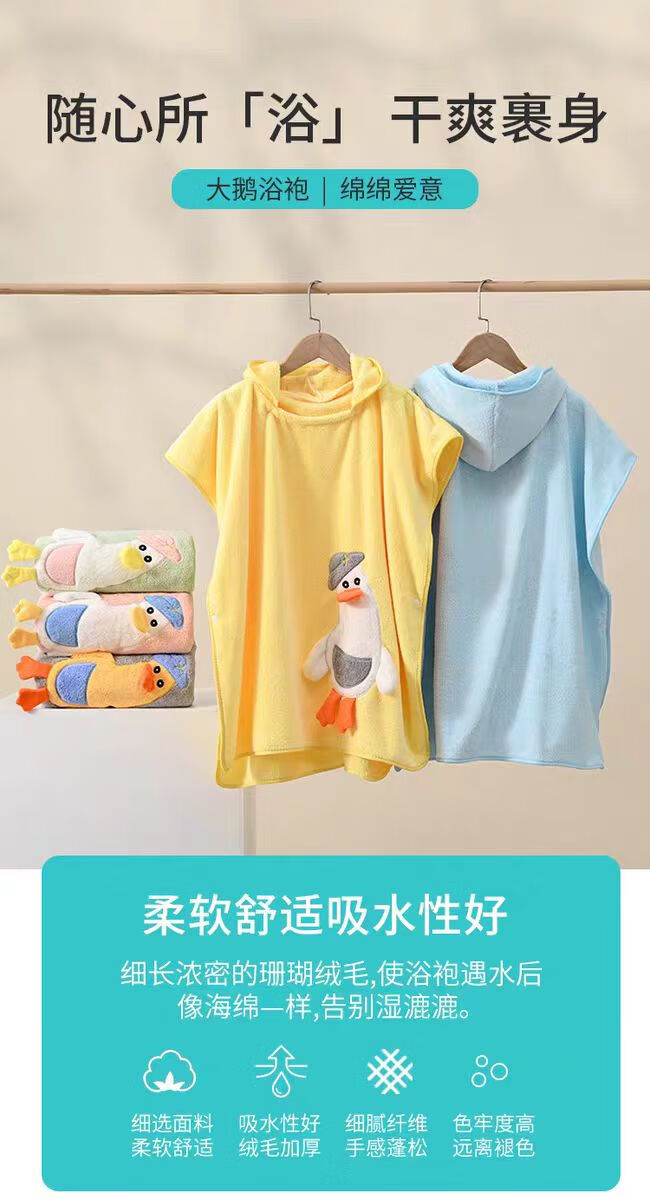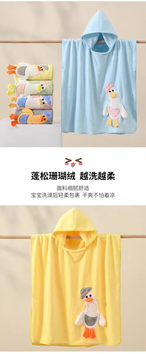 彩虹房子 儿童珊瑚绒婴儿宝宝速干连帽斗篷浴袍沙滩卡通带帽儿童浴巾 绿色 恐龙 70*140