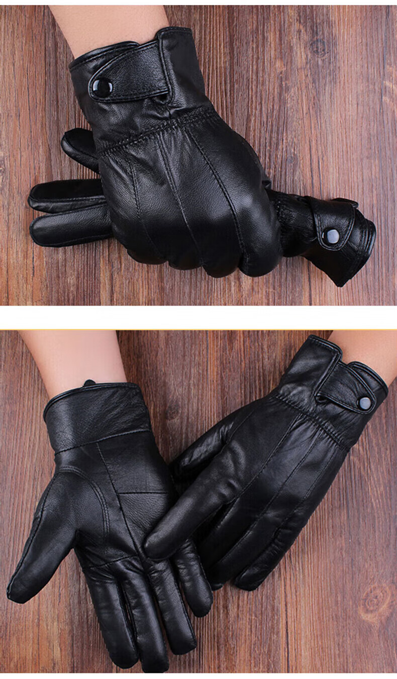 阿力牛 ASH61 羊皮加绒手套 分指加厚保暖防风手套 冬季保暖防风户外骑行机车 黑色
