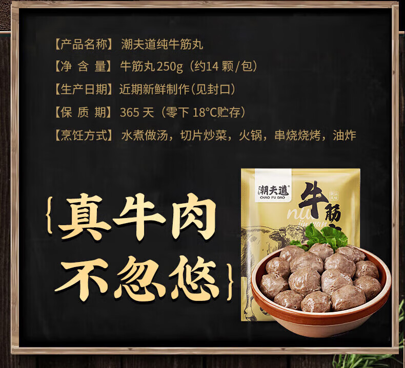 潮夫道纯牛筋丸250g 牛肉含量95%正宗潮汕手打牛肉丸火锅食材春节也送货