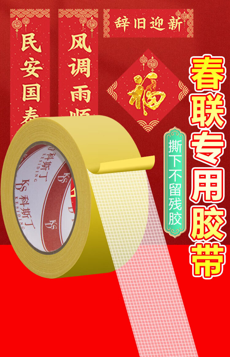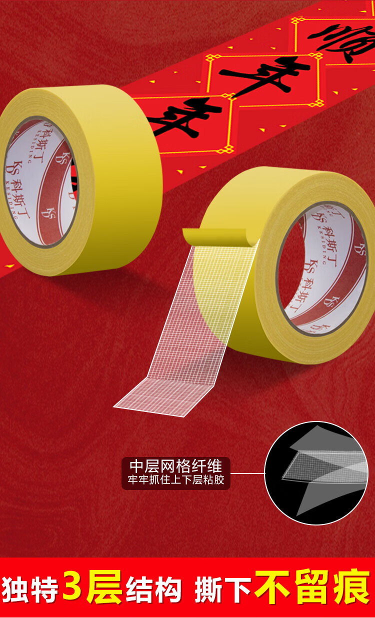 科斯丁对联无痕贴春联专用胶带网格布基双面胶贴福字无痕胶强力高粘度农村大门真石漆水泥墙面固定神器 春联专用胶[1.5厘米宽*10米长]*3卷装