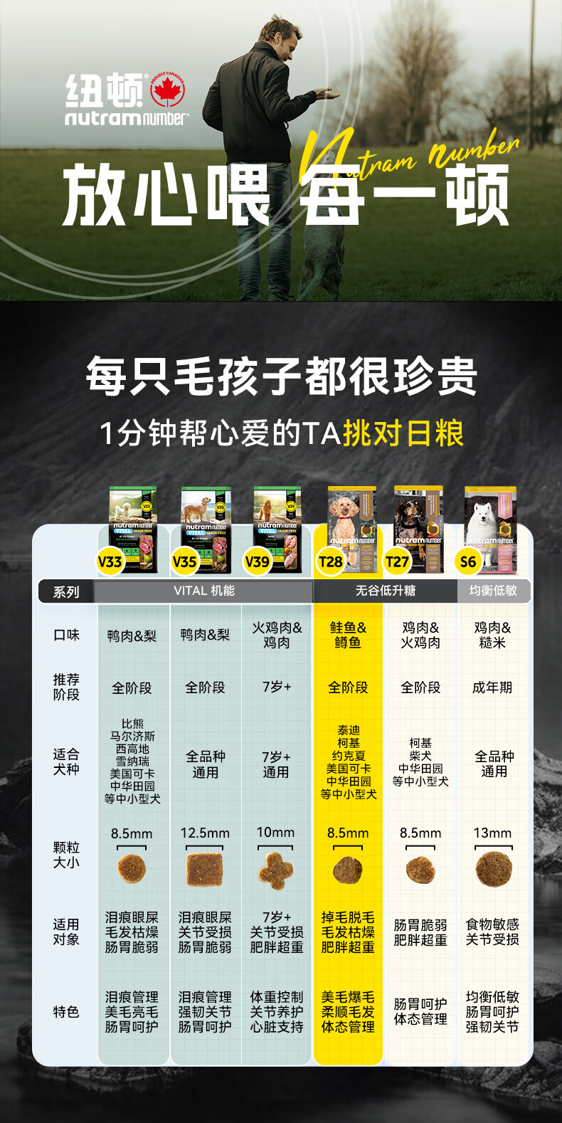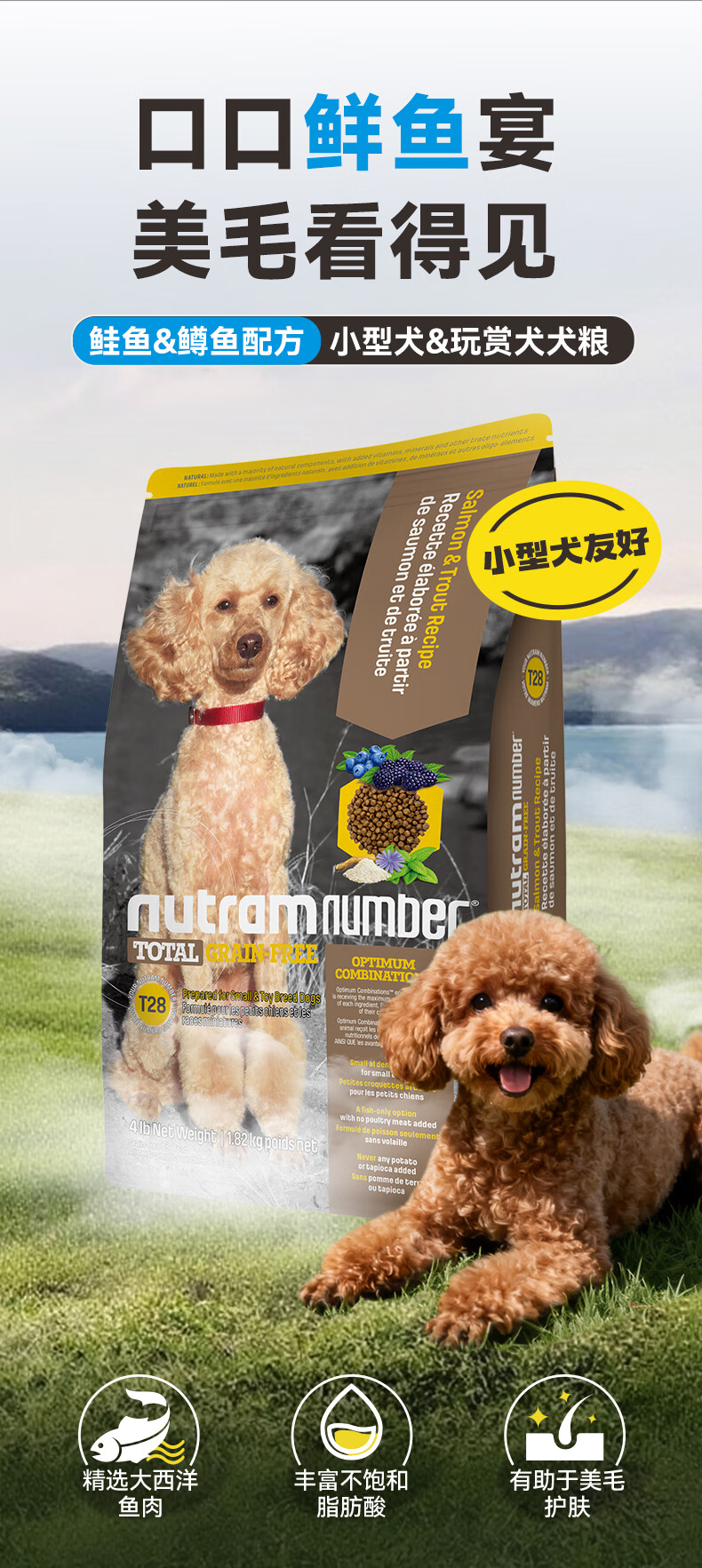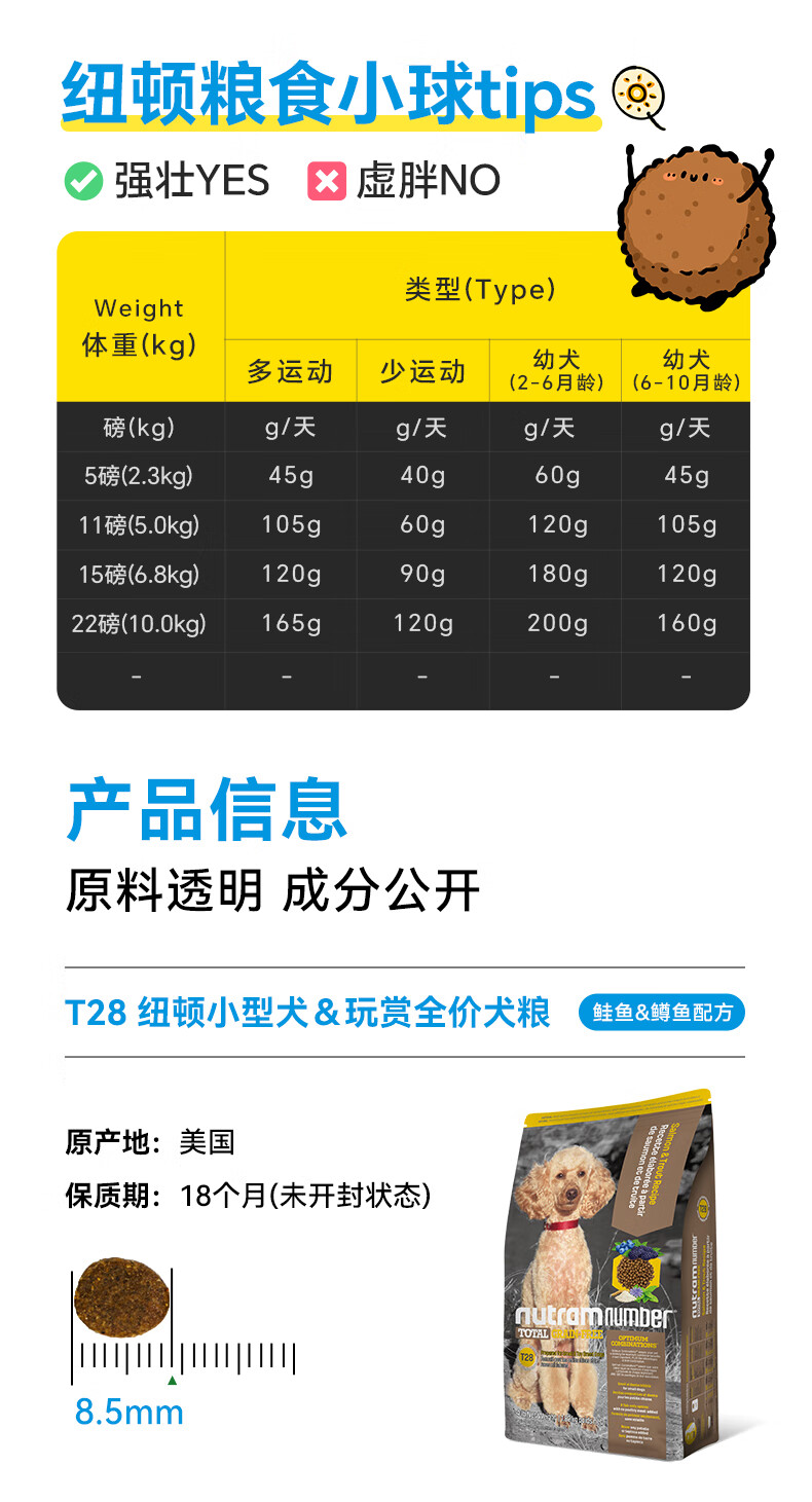 纽顿 T28中小型犬全价狗粮泰迪博美 鲑鱼&鳟鱼配方12斤 6kg 美国进口