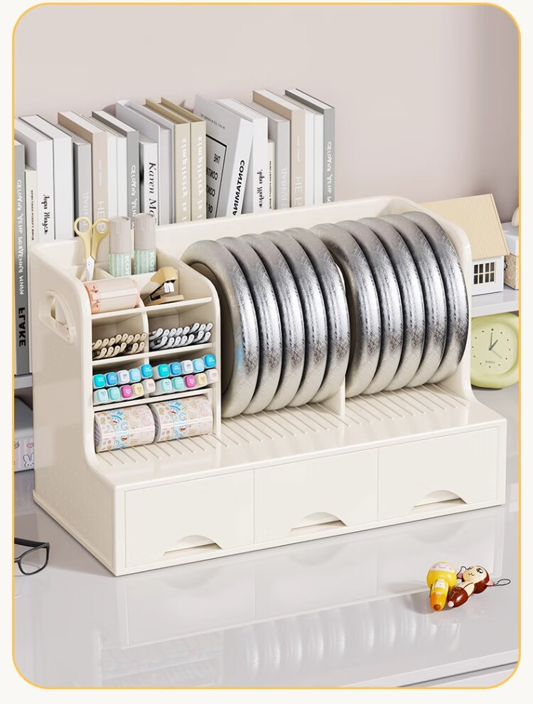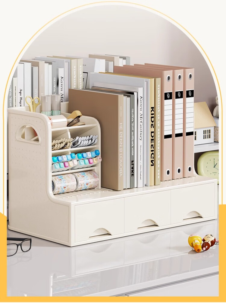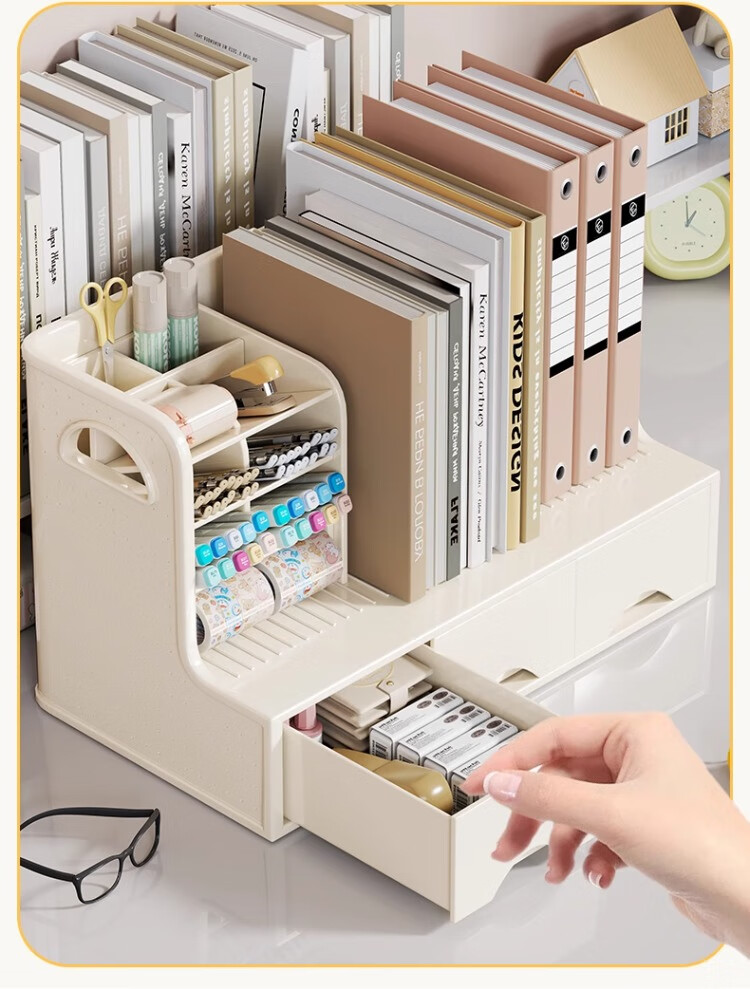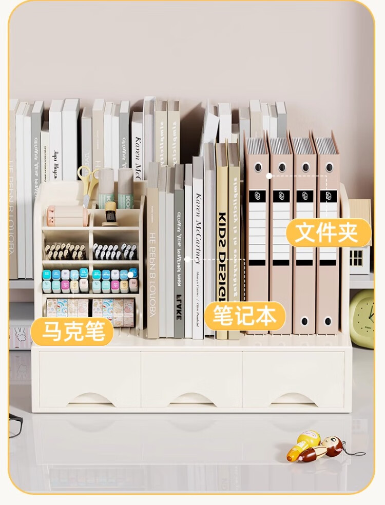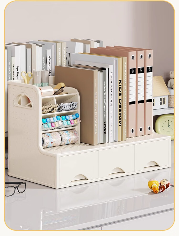 尔思家桌面多功能书立收纳架书本收纳盒笔筒学生书桌书立书架抽屉置物架 白色