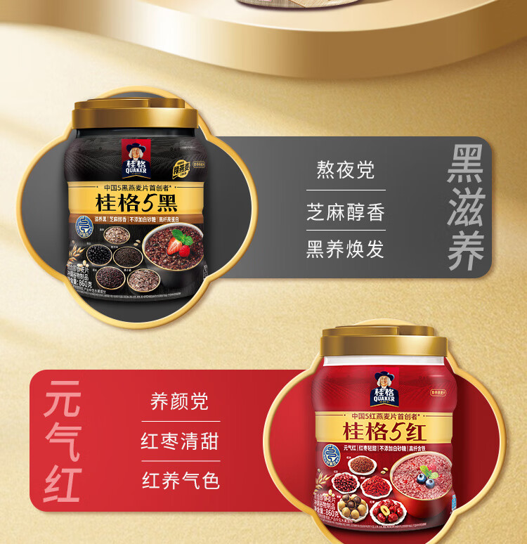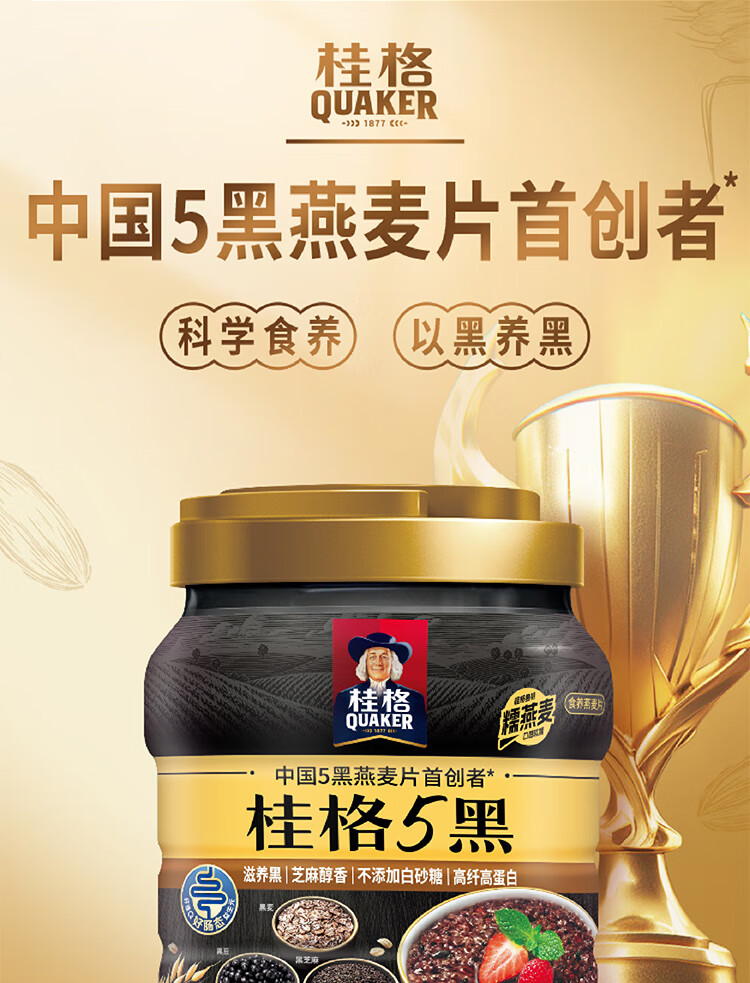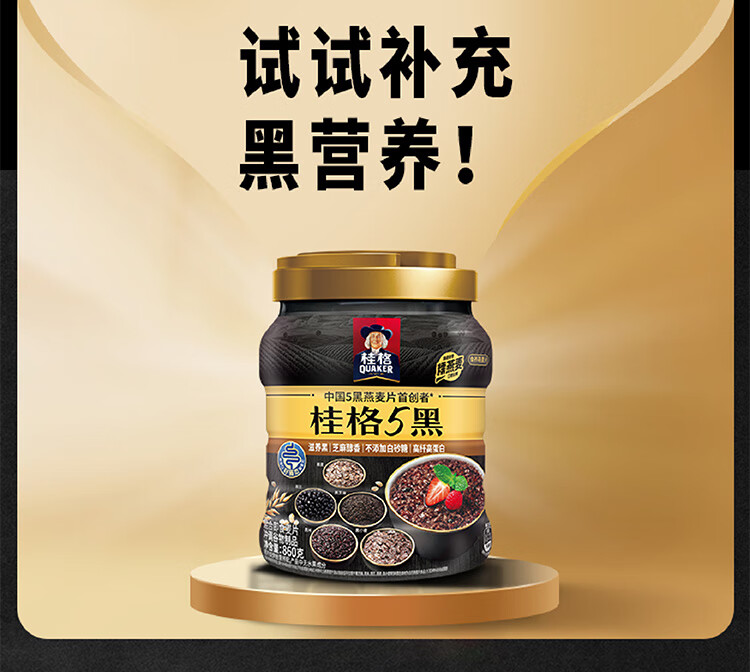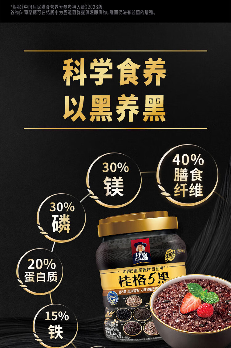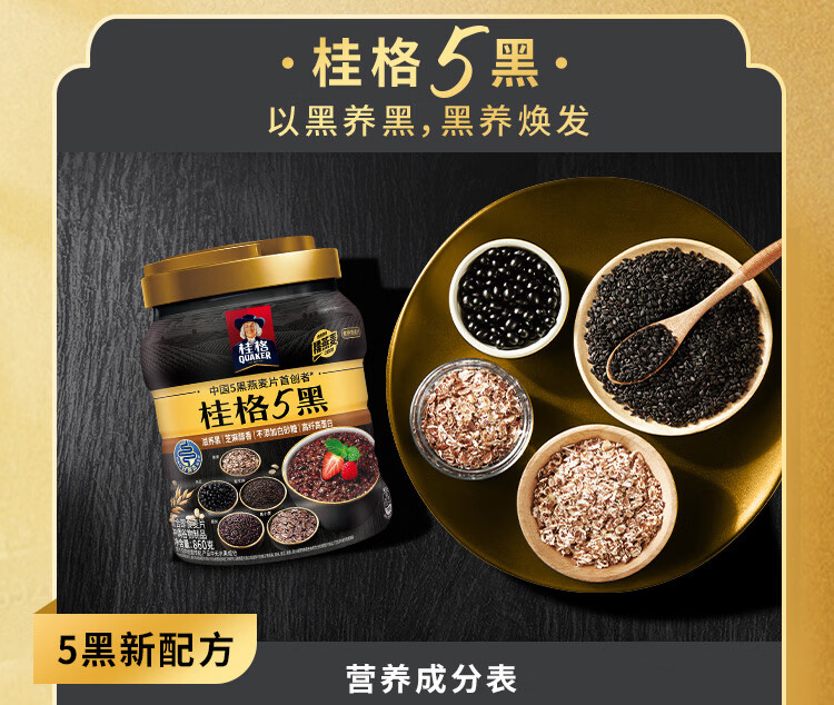 桂格(QUAKER)5黑混合即食燕麦片860克 添加黑芝麻 零添加白砂糖