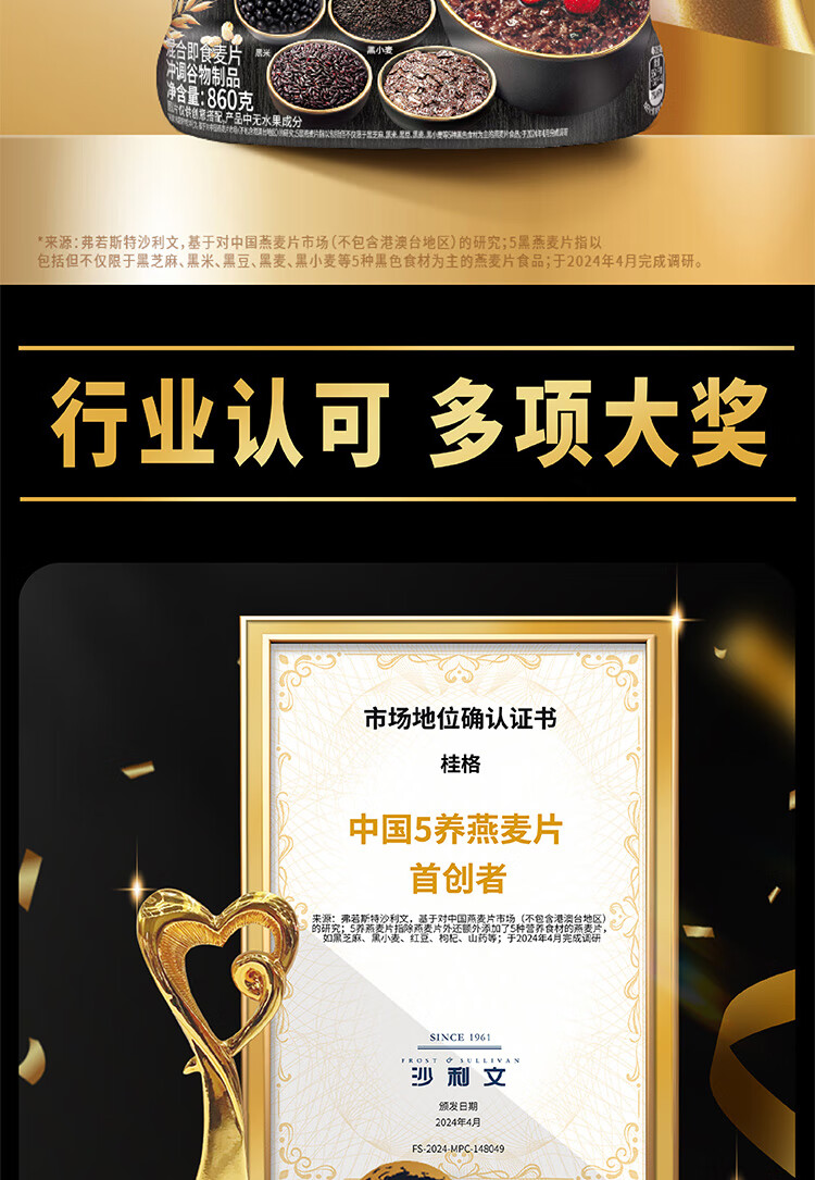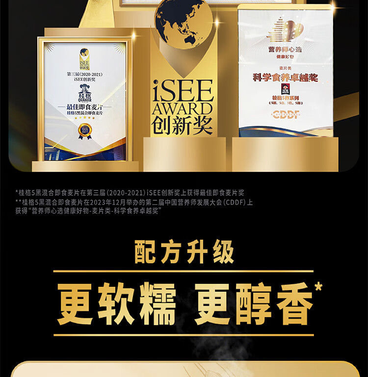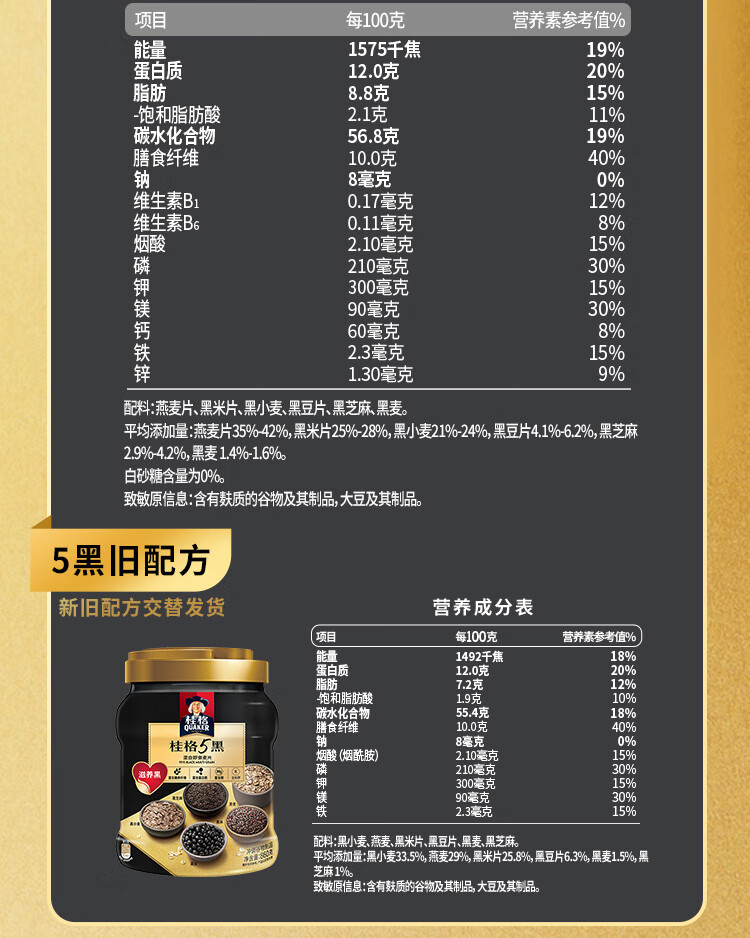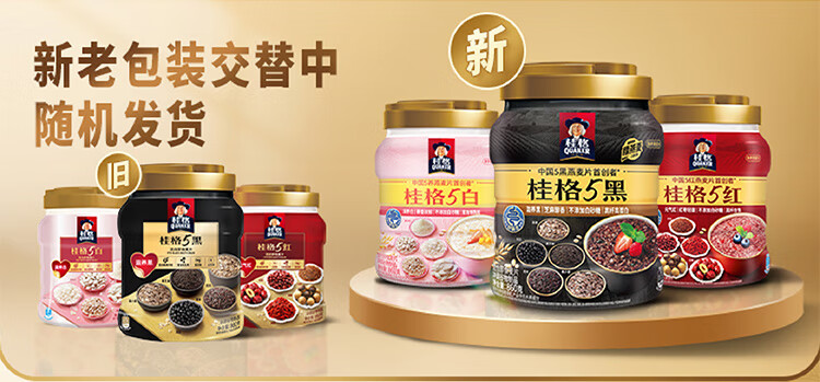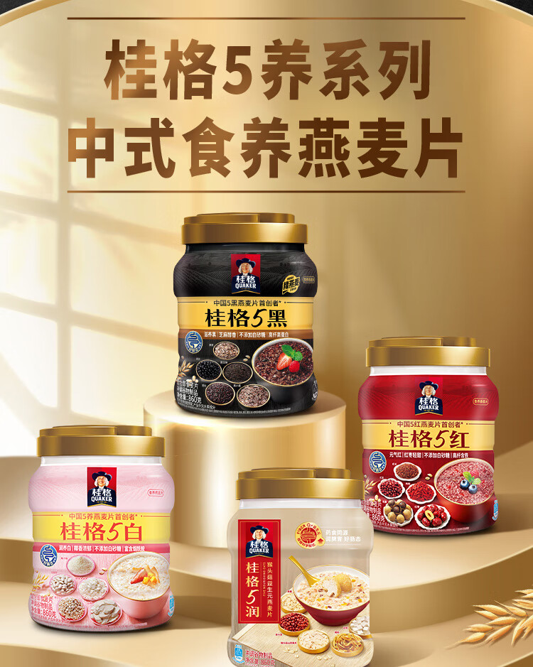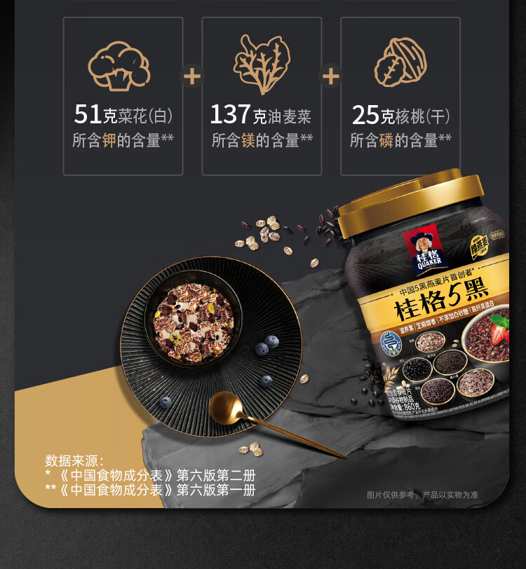 桂格(QUAKER)5黑混合即食燕麦片860克 添加黑芝麻 零添加白砂糖