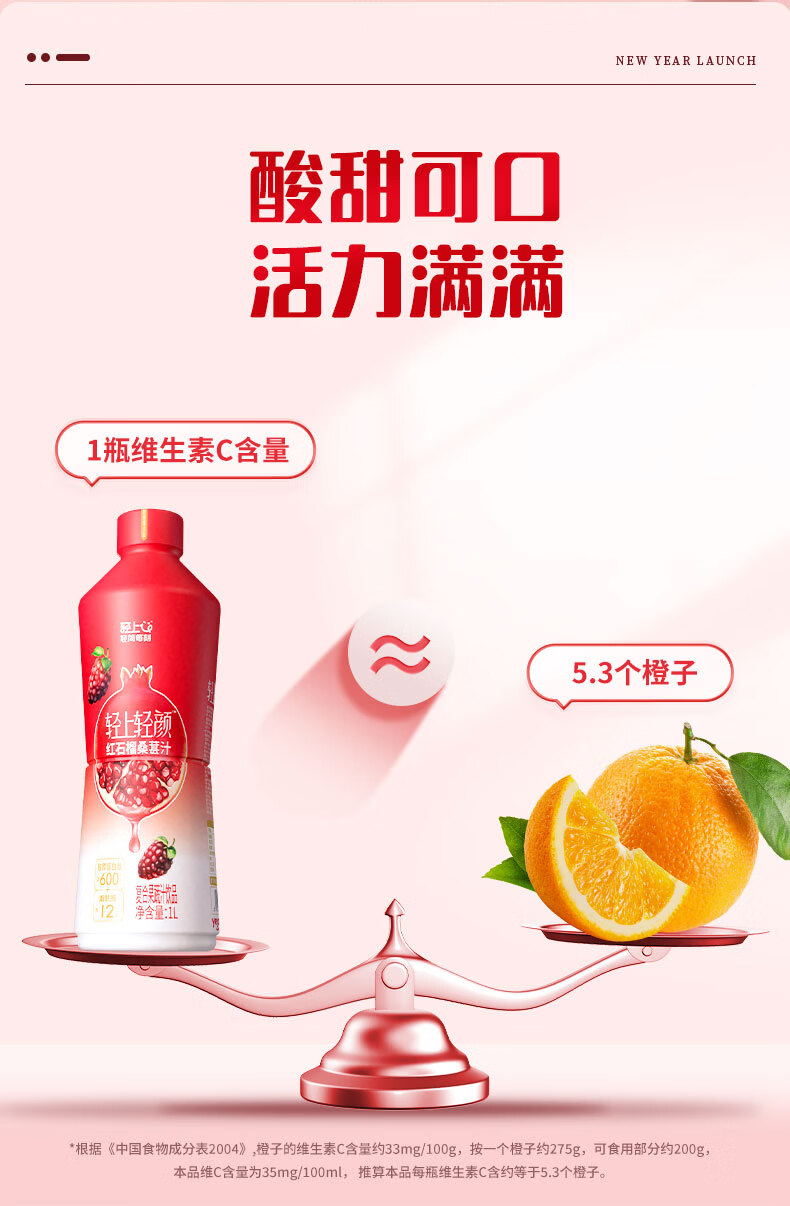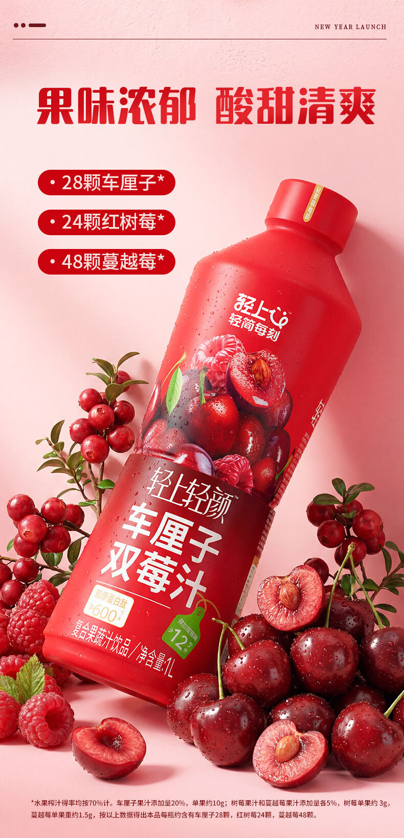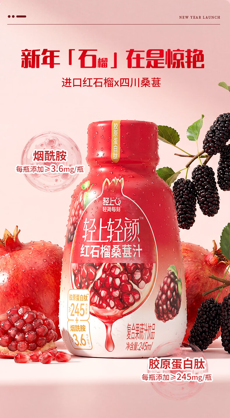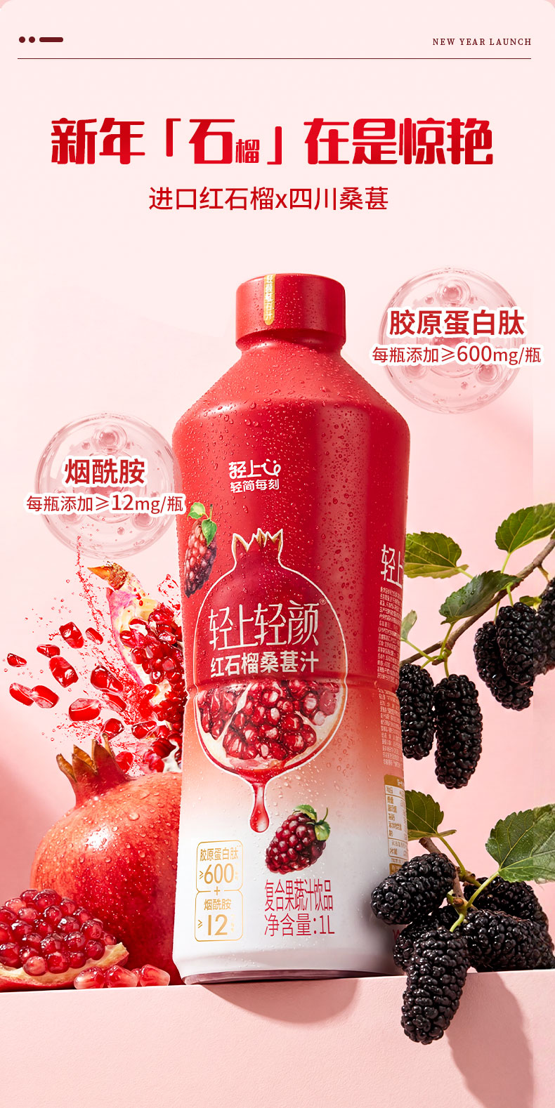 轻上【年货送礼】轻颜红石榴桑葚汁车厘子双莓汁富含维C酸甜可口整箱 红石榴桑椹汁1L*2瓶+车厘子双莓汁1L*2
