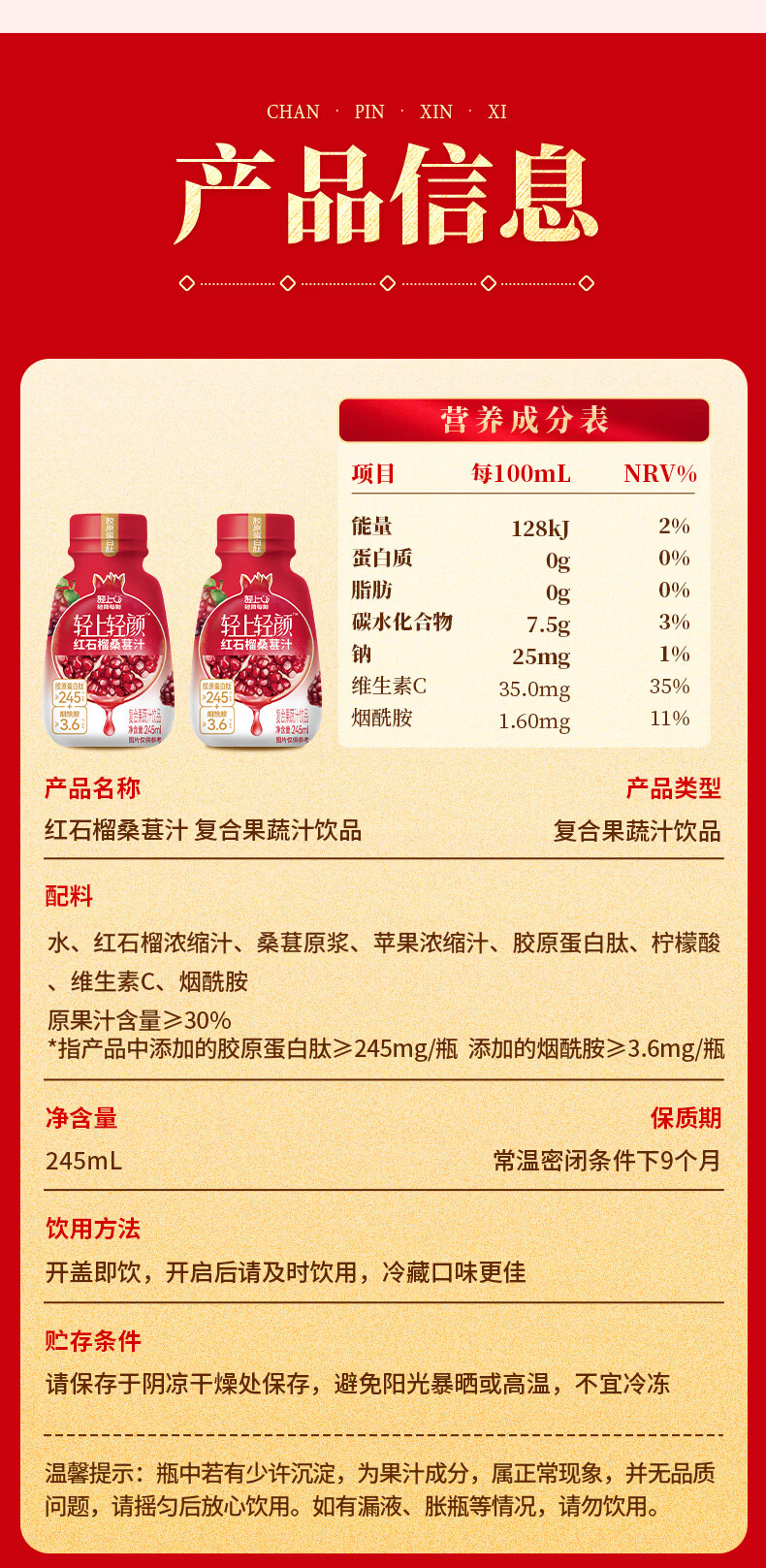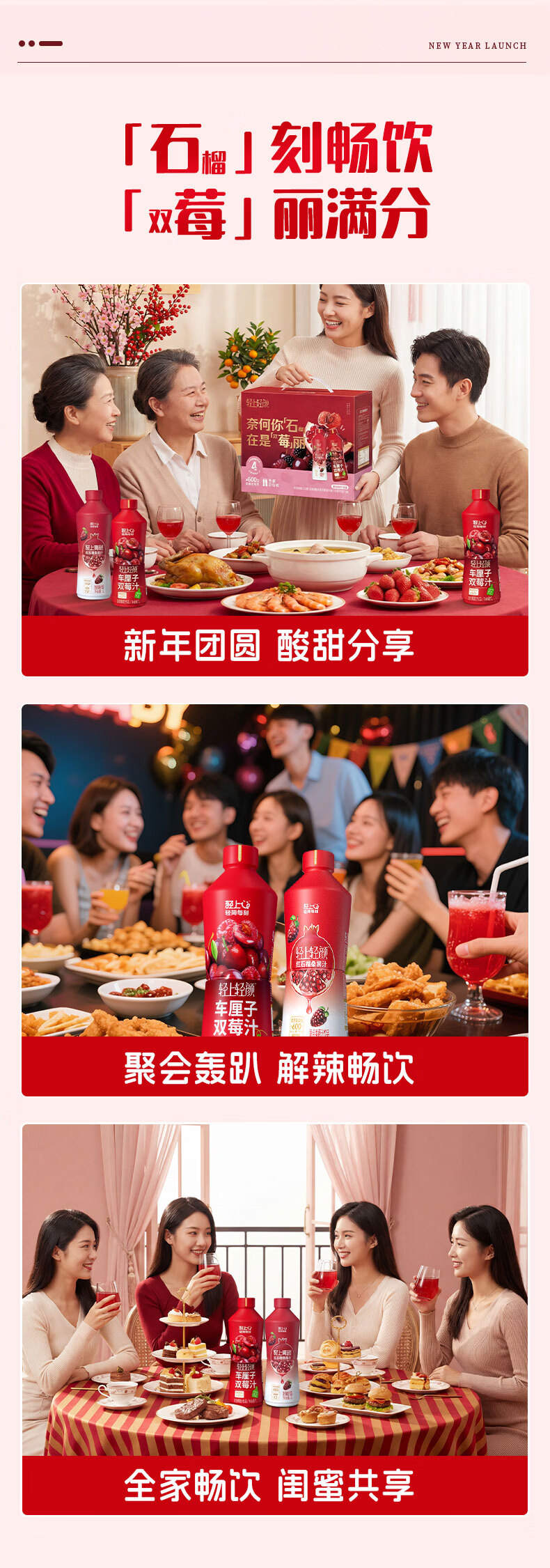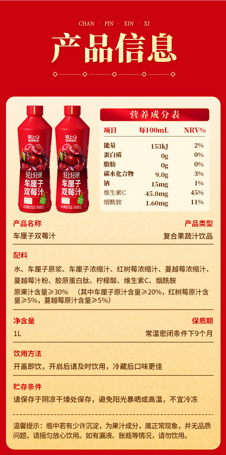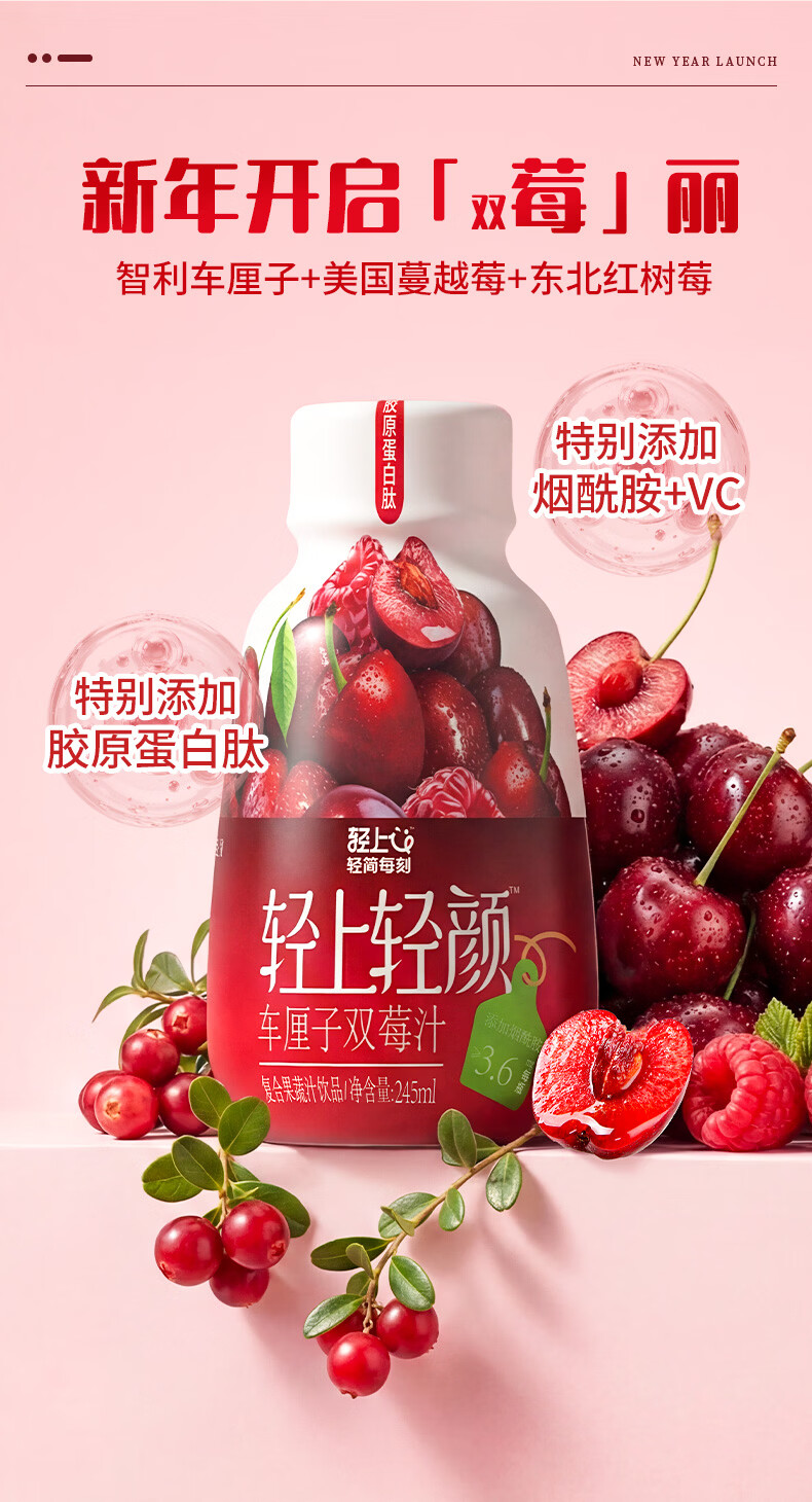 轻上【年货送礼】轻颜红石榴桑葚汁车厘子双莓汁富含维C酸甜可口整箱 红石榴桑椹汁1L*2瓶+车厘子双莓汁1L*2