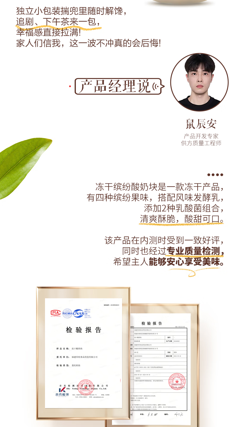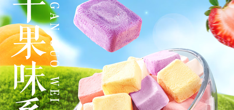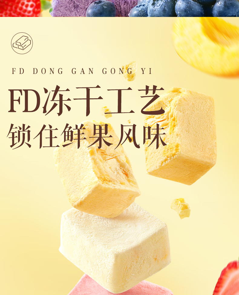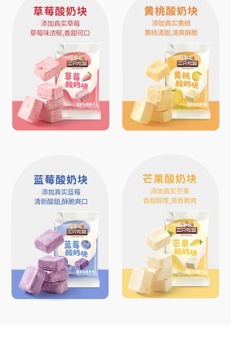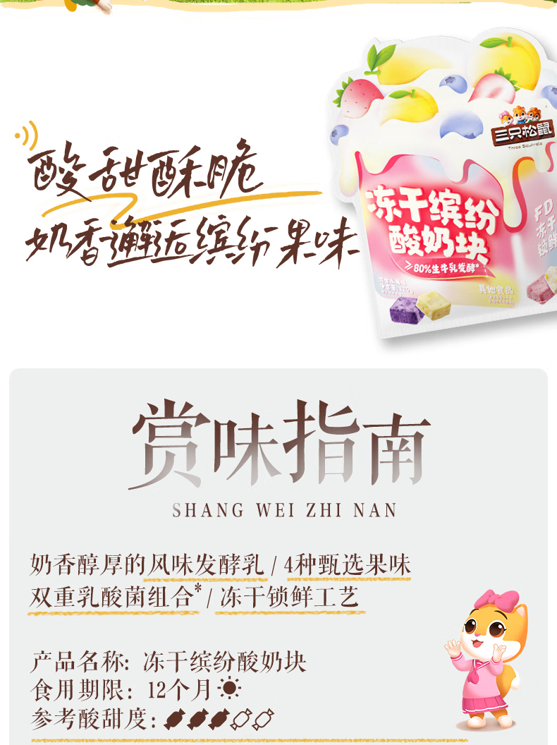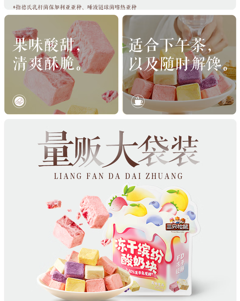 三只松鼠冻干缤纷酸奶块混合水果味120g草莓黄桃口味网红休闲零食
