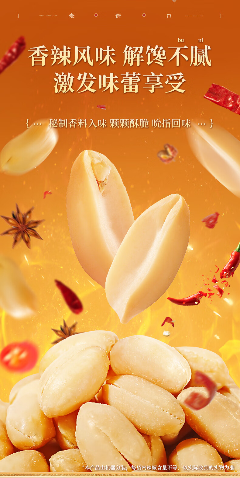 老街口香辣味花生米500g 袋装脱油花生下酒菜休闲小吃 坚果休闲零食年货